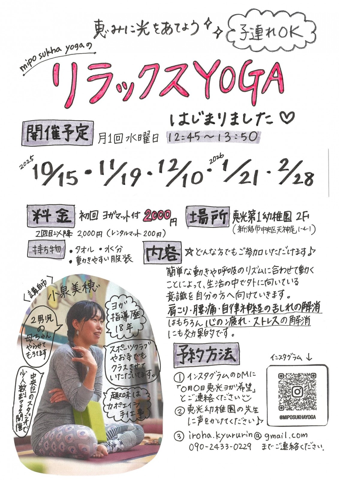 一般の方・保護者向け『リラックスヨガ教室開催のお知らせ』