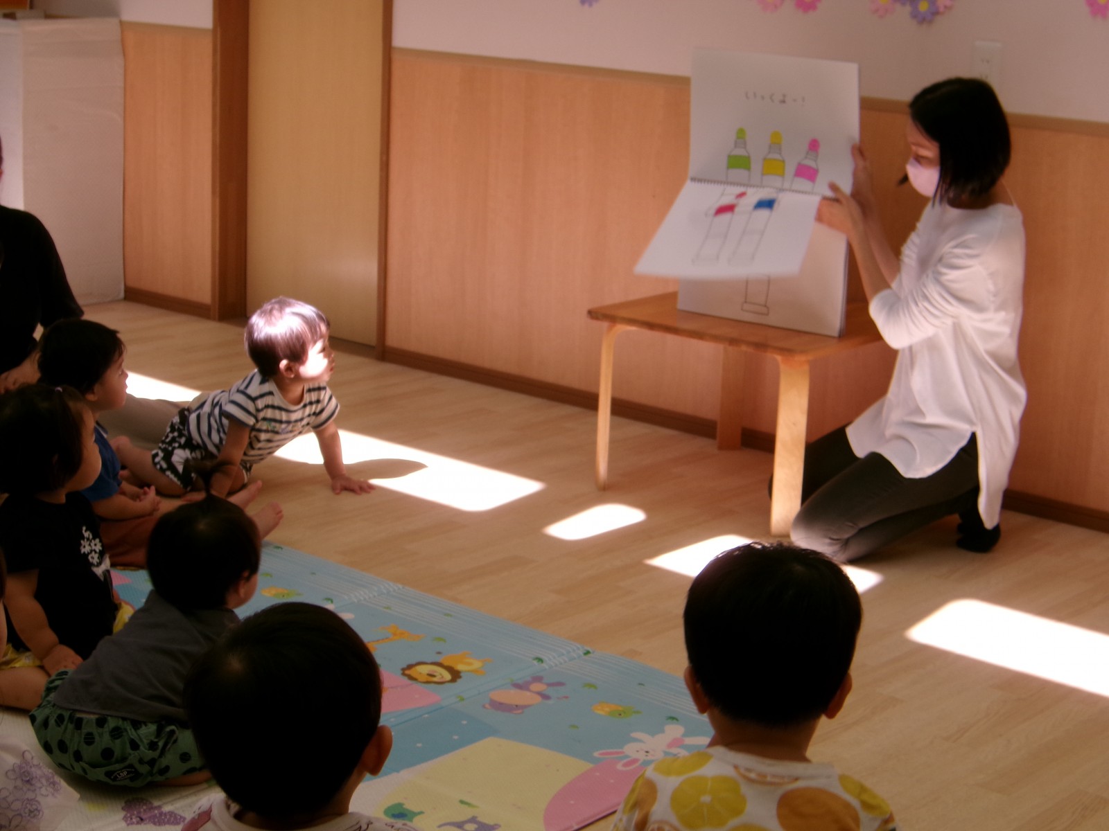 乳児部(保育園)で9月10月生まれのお友達のお誕生祝いの会をしました。