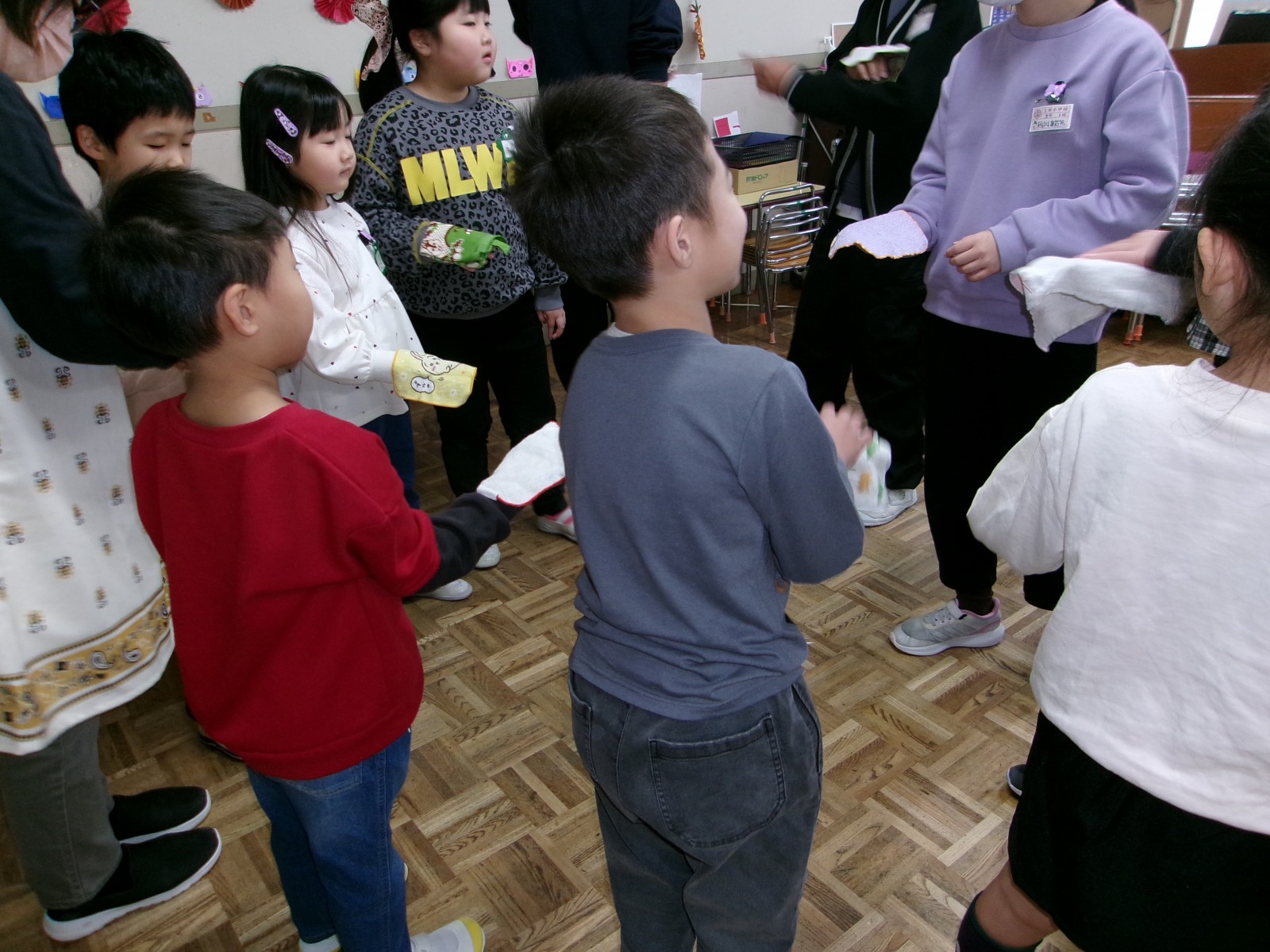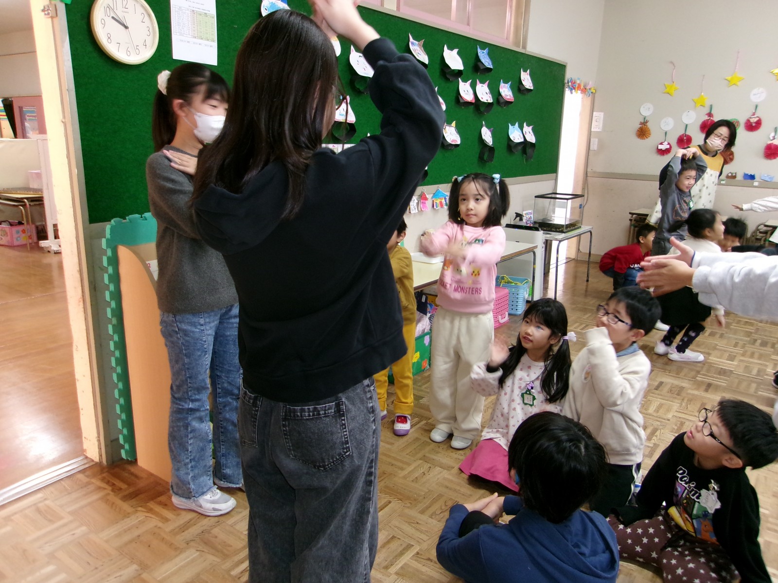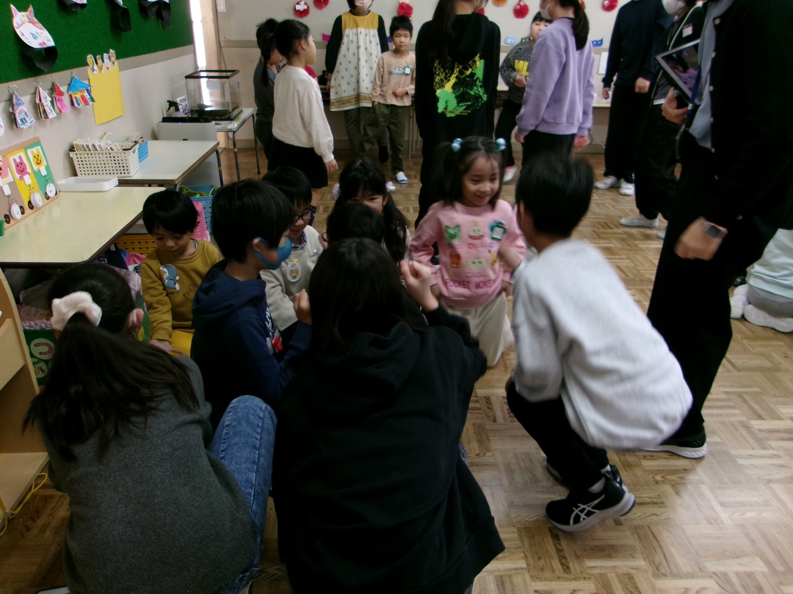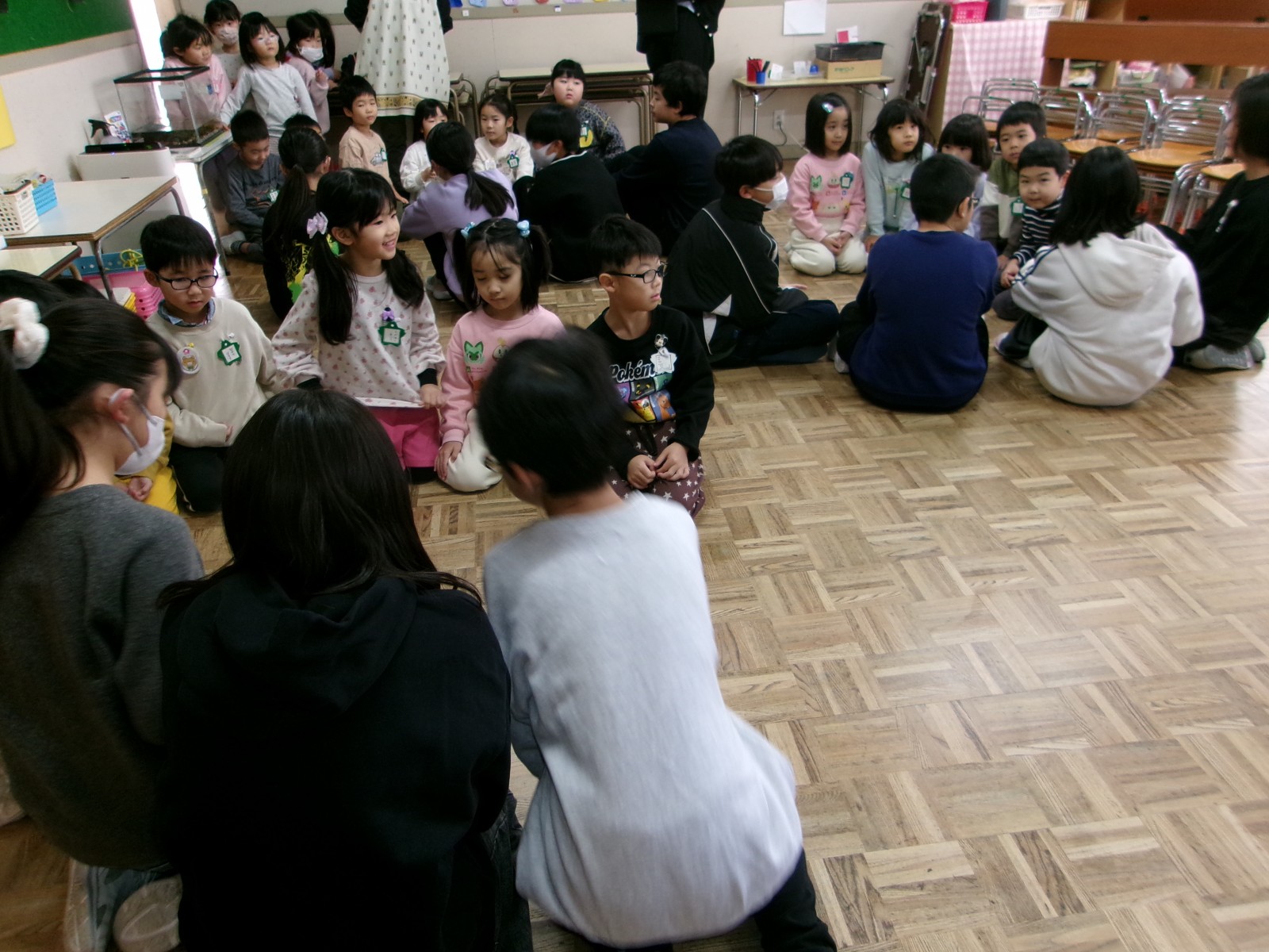 小学5年生のみんなが幼稚園に来てくれて、グループに分かれてゲームをしたり、小学校の事を教えてくれたりしました。