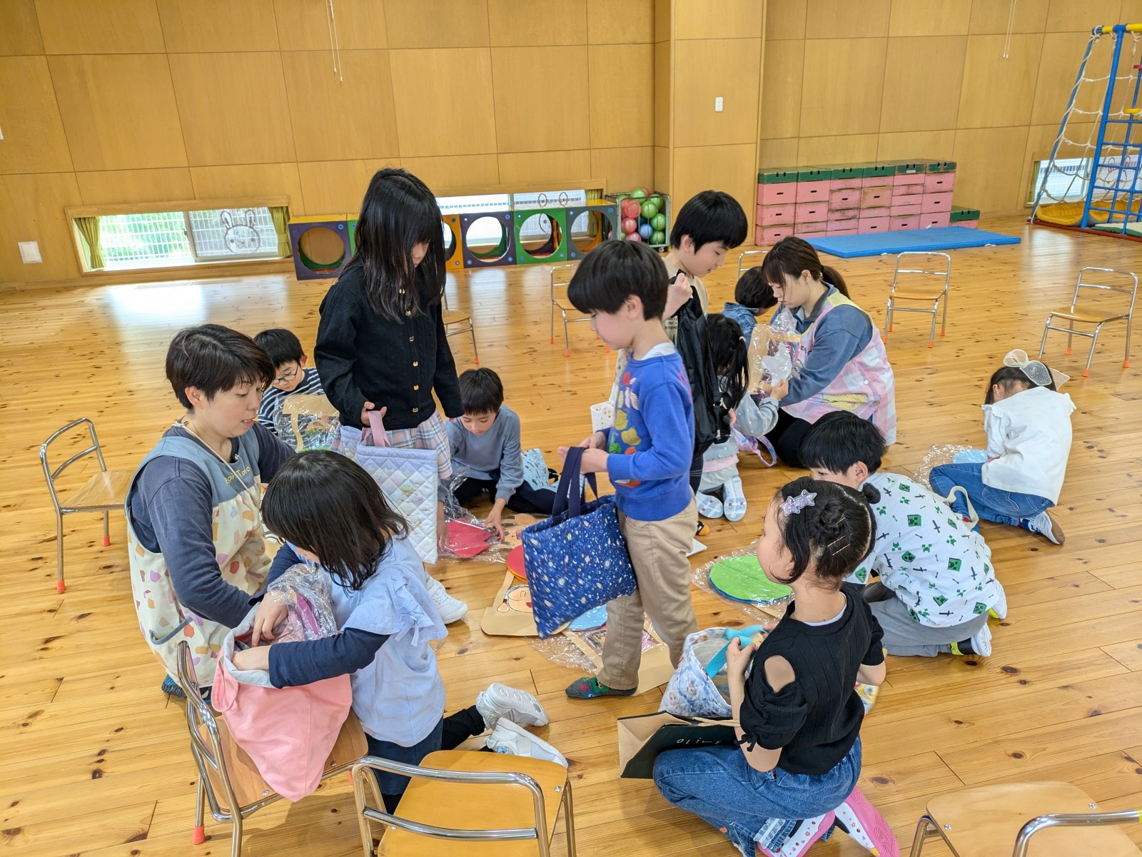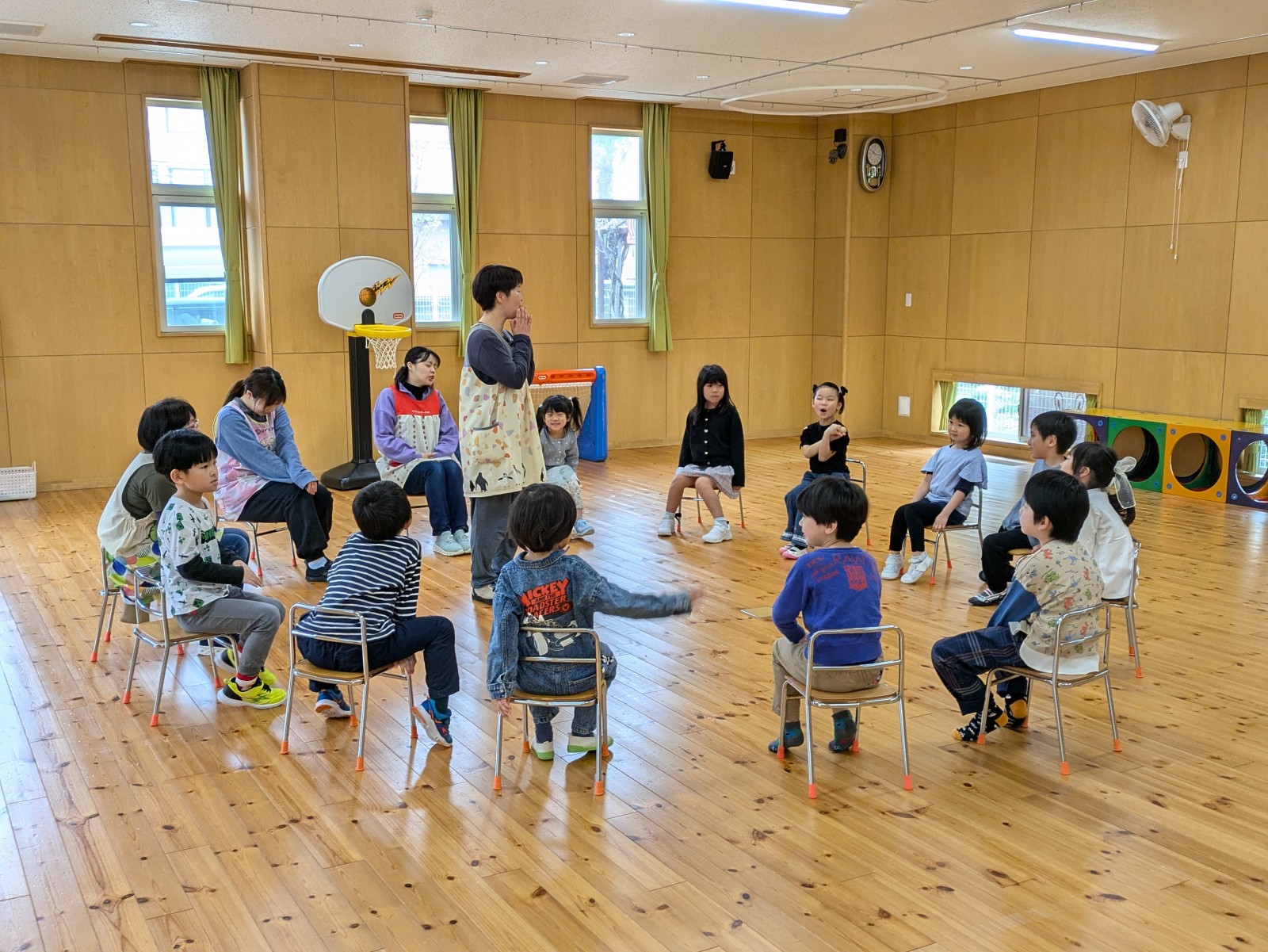 小学校名、クラス、好きな教科を順番に発表した後、集団遊び(なんでもバスケット、おにごっこ、いす取りゲーム)をしたり園庭で遊んだりしてあっという間に時間は過ぎてしまいました。帰り際もさようならすることが寂しいようで、名残惜しいような表情でお家へ帰って行きました。運動会(6月7日)作品展(11月8日)卒園生クリスマス会(12月6日)にぜひ遊びにきてくださいね。