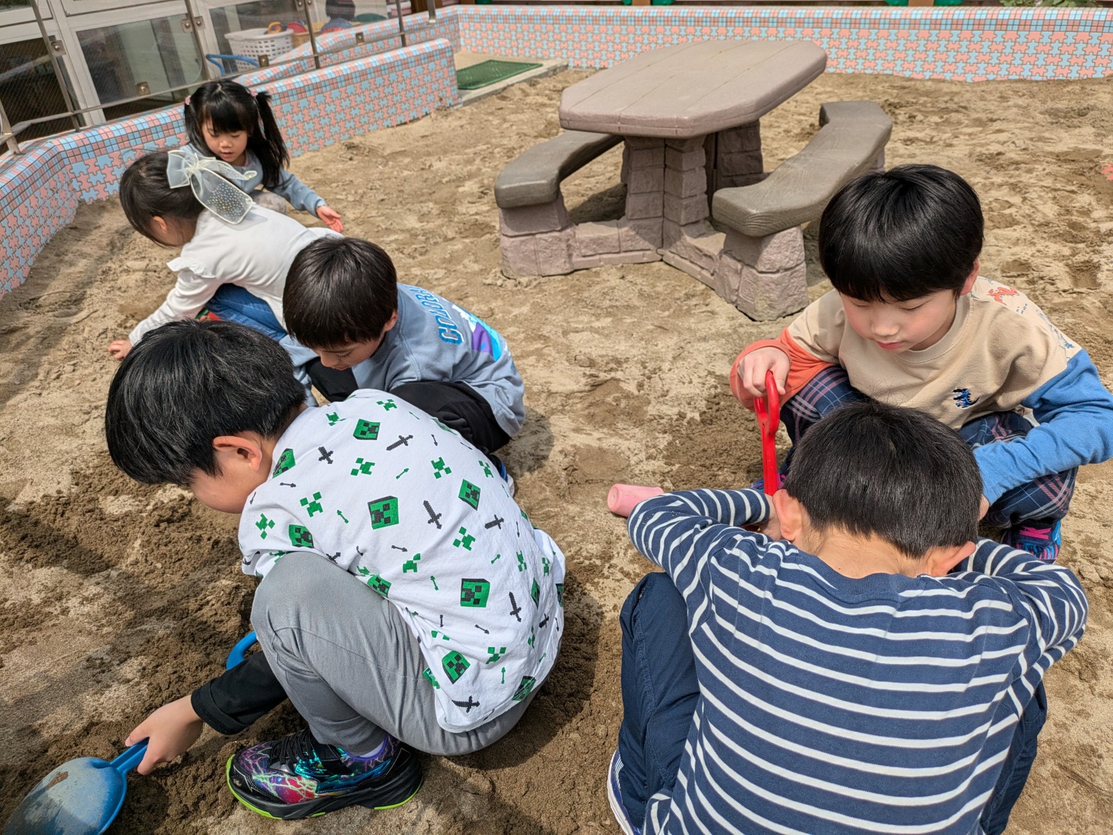 3月に卒園した新1年生の子どもたちが元気な顔を見せてくれました。いろいろな小学校に行ったので、久しぶりに会えてとても嬉しそうでした。