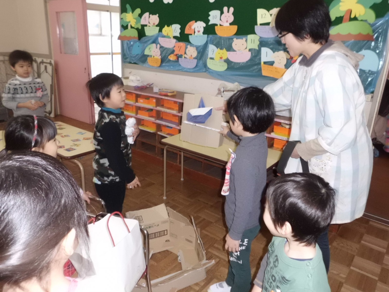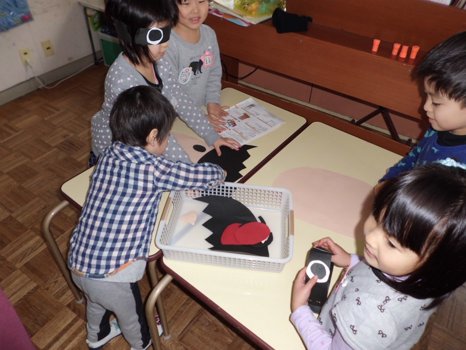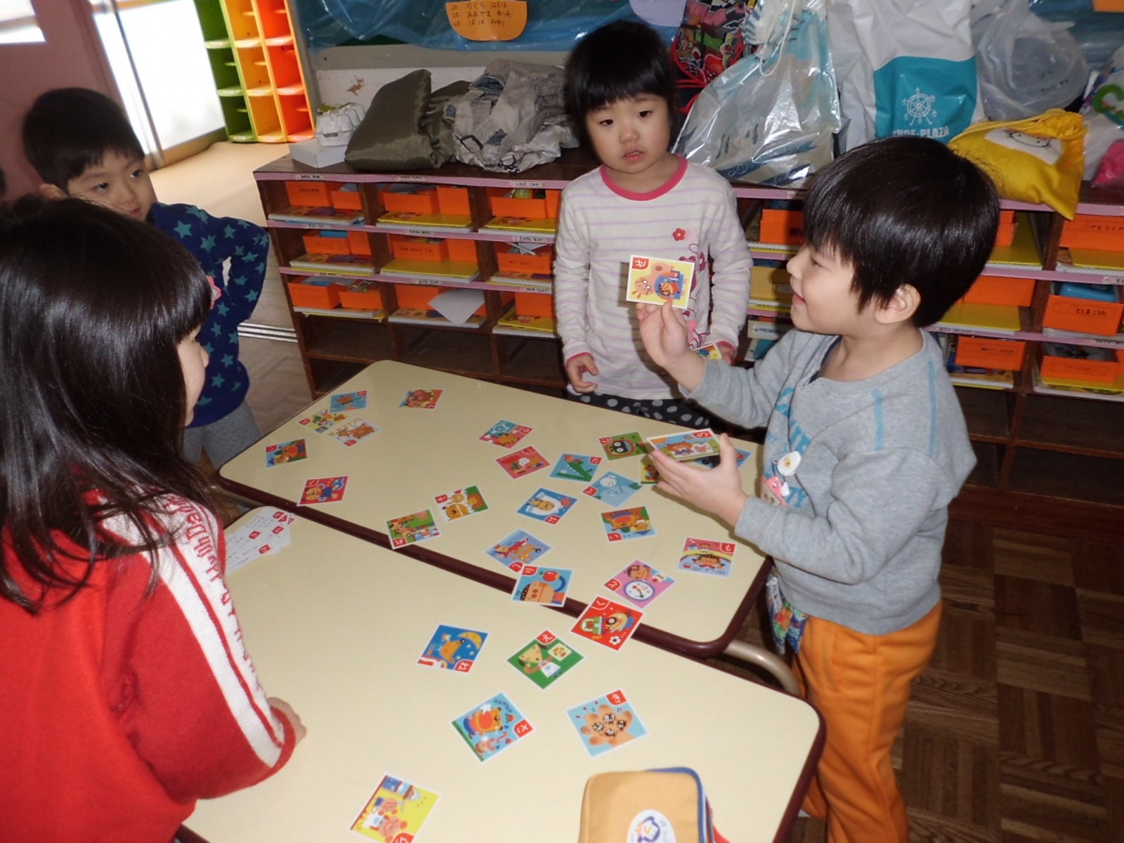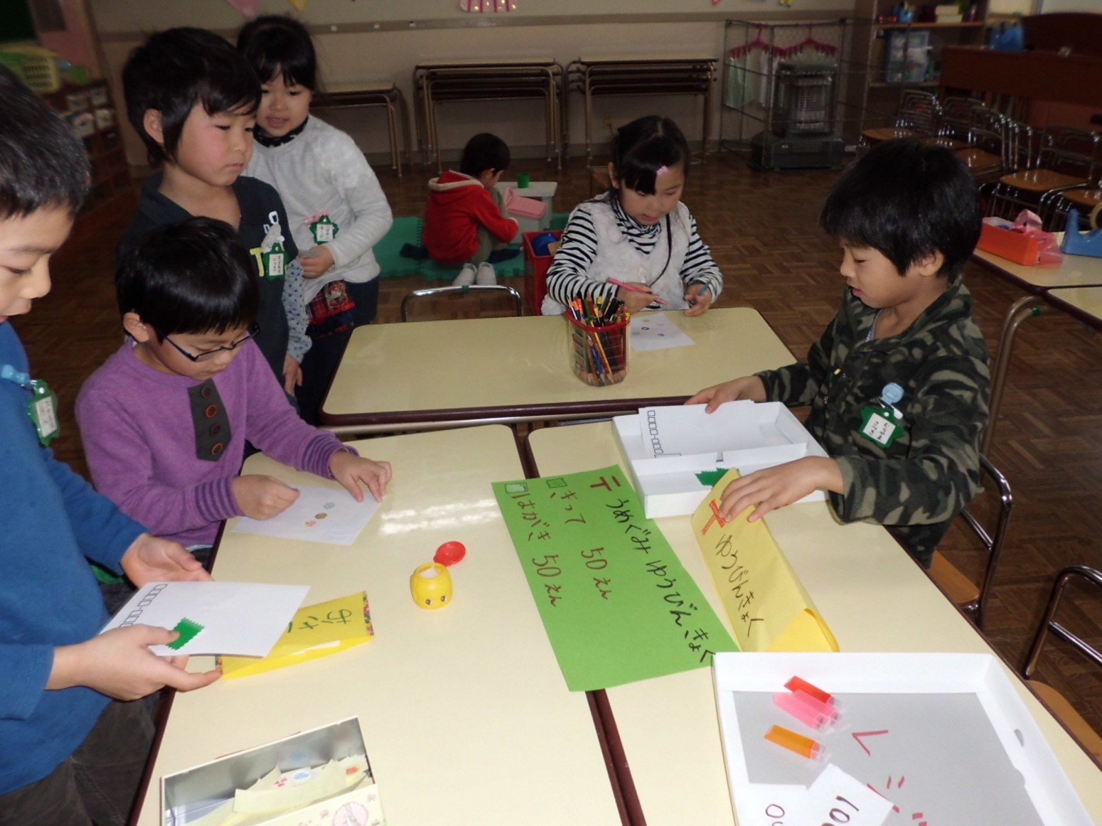 第2園では、福笑い、かるた遊び、そして、郵便やさんごっこなどをして遊びました。