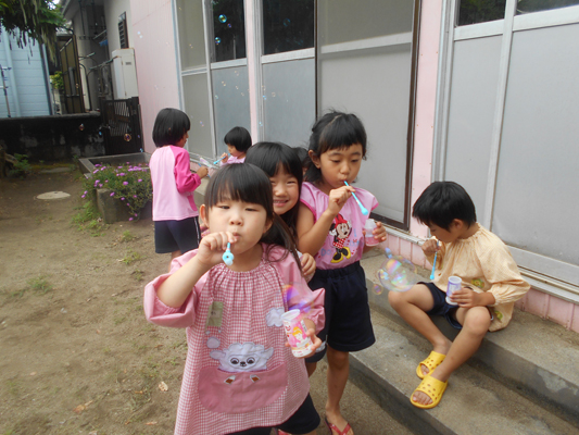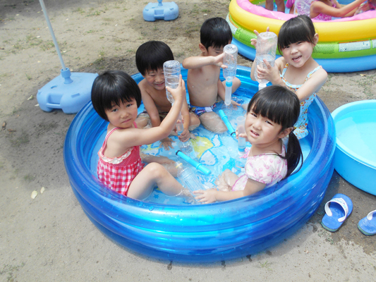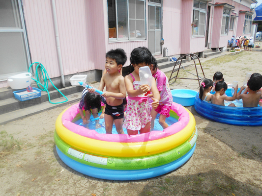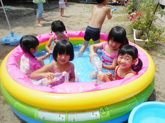 ばら組さんも園庭で水遊びを楽しみます