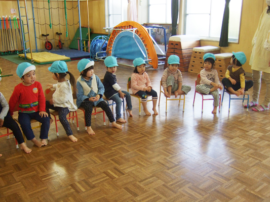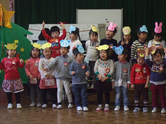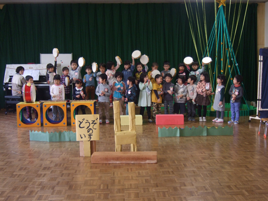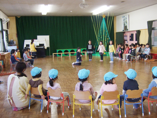 保育園の2歳児さんがやって来て、クリスマスの「イエス様のお誕生」のようすを真剣にみていきました。