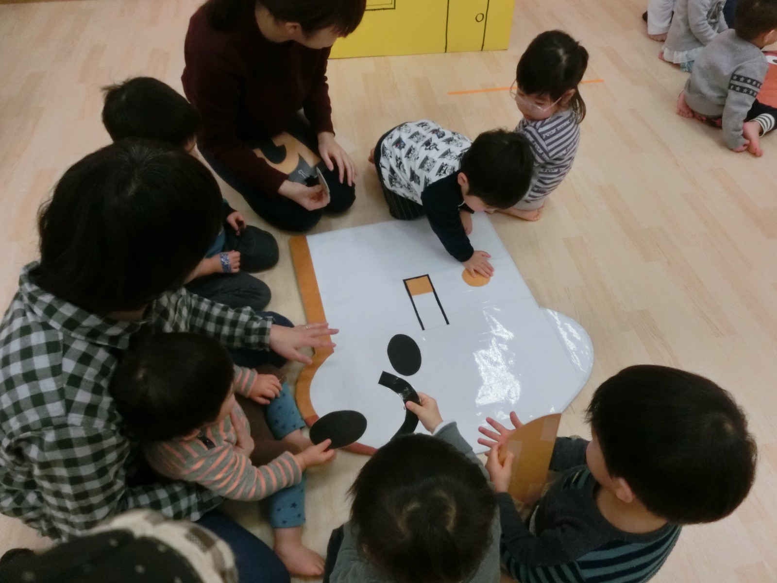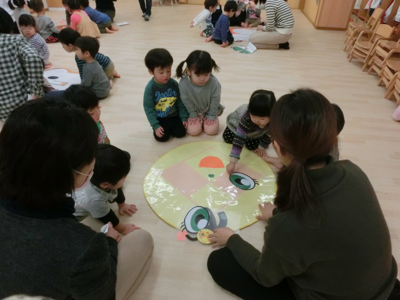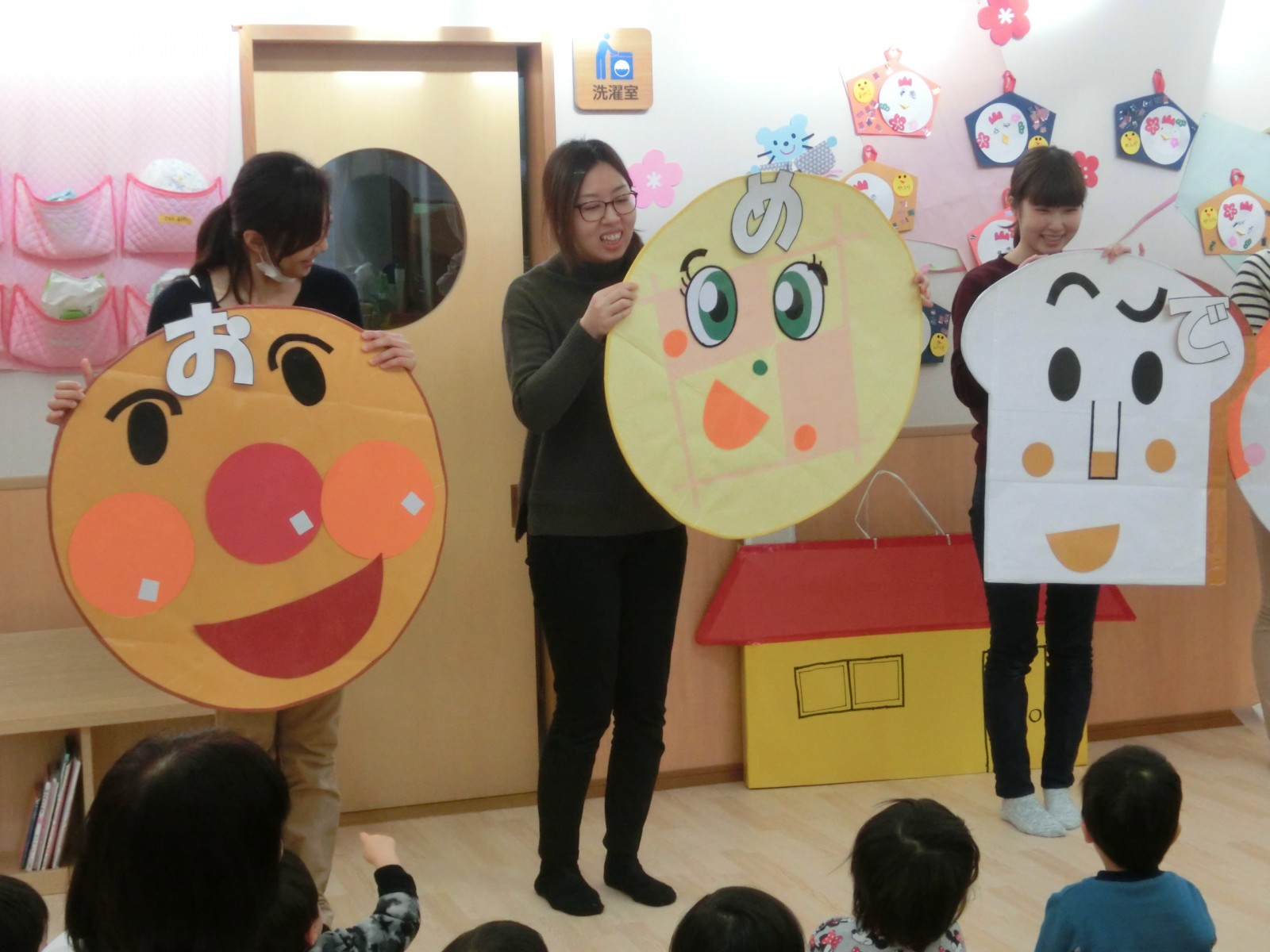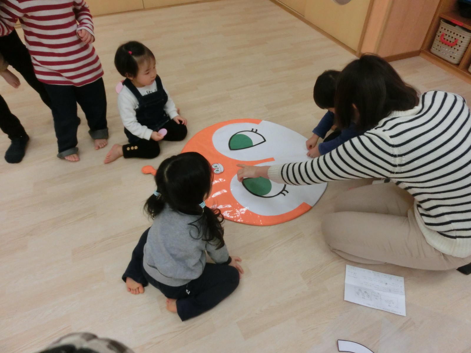 アンパンマンや食パンマンなどの顔で福笑い遊びをしました。