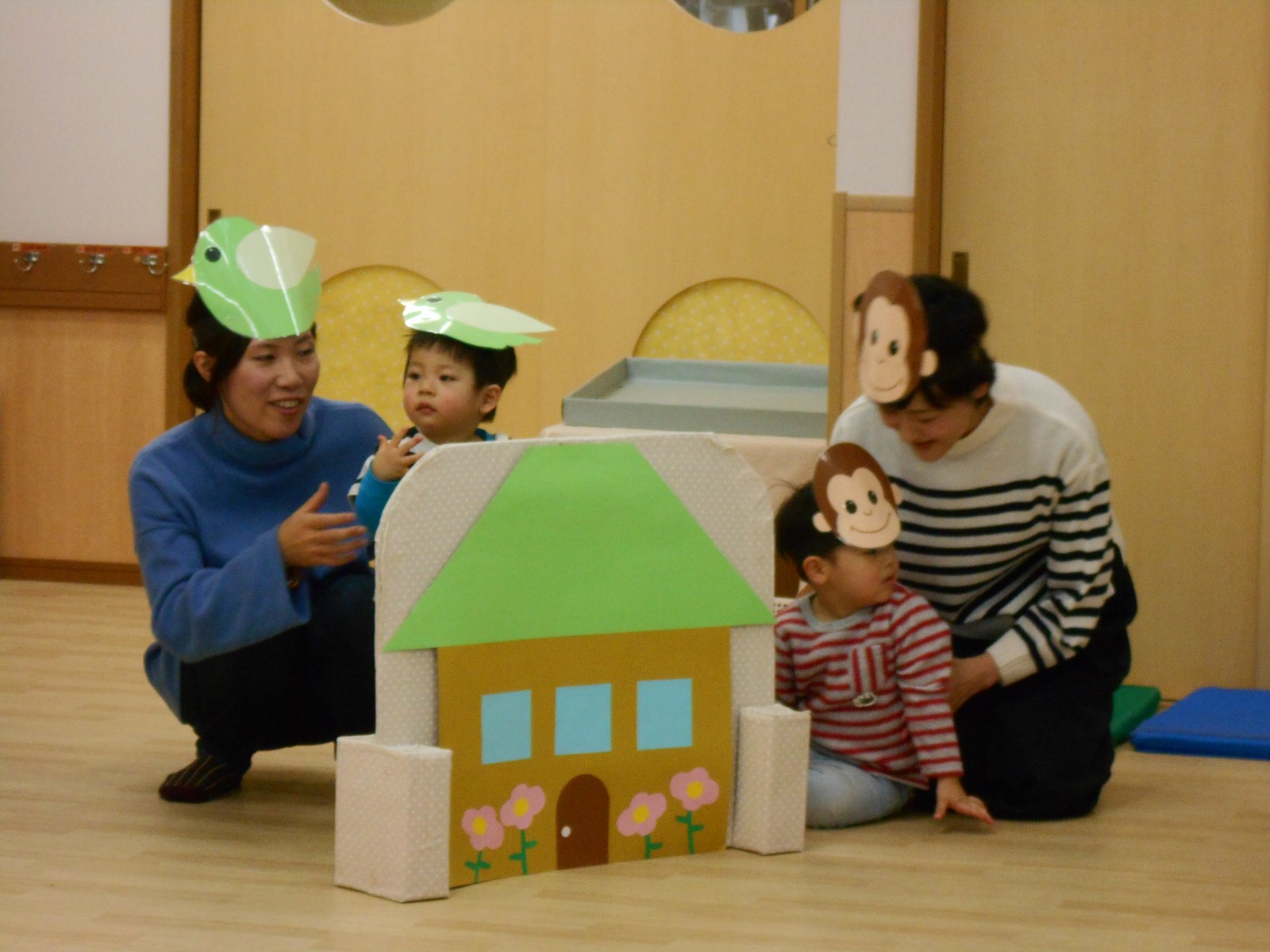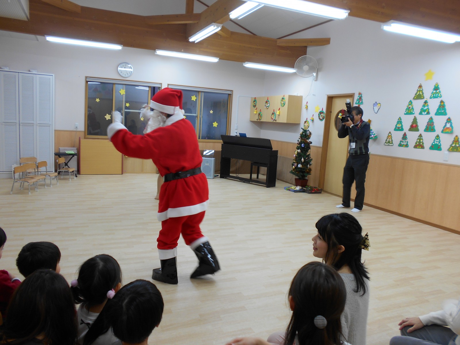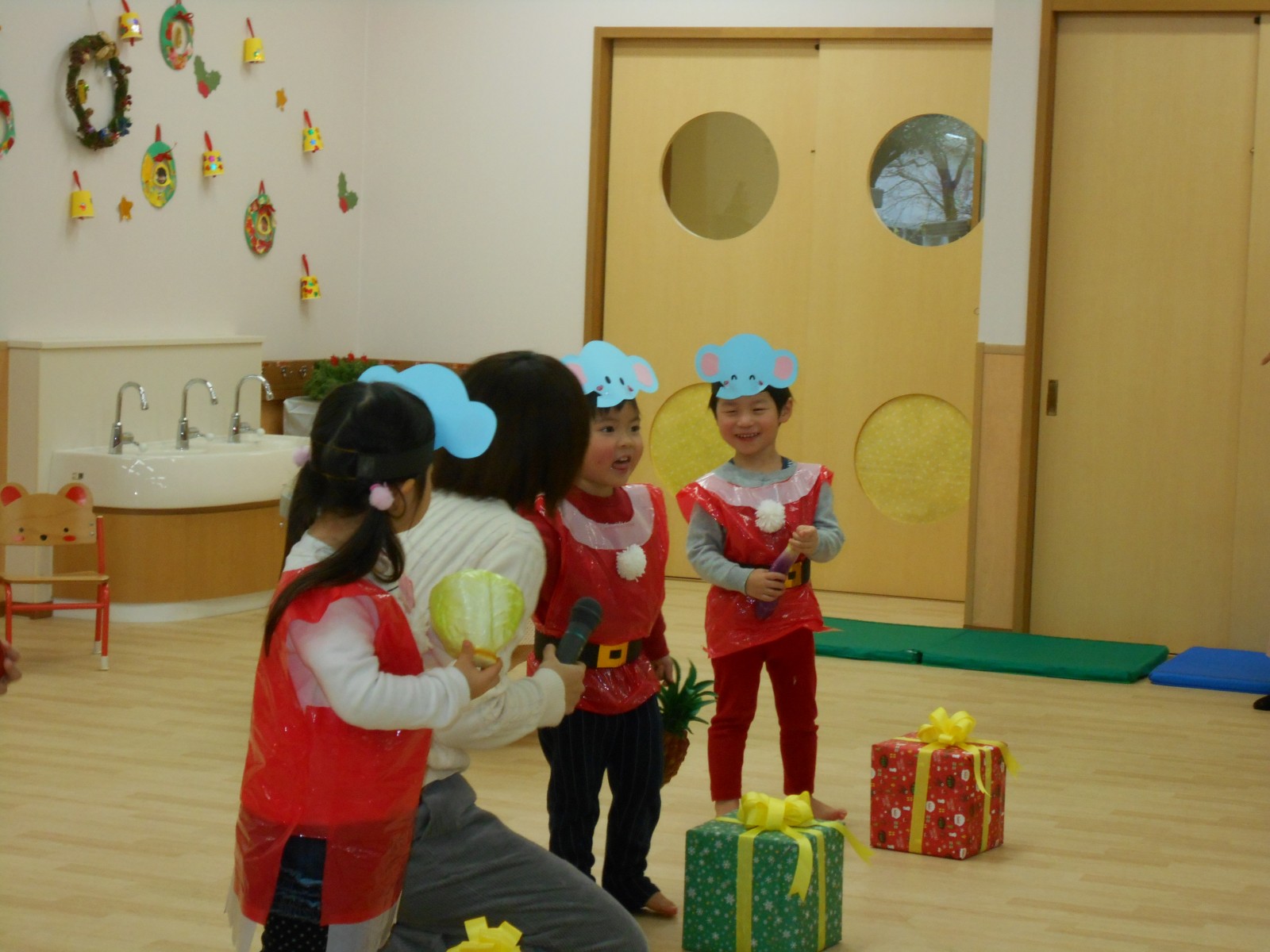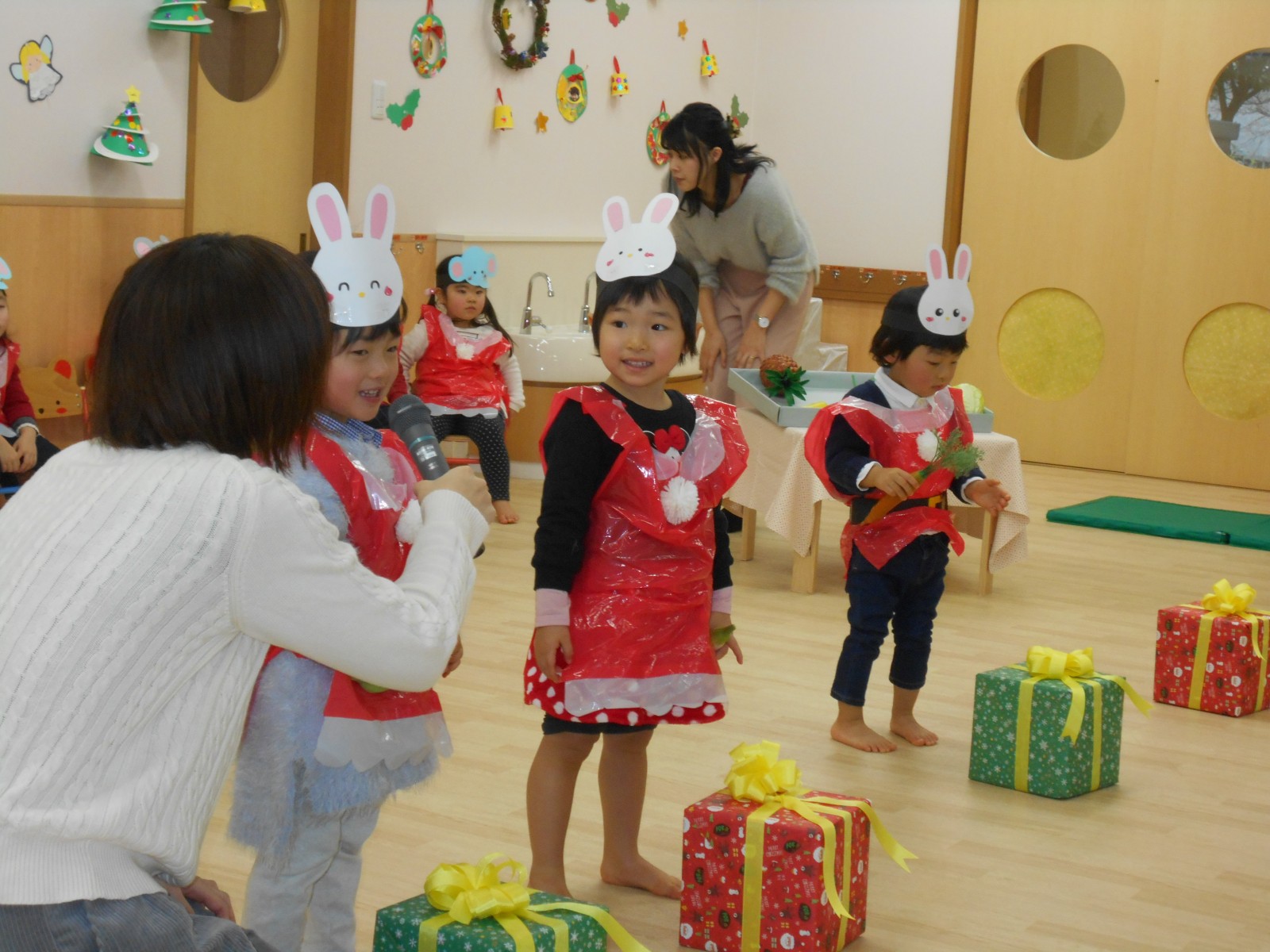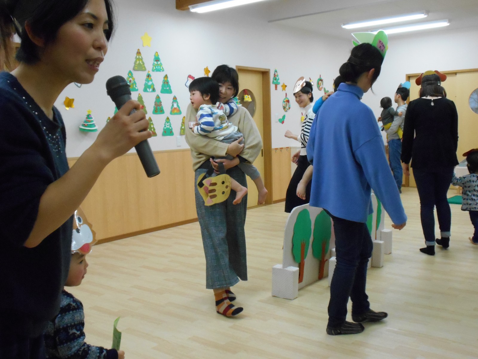 今年もお母さんと一緒にお祝いの歌遊びをしました。たくさんの人がいるので、びっくりして、泣いてしまったおともだちもいましたが、来年は泣かずにたのしめると良いね。