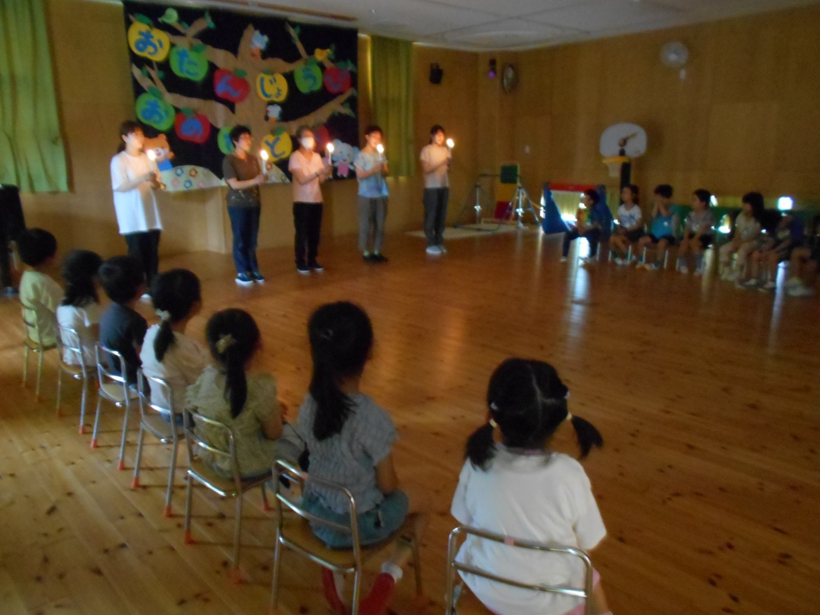 プログラムは子どもたちの誕生会と同じ内容です。先生たちが灯のついたろうそくを持って入場した後の