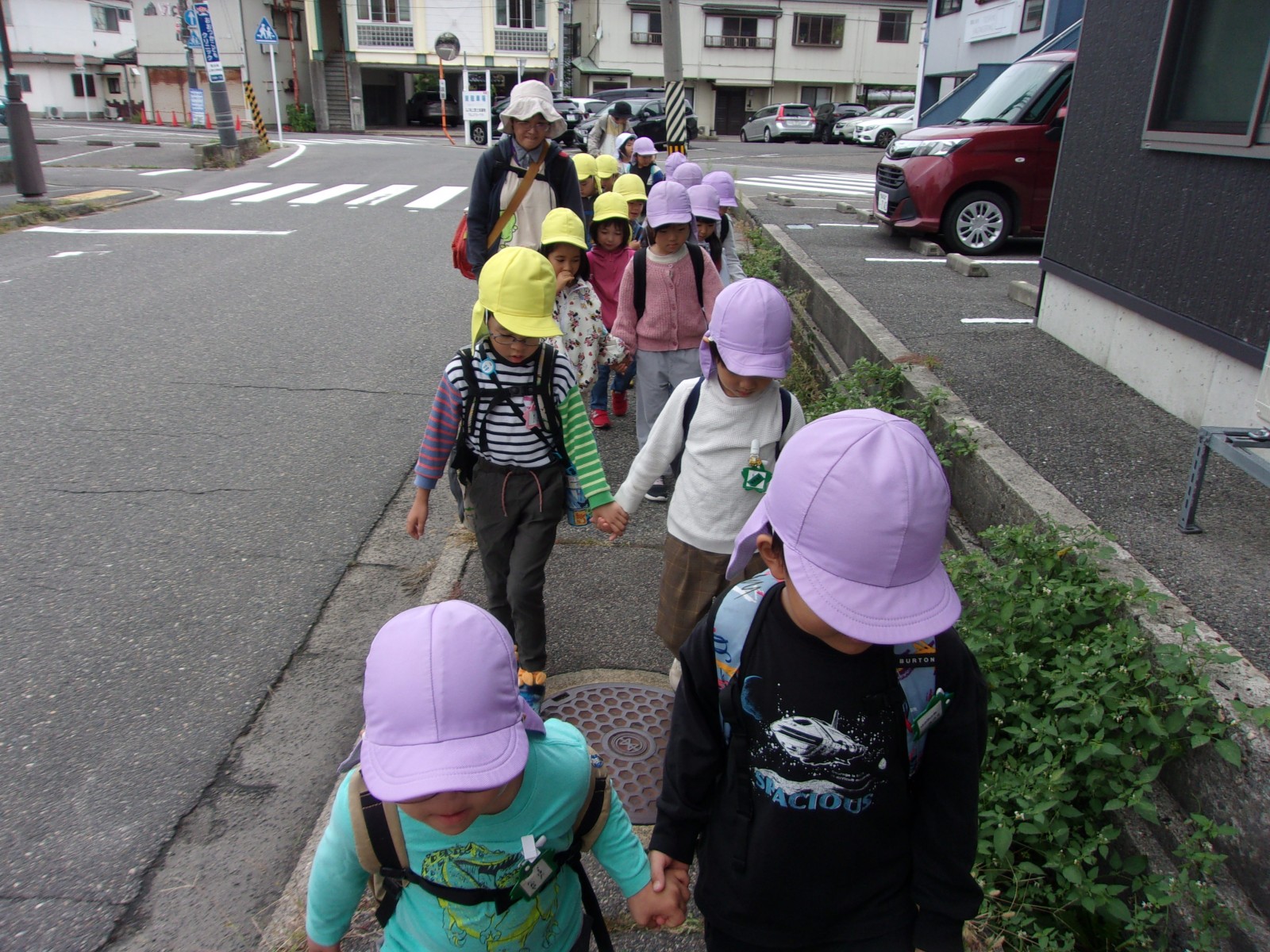 さすがに疲れたようで、帰りの電車で眠くなる子もいました。そして新潟駅に着くとまさかの雨・・・最後は雨具を着て園に帰りました。とてもよい経験になり、道中