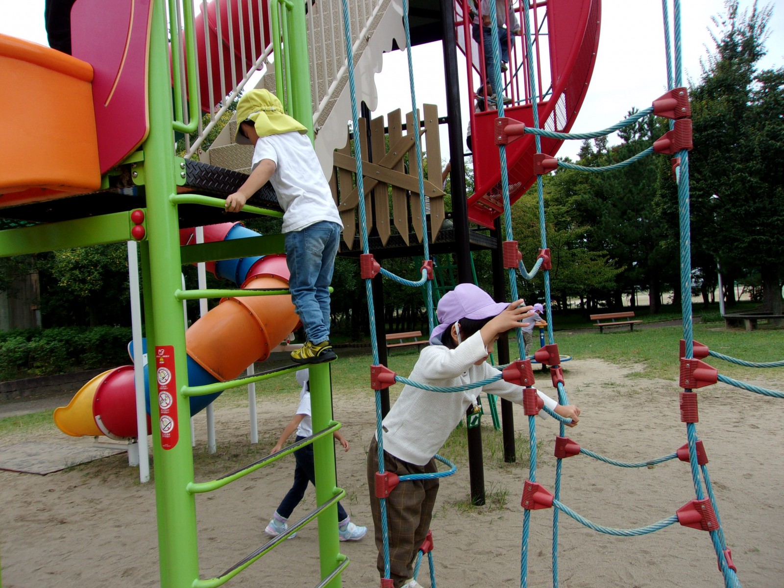 駅周辺にお散歩に行くたびに「駅の中、行きたいね」「電車乗ってみたい」と子どもたち。そんな子どもたちの思いを実現させたい、という願いから園外保育を計画しました。新潟駅から亀田駅までは電車で10分、亀田駅から公園までも歩いて10分程度と子どもの足でも歩けそうなので、目的地は亀田公園に決定!子どもたちと指折り数えて心待ちにしていました。ところが、前日は雨・・・当日もどんよりとしたお天気でしたが、子どもたちが出かけている時間帯はどうにか天気も持ちそうだったので予定通り出発しました。楽しみにしていたようで新潟駅まではりきって歩いたため、予定より早く駅に到着。新潟駅始発の電車だったので席にも座れました。公園では大きな遊具に大興奮!たくさん遊んだ後はお楽しみのお弁当です。ところが、食事中雲行きが怪しくなり心配しましたが亀田駅に向かうまでは雨は降らずに過ごせました。