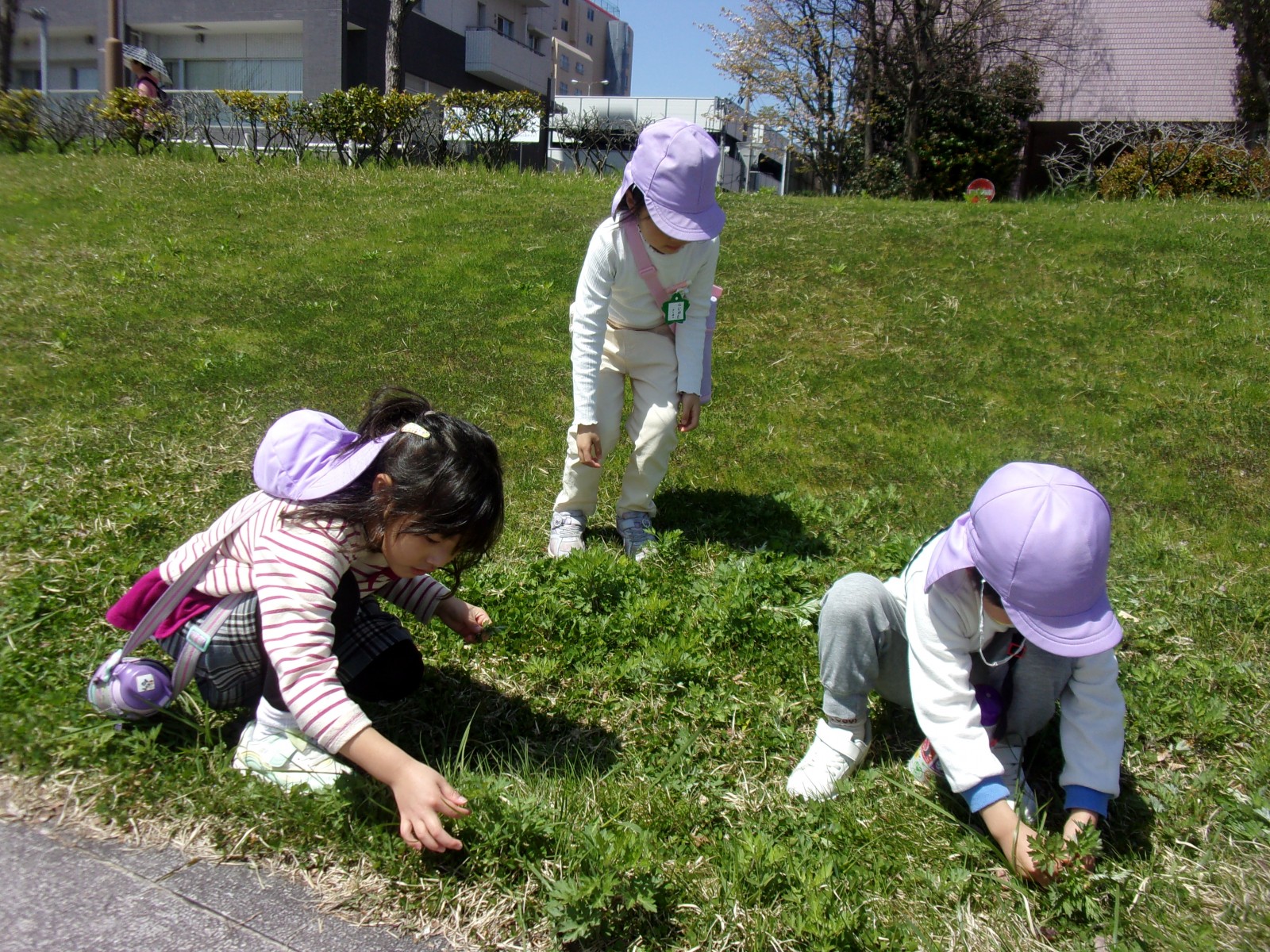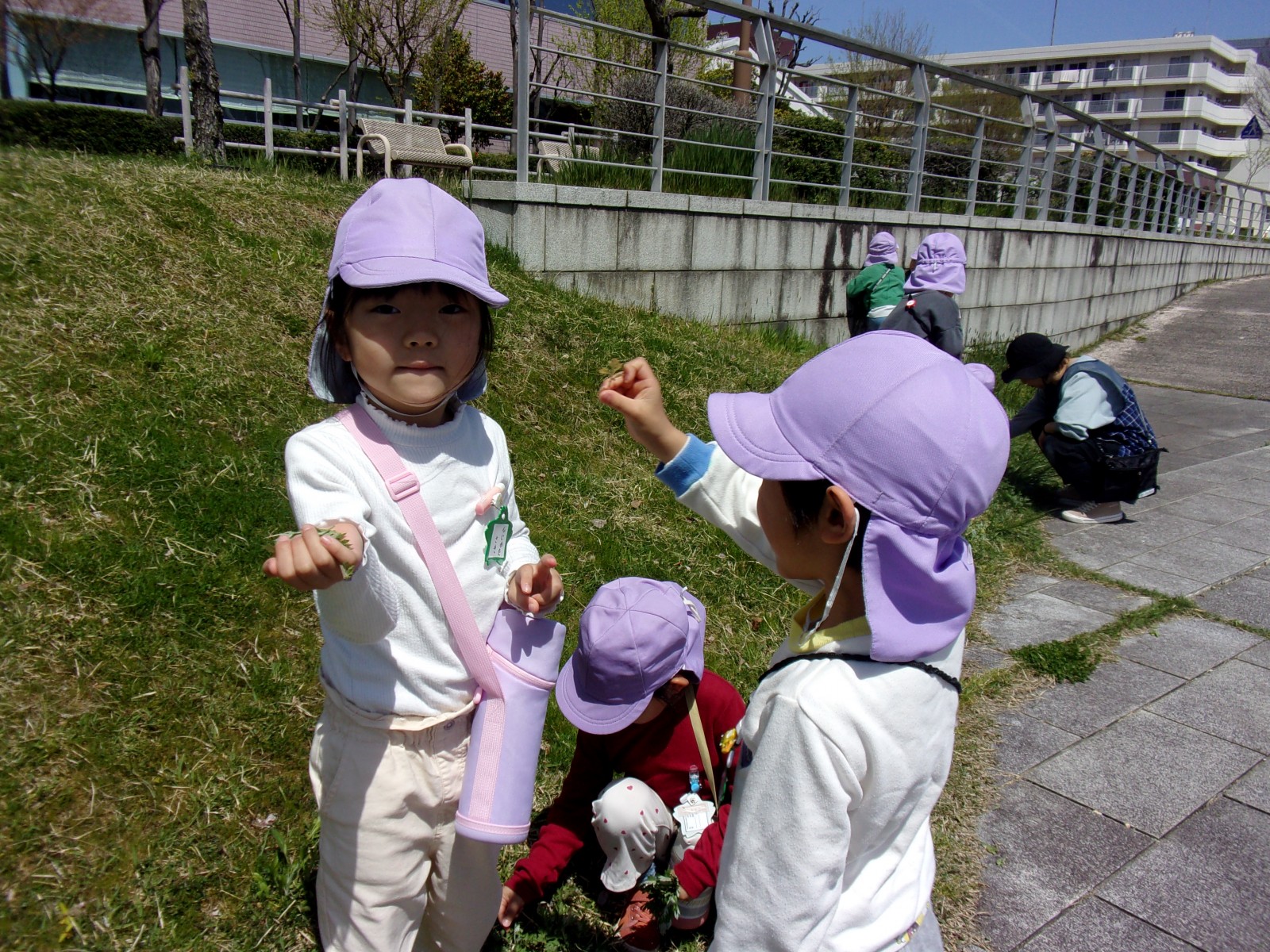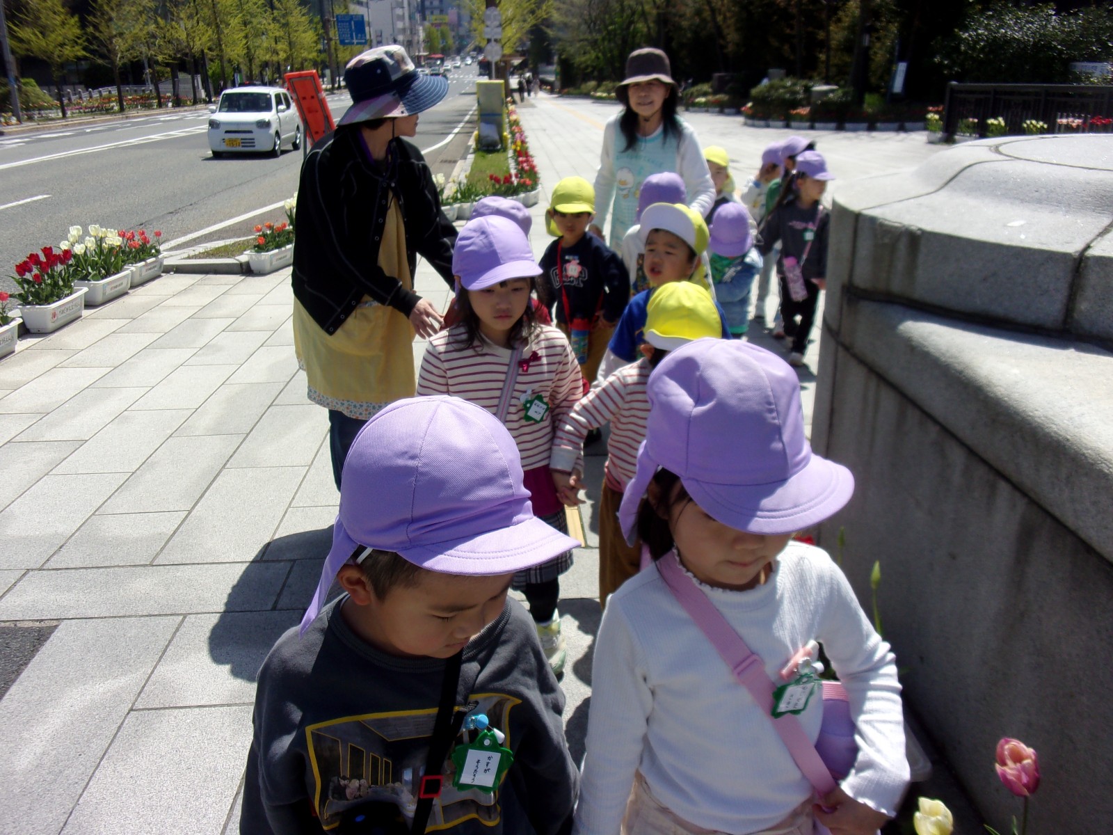 うめ組(5歳児)・ばら組(4歳児)の子どもたちが園バスに乗り、萬代橋チューリップフェスティバル見学に行ってきました。少し暑さを感じるくらいのとてもよいお天気でした。うめ組さんはNST前から萬代橋を歩きやすらぎ提でよもぎつみをしました。ばら組さんは萬代橋のたもとからうめ組さんと合流し、手をつないでチューリップ見学をしました。昨年みんなで植えたチューリップはちょうど見頃で、とてもきれいでした。