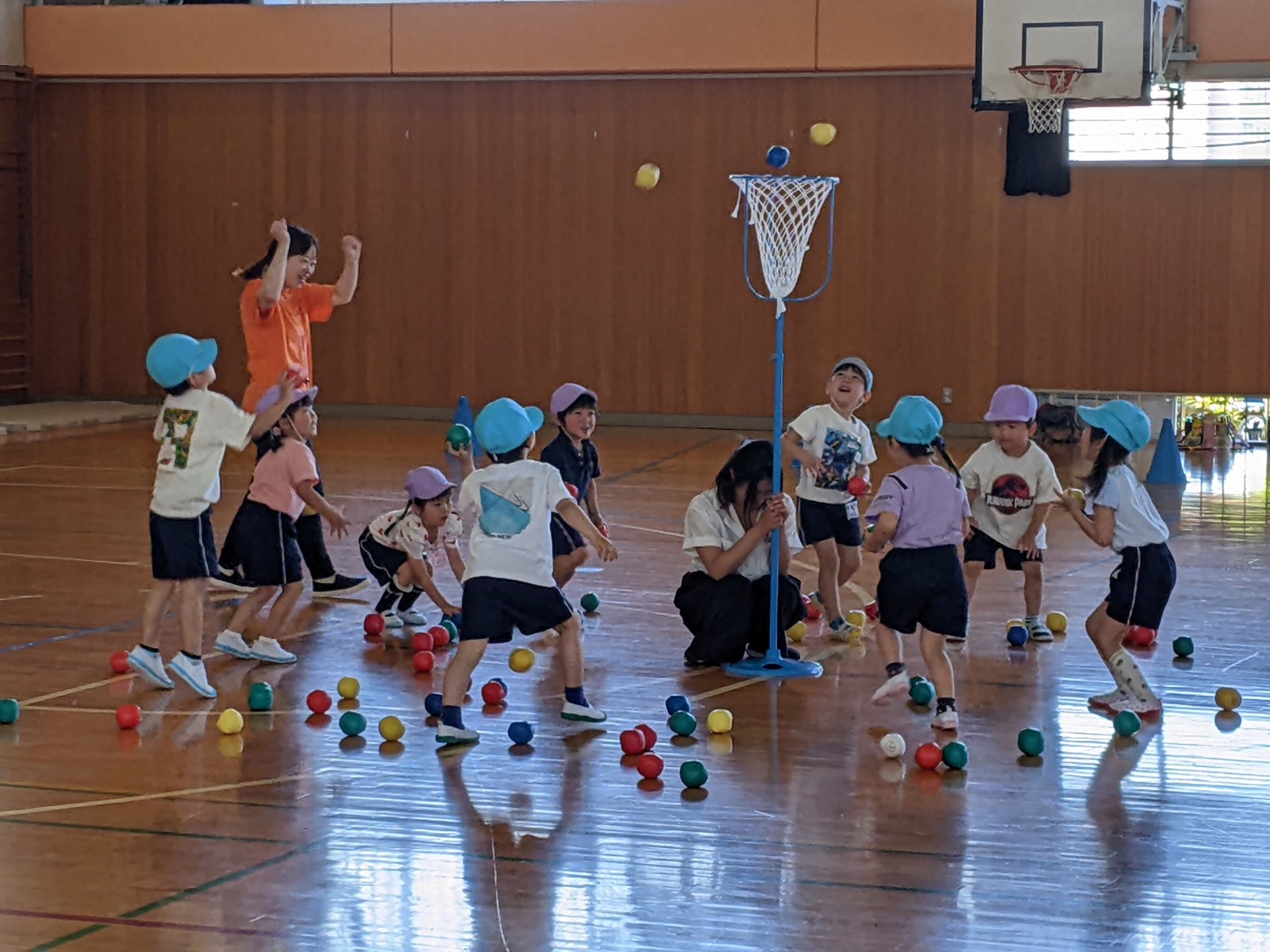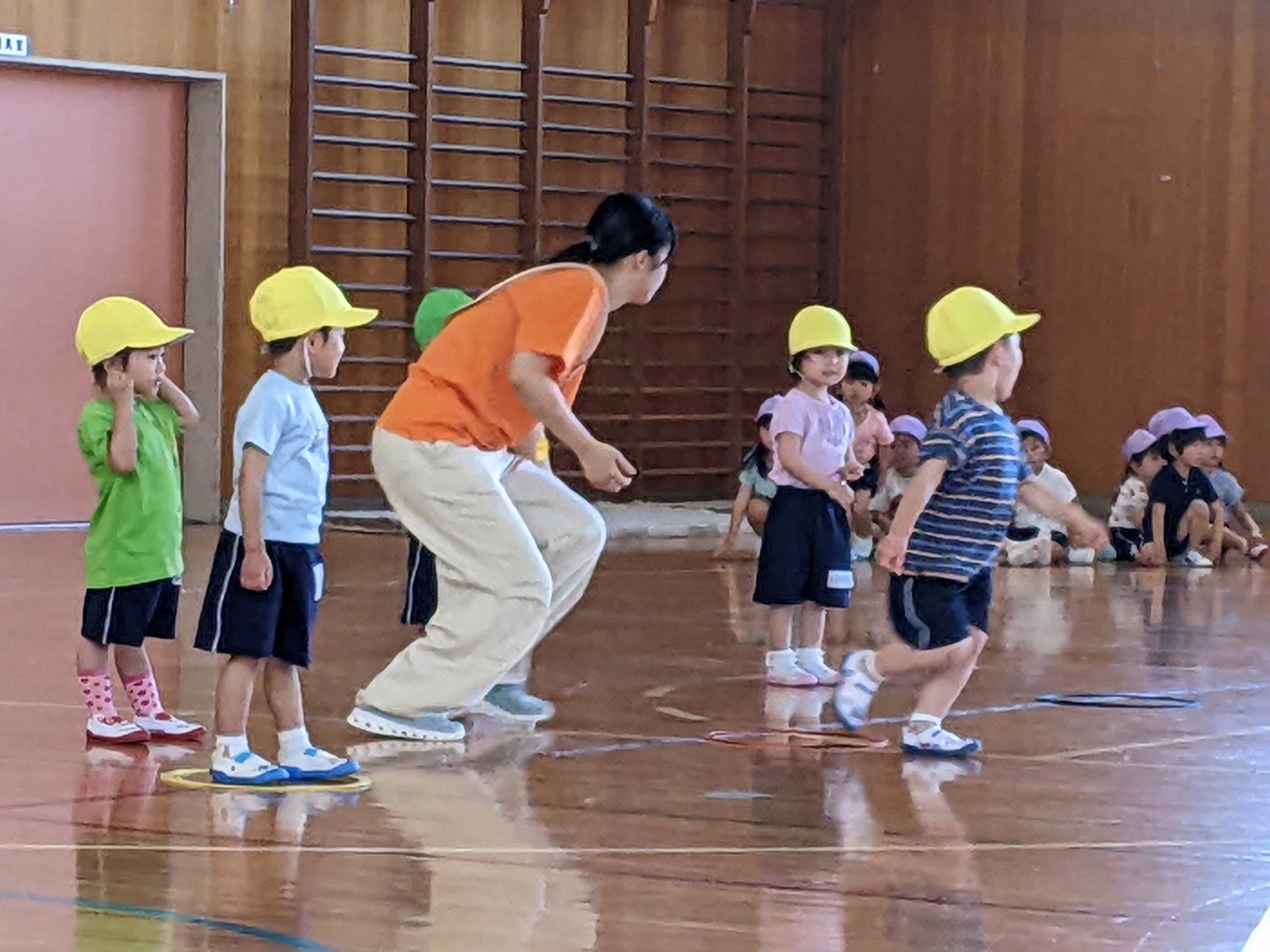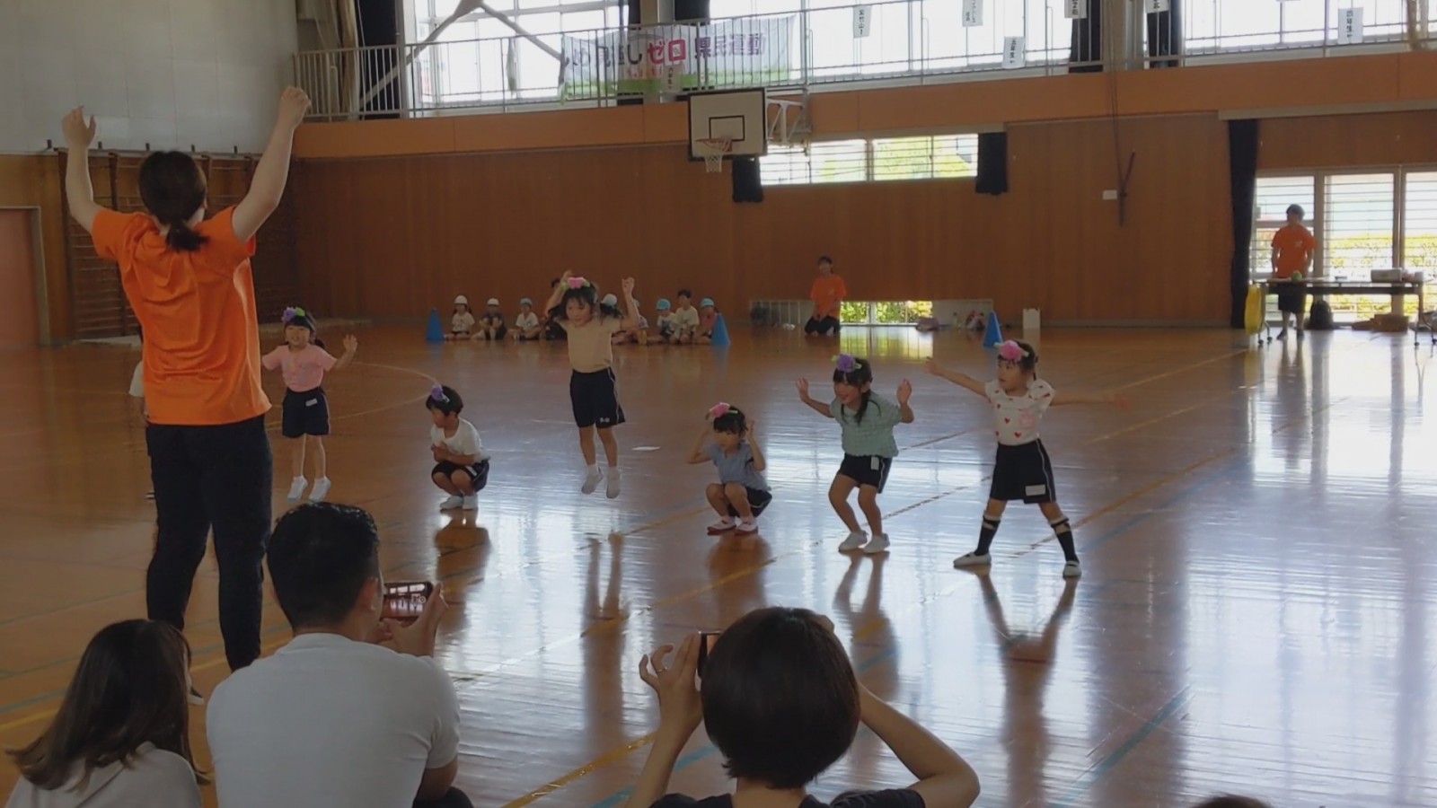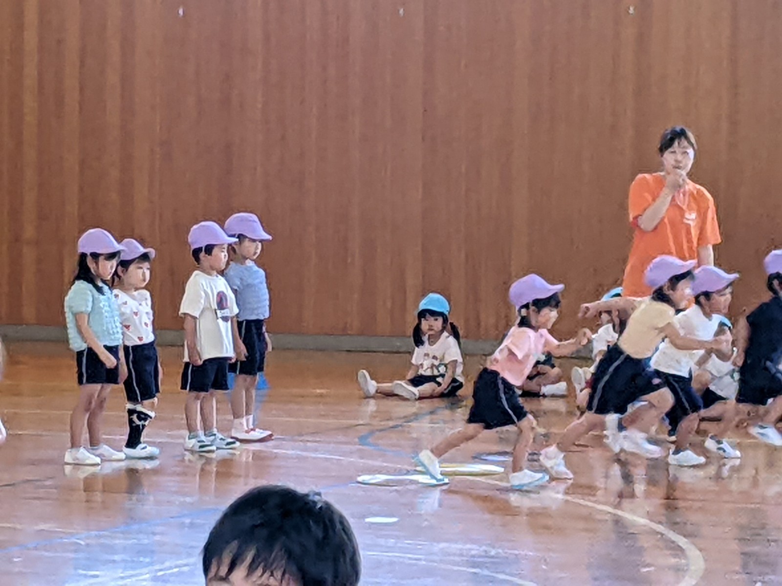 いつもと違う場所、広い体育館、たくさんのお家の方・・・始めは少し戸惑い気味の子どもたちでしたがプログラムが進むにつれ雰囲気にも慣れていき、園で楽しんでいる姿そのままをご覧いただけました。