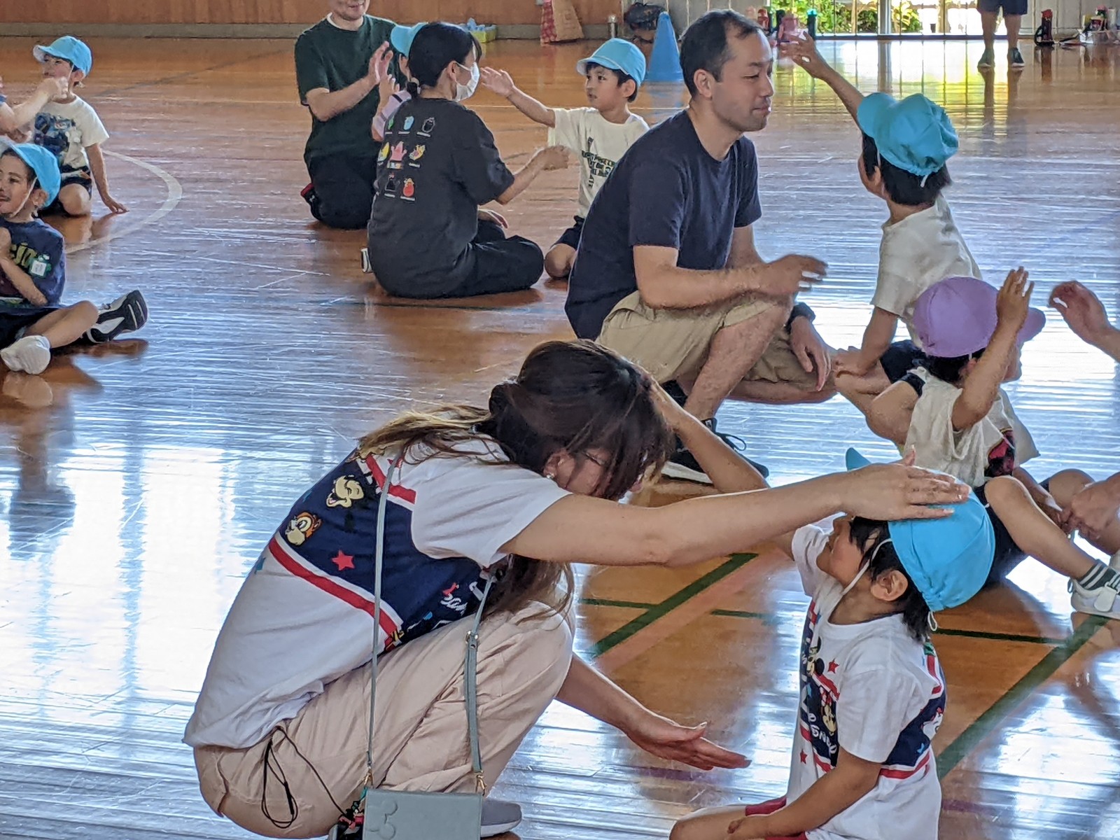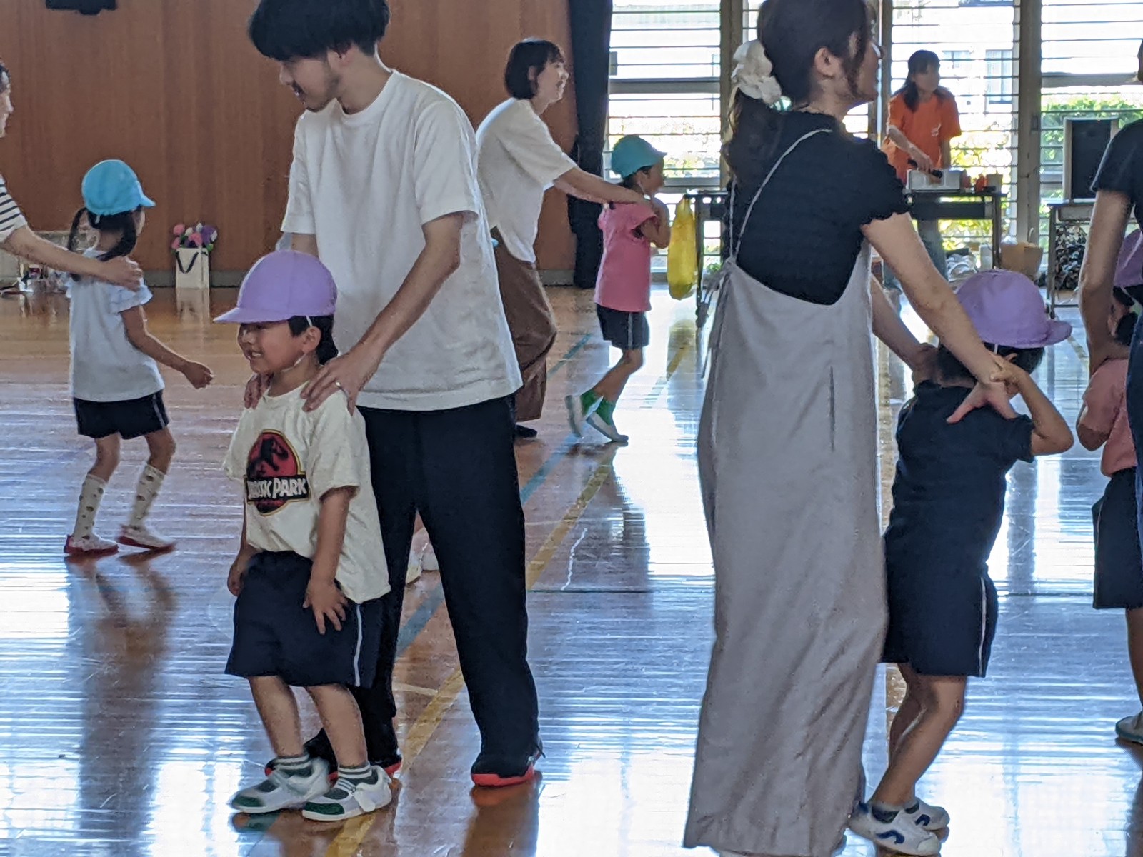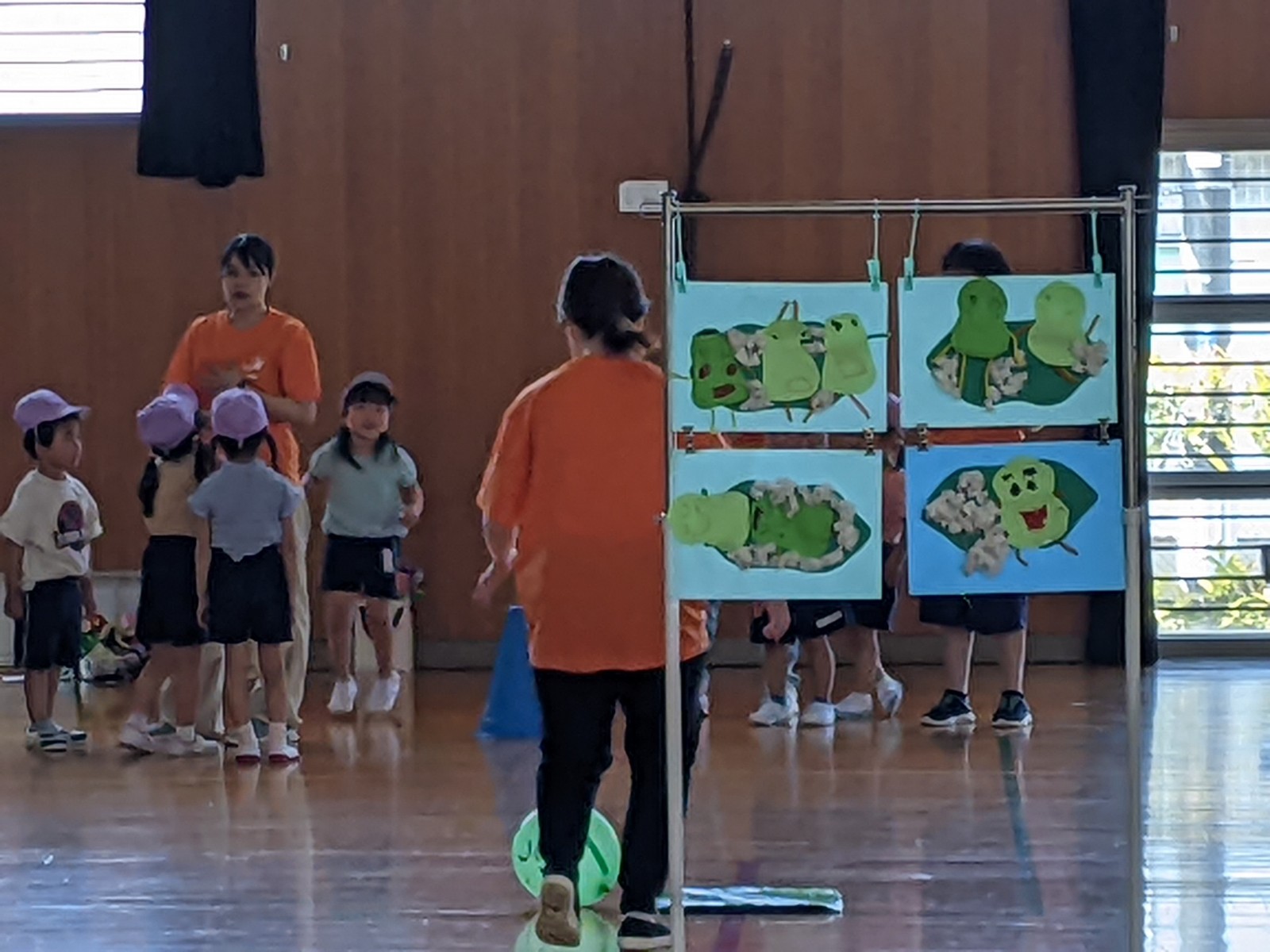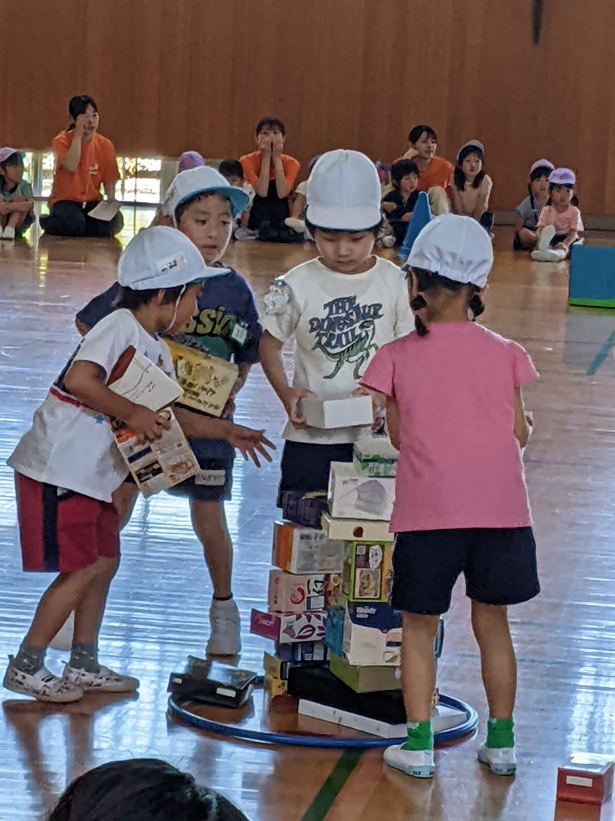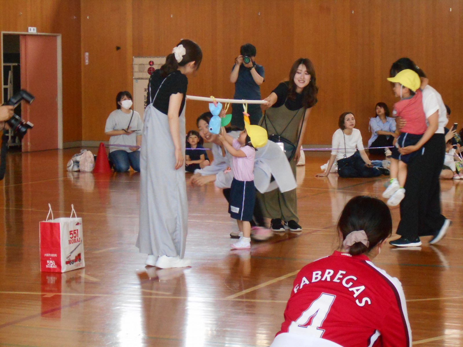 いつもと違う場所、広い体育館、たくさんのお家の方・・・始めは少し戸惑い気味の子どもたちでしたがプログラムが進むにつれ雰囲気にも慣れていき、園で楽しんでいる姿そのままをご覧いただけました。