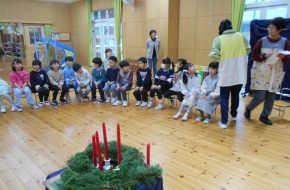 子どもたちにとって待望の雪がふりつもりました。22日はほんの少しの雪で、園庭の芝生も見える程度でした。それでも子どもたちにとっては“恵みの雪”です。少ない雪を集めて遊んでいました。ところがその週末、大量に雪が降りました。園庭はびっくりするほどの大雪です!子どもたちは大喜びで雪の上を寝転がったり、そり遊びしたり、雪だるま作りをしたり・・・思い思いに雪遊びを楽しんでいました。