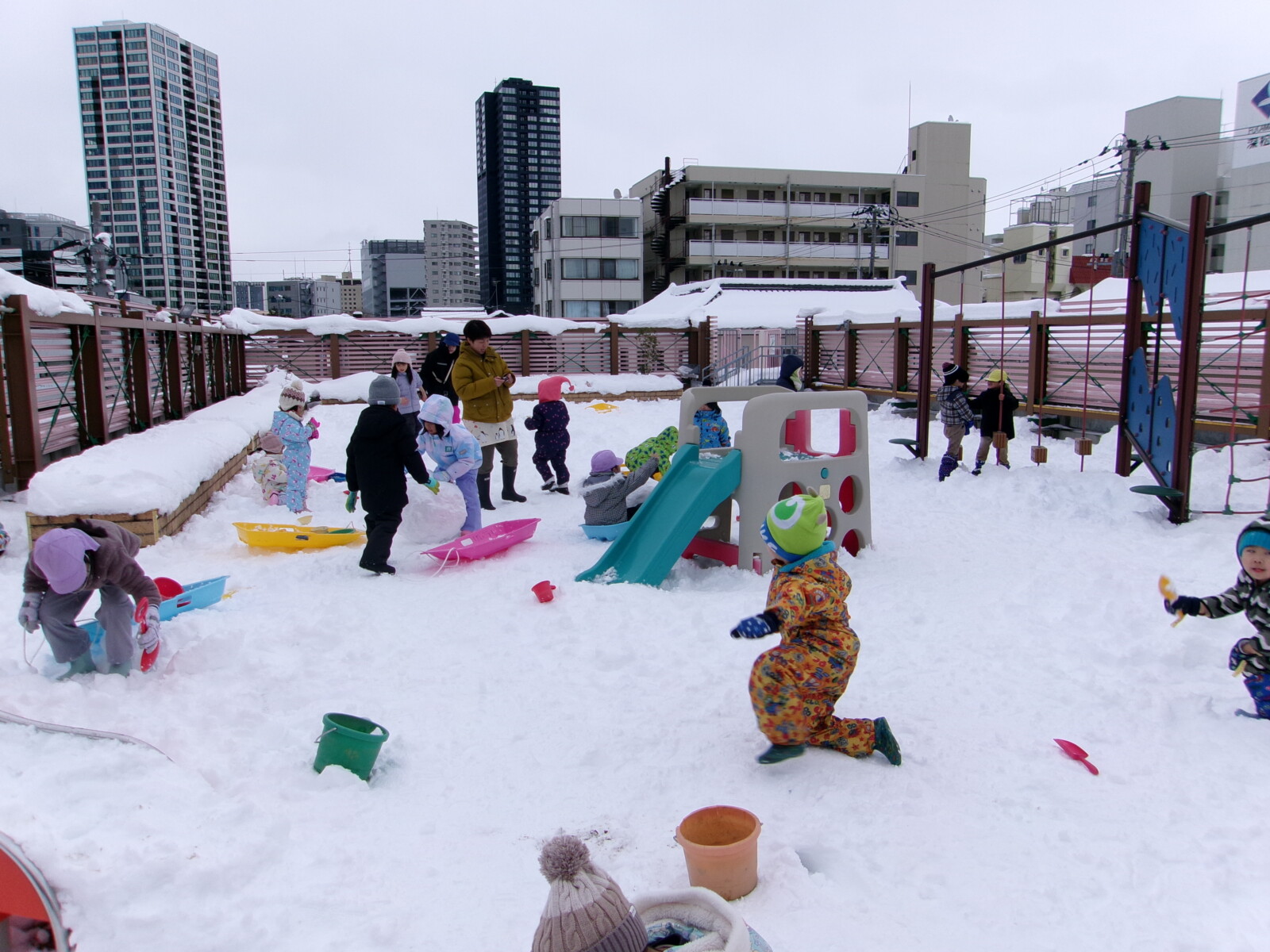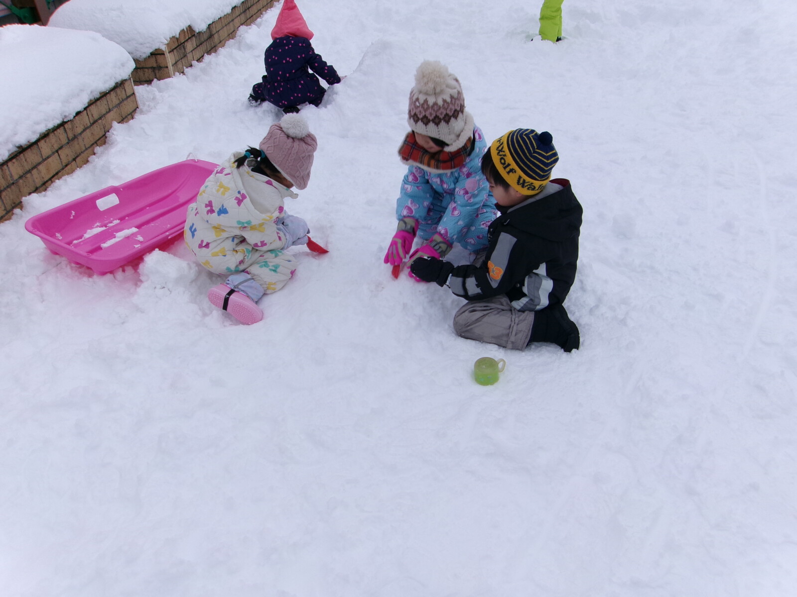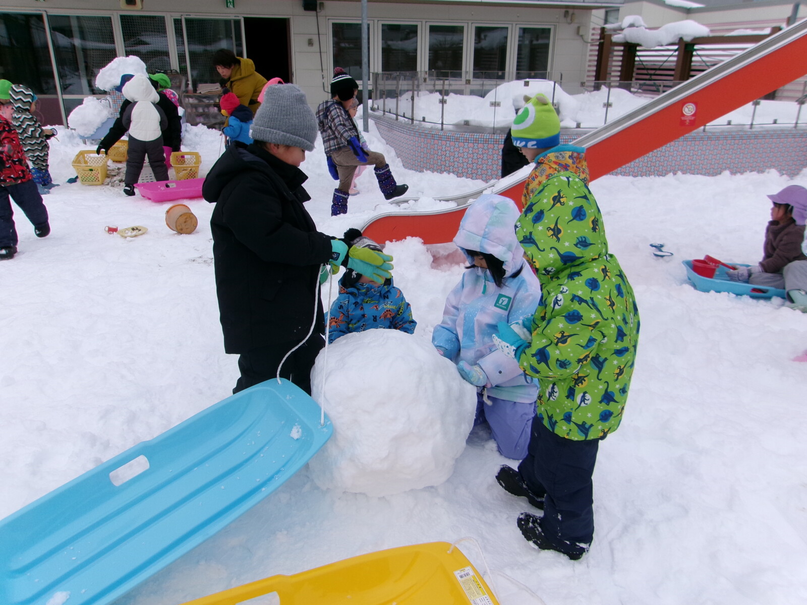 大人にとっては大変な雪ですが、子どもたちにとっては神さまからのお恵みです。この時期にしかできない遊びをめいっぱい楽しむことができました。