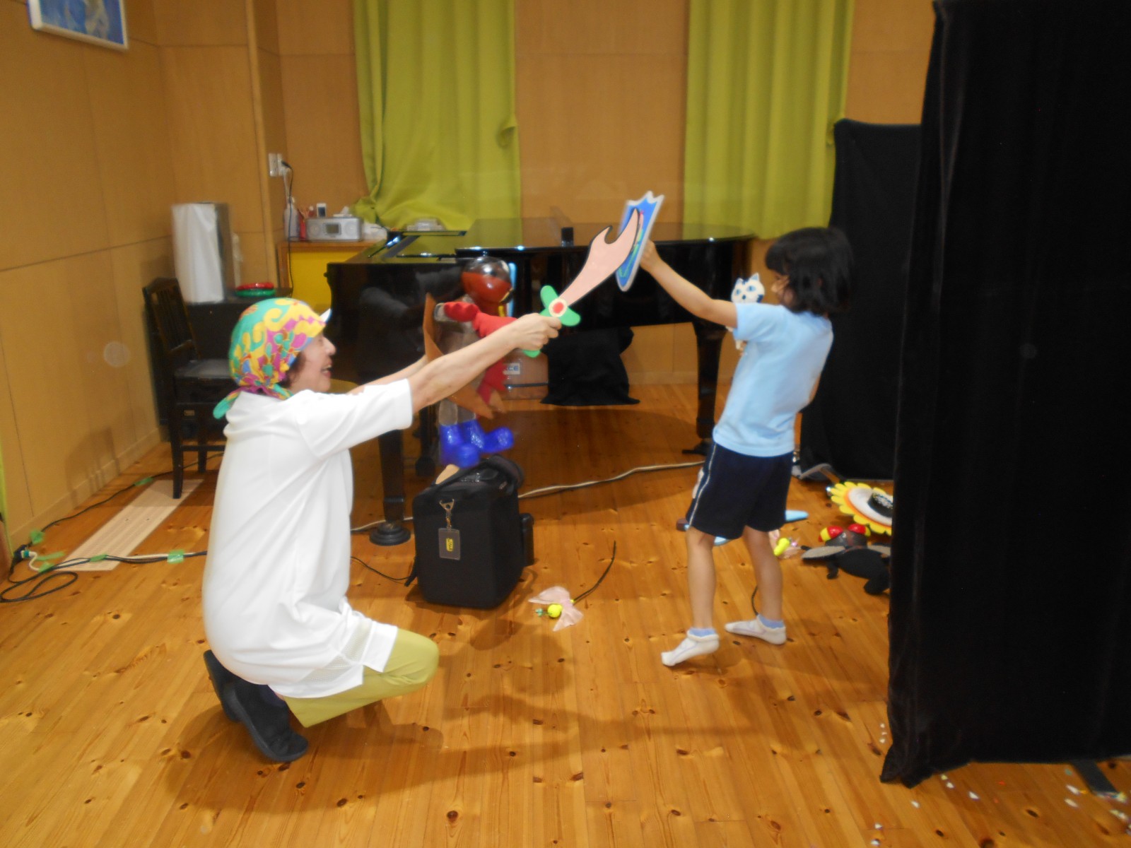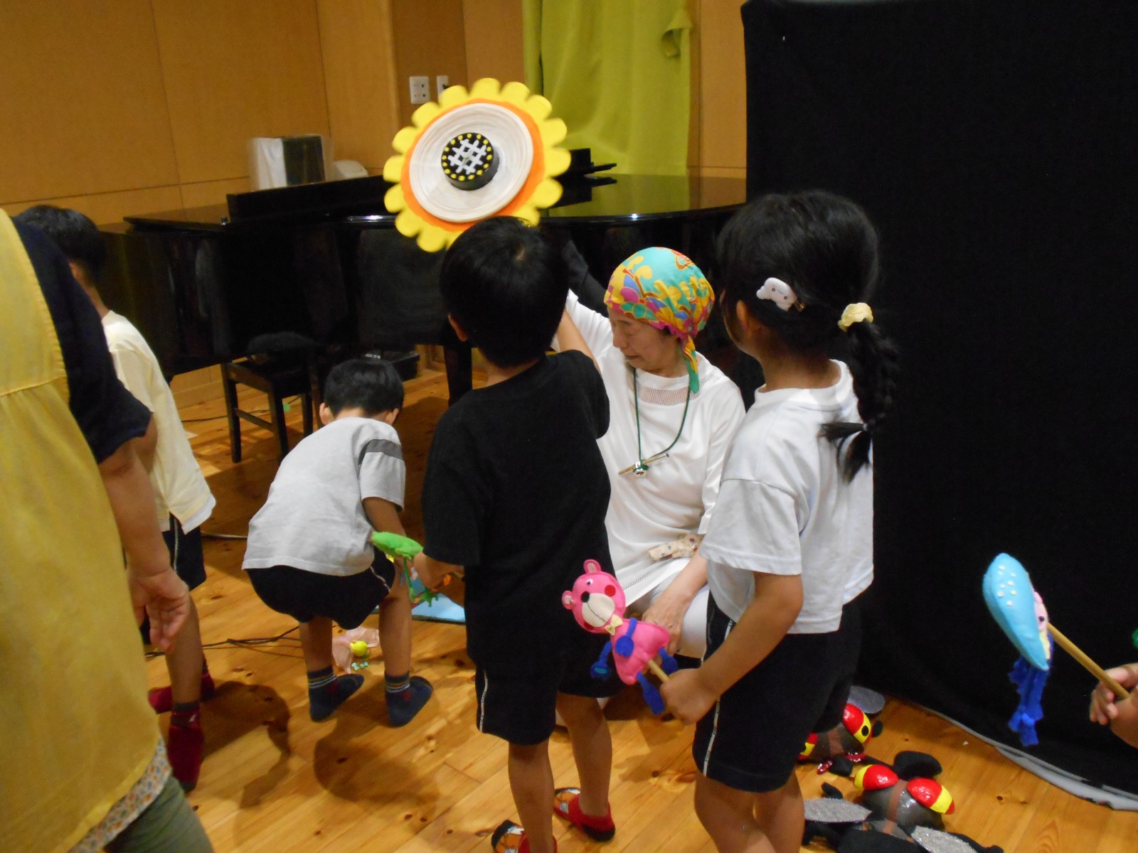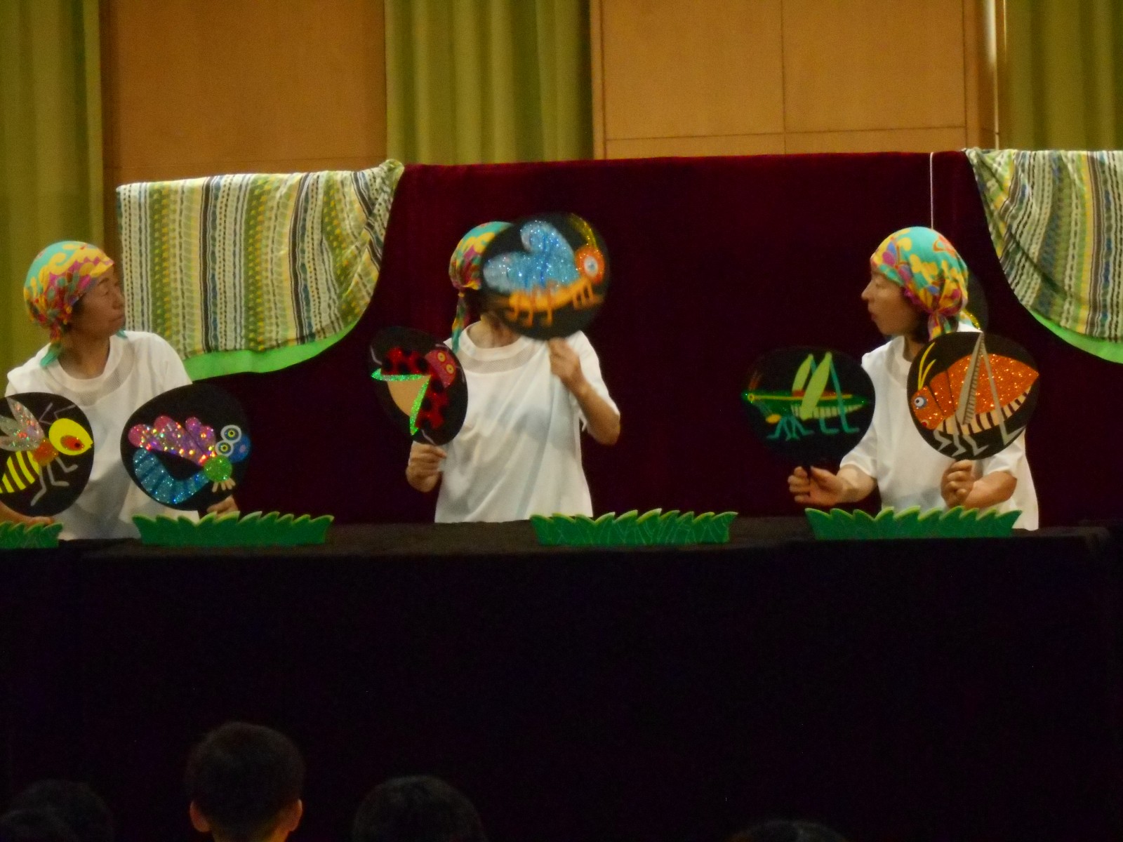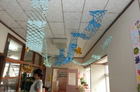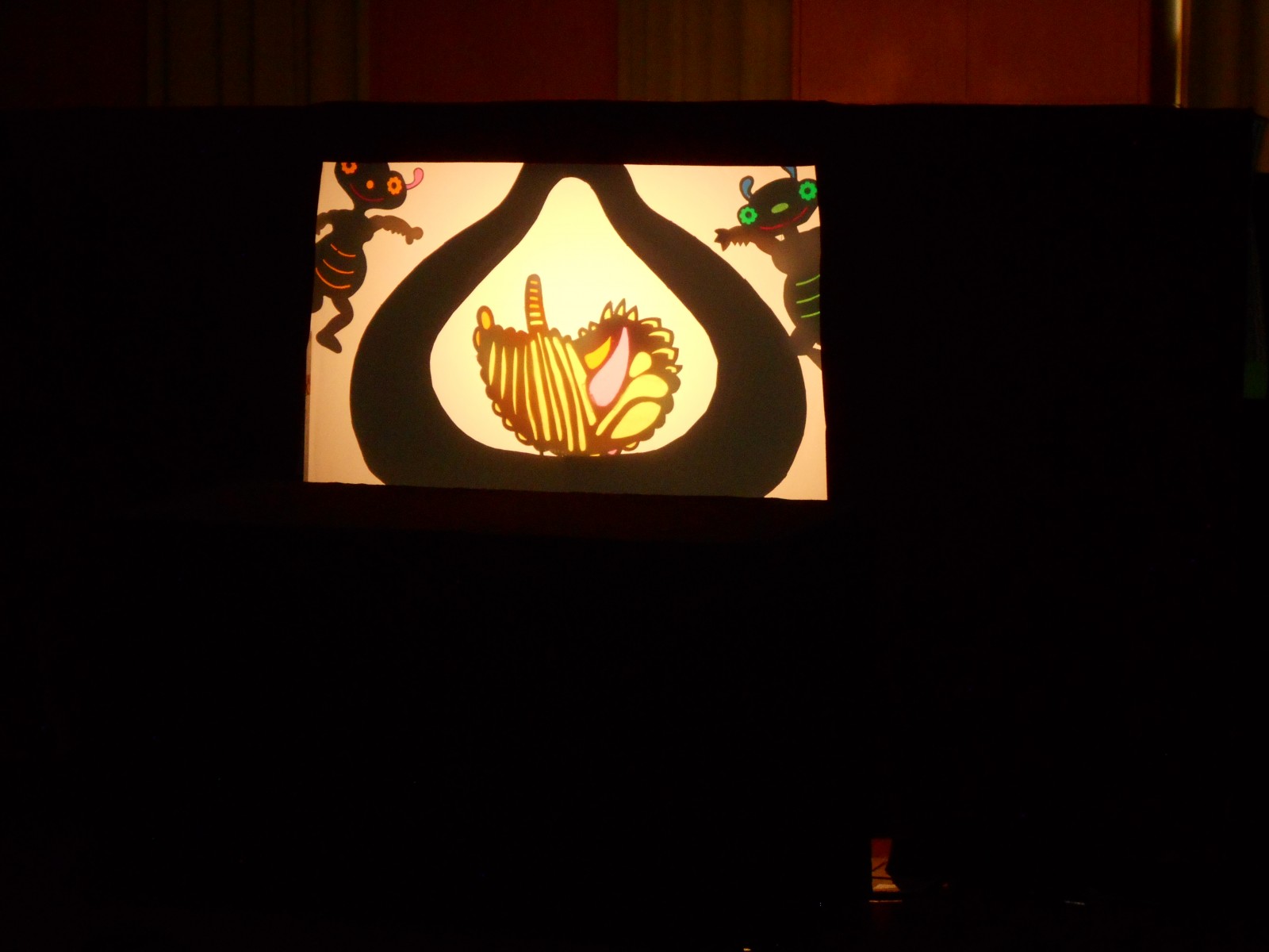 第一園のホールでちょうちん座の人形劇を見ました。今年のお話は『ちょうちんボードビル“のはらにハイホー”』『ふんまんじゅうの謎』です。ストーリー、音楽、人形、小道具等全てがちょうちん座のオリジナルで毎年子どもたちに大人気の人形劇です。観劇後は年長児のみ舞台裏探検をして人形との触れ合いを楽しみました。