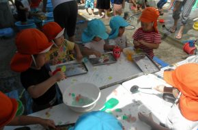 色々な素材を使って工夫して楽しく心を込めて作った物を「買い物」の経験を通してお家へのお土産が出来たと思います。