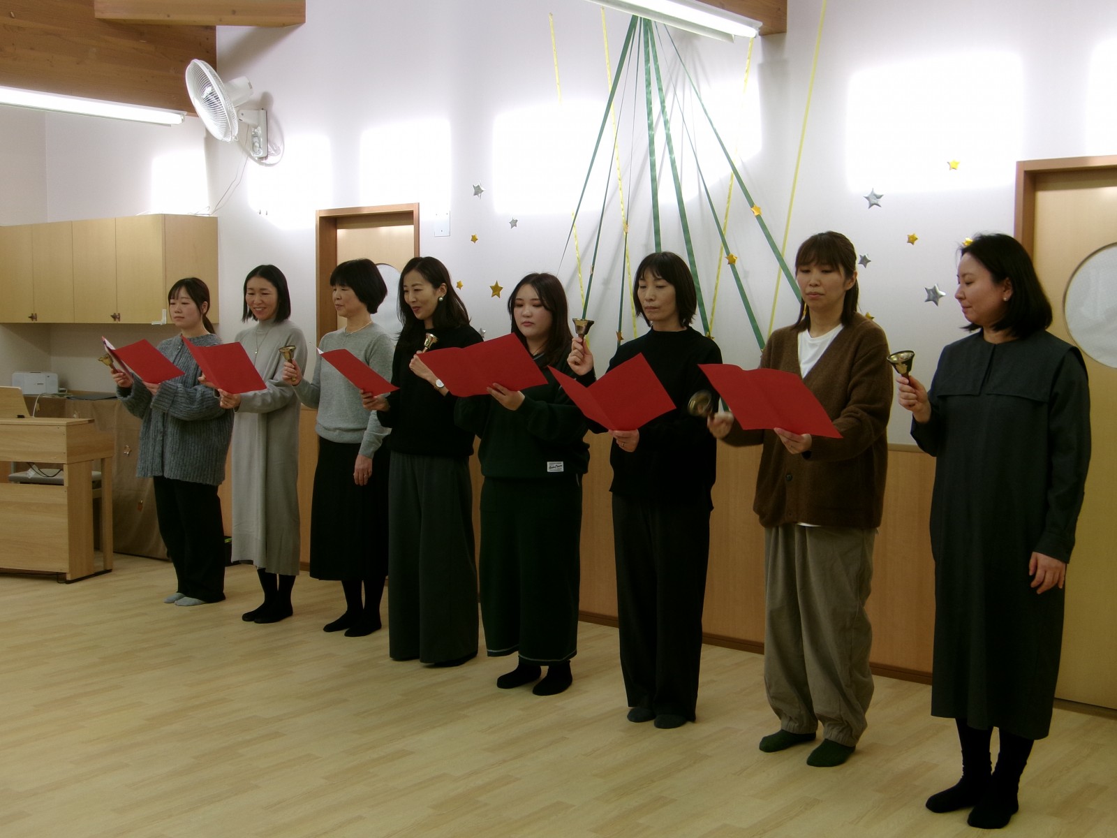 みんなでクリスマスの歌を歌い、鈴も鳴らして楽しみました。