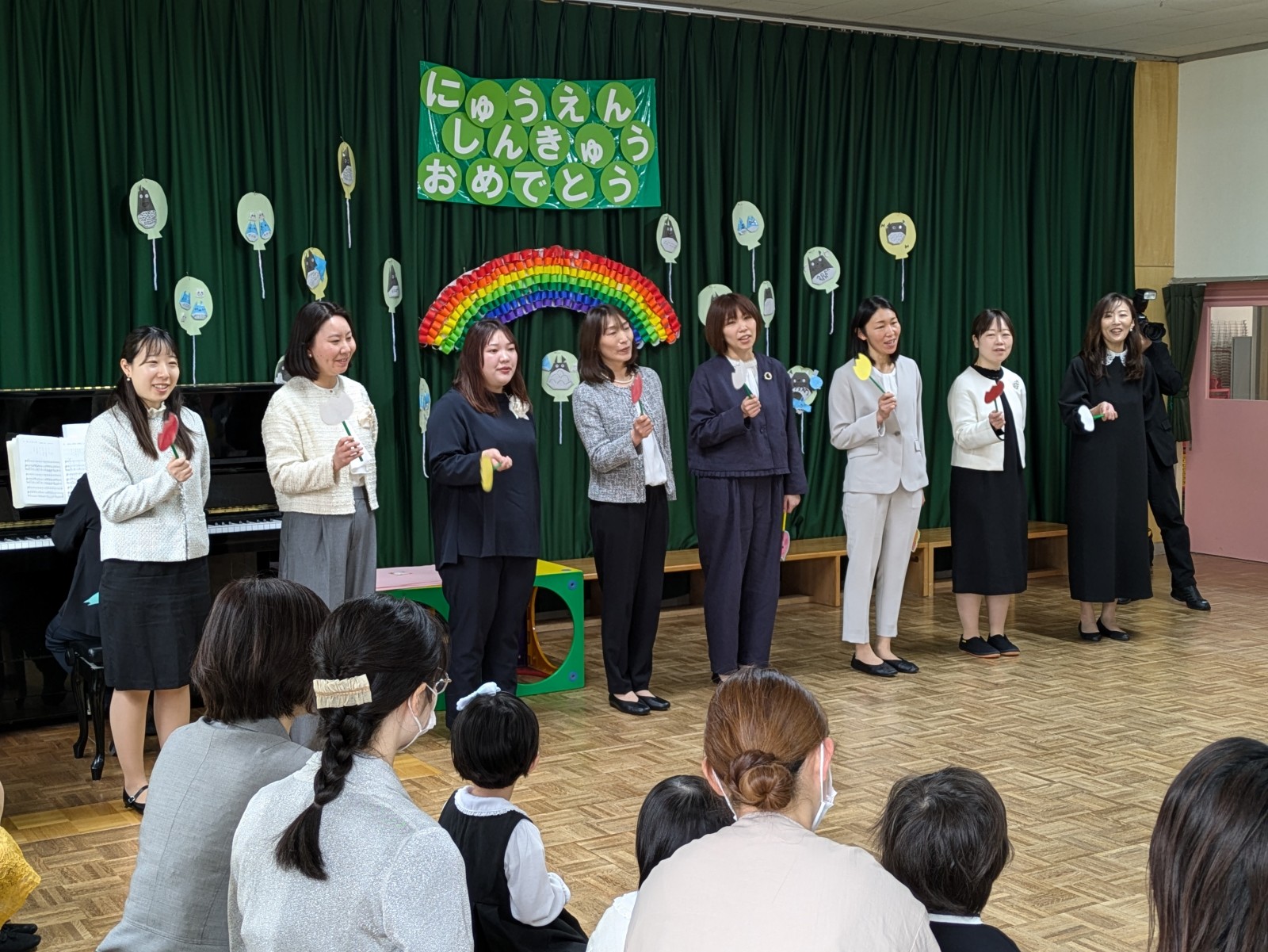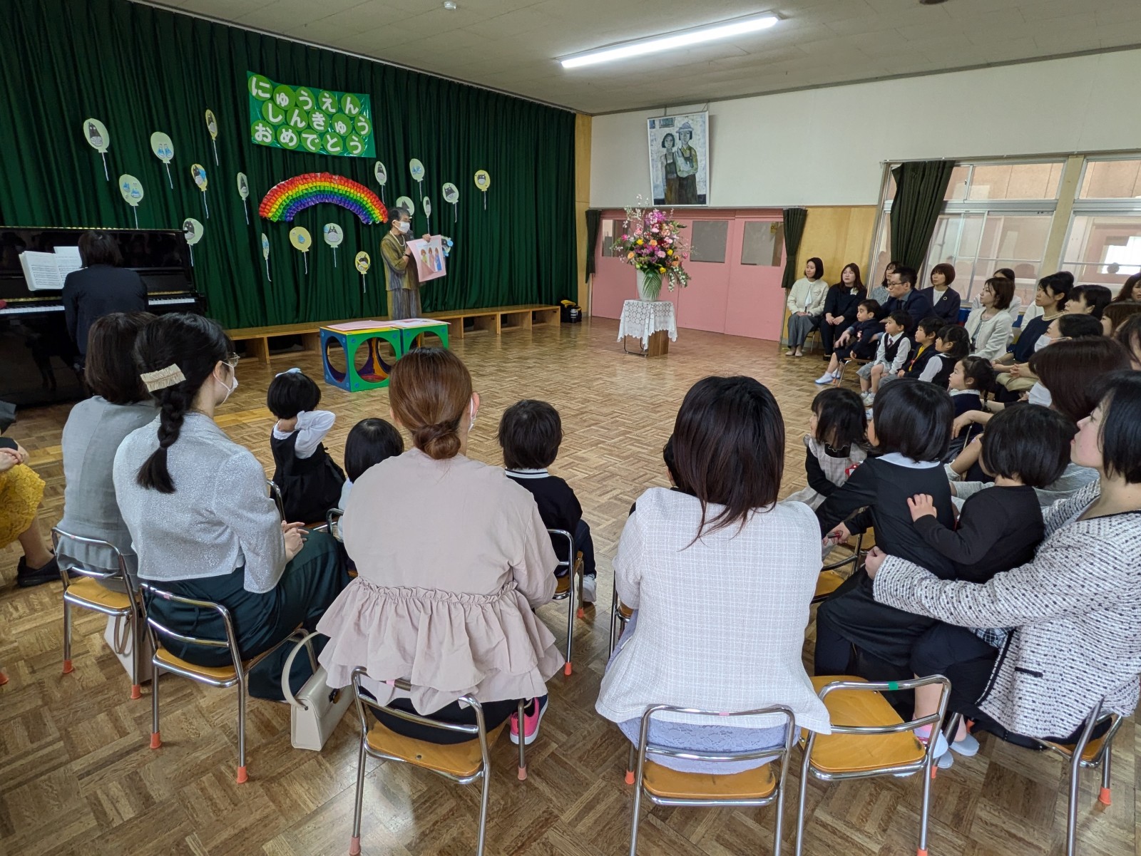 園長先生からお祝いの言葉をいただき、神様からの贈り物のお話をうかがい、先生方のご紹介がありました。