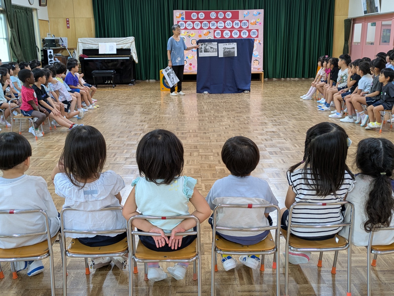 60年前に幼稚園が誕生したときに、この周りは全部田んぼだったことを写真を見せながら園長先生がお話してくださいました。