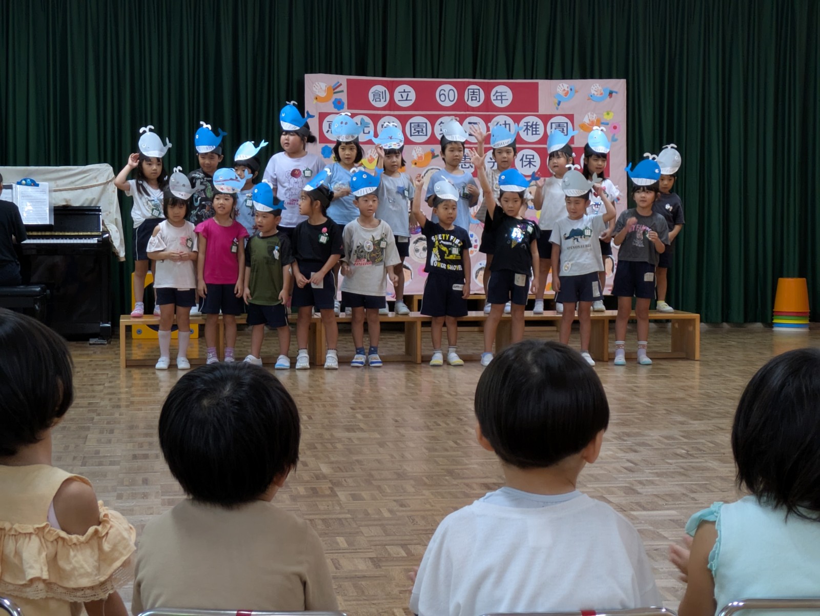 どの組も元気よく上手に歌って、大きな声で「幼稚園おめでとう!」と祝いました。
