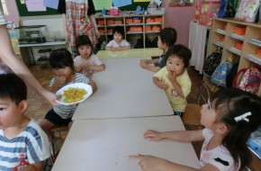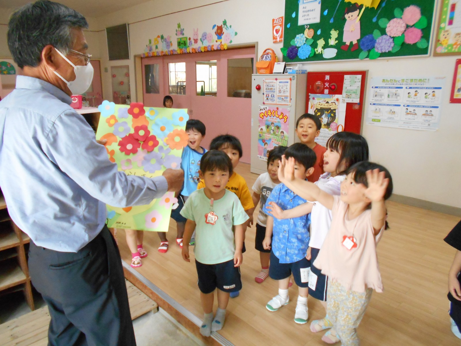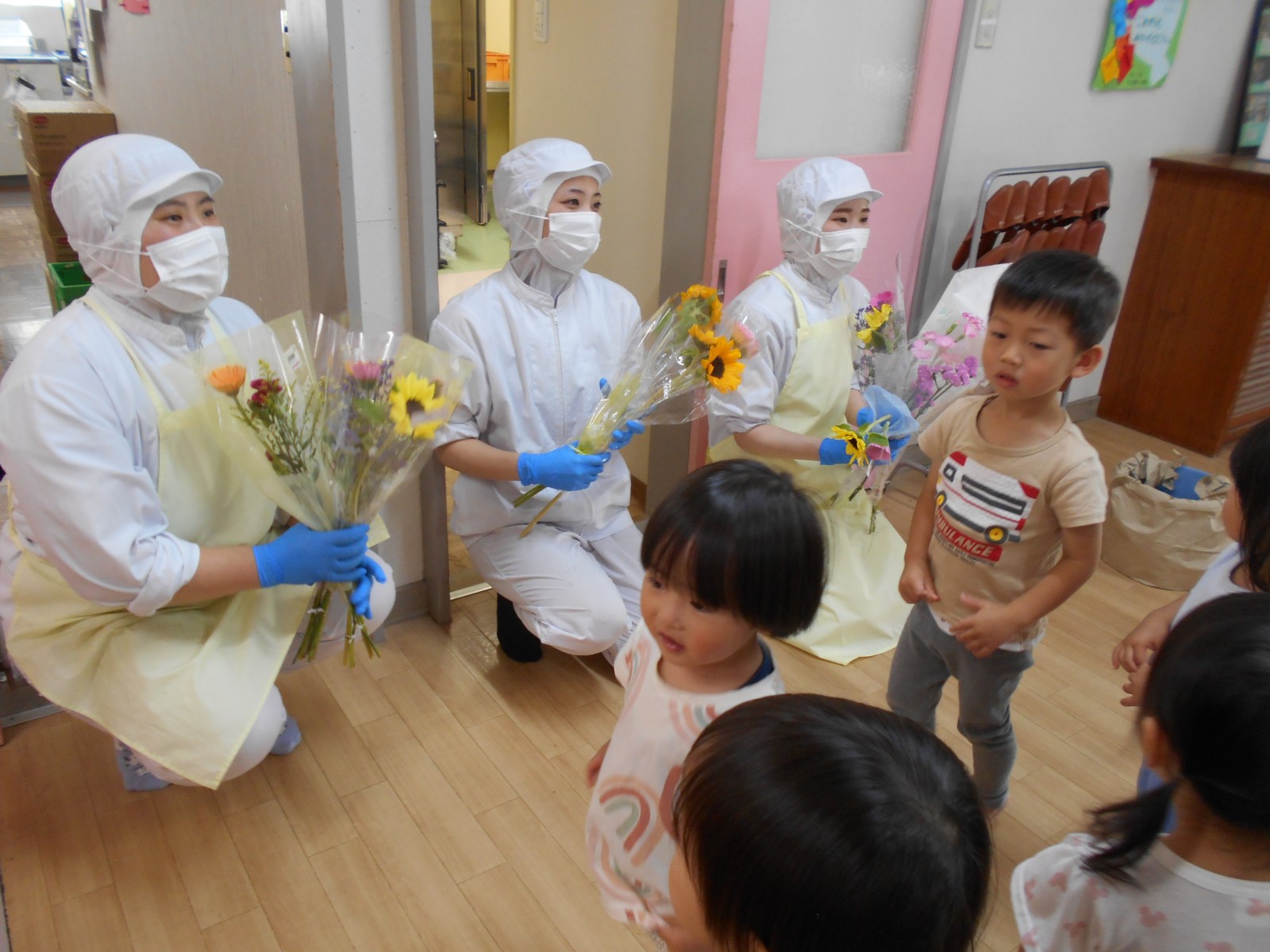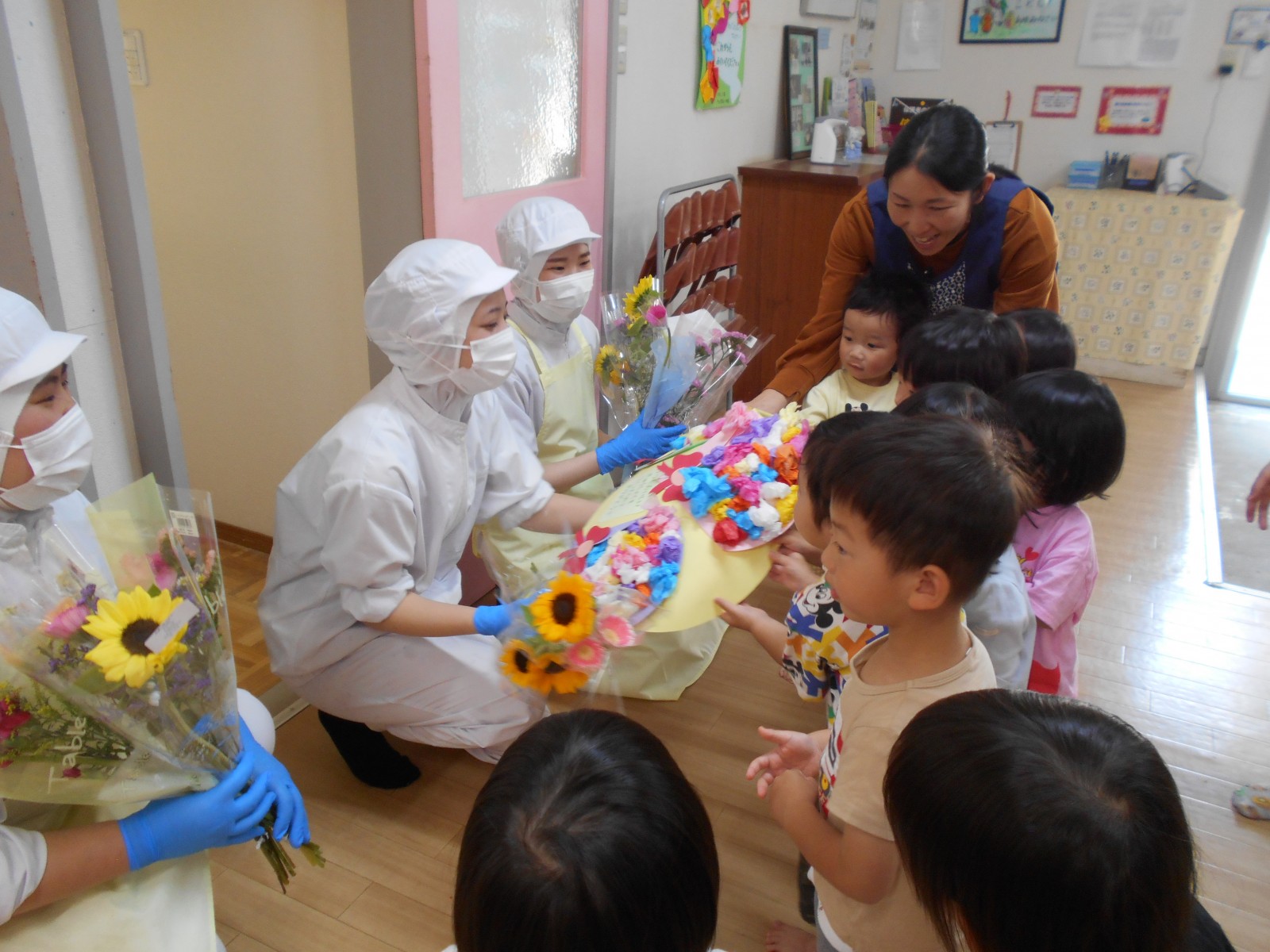 乳児部のお友達は、調理の方々へさしあげ、心を込めてお礼を伝えました。