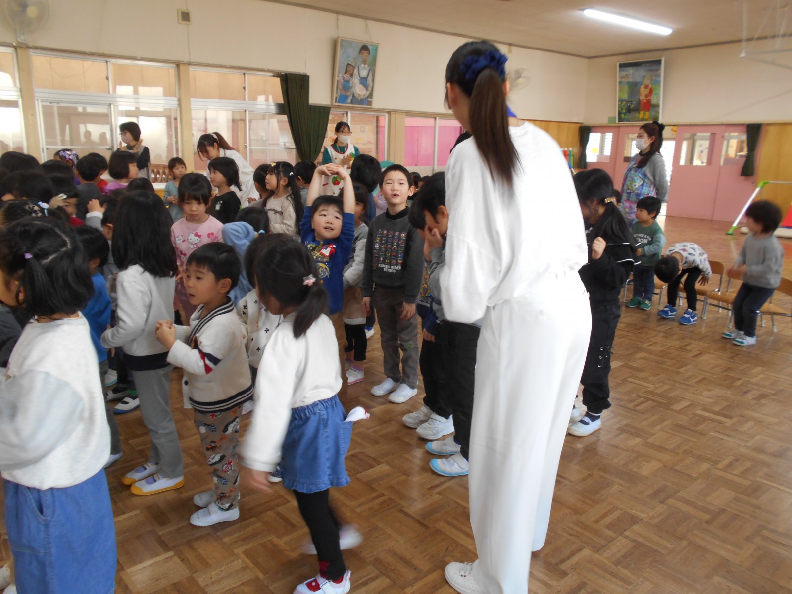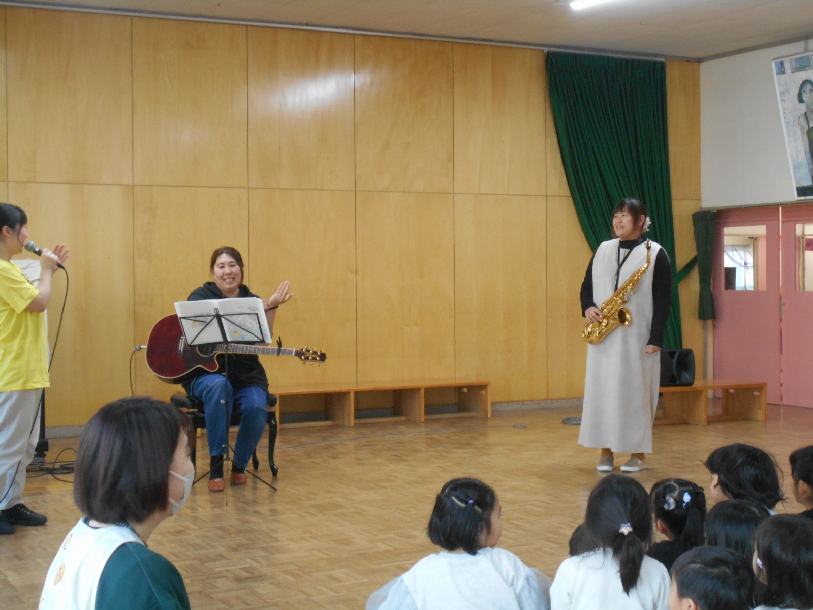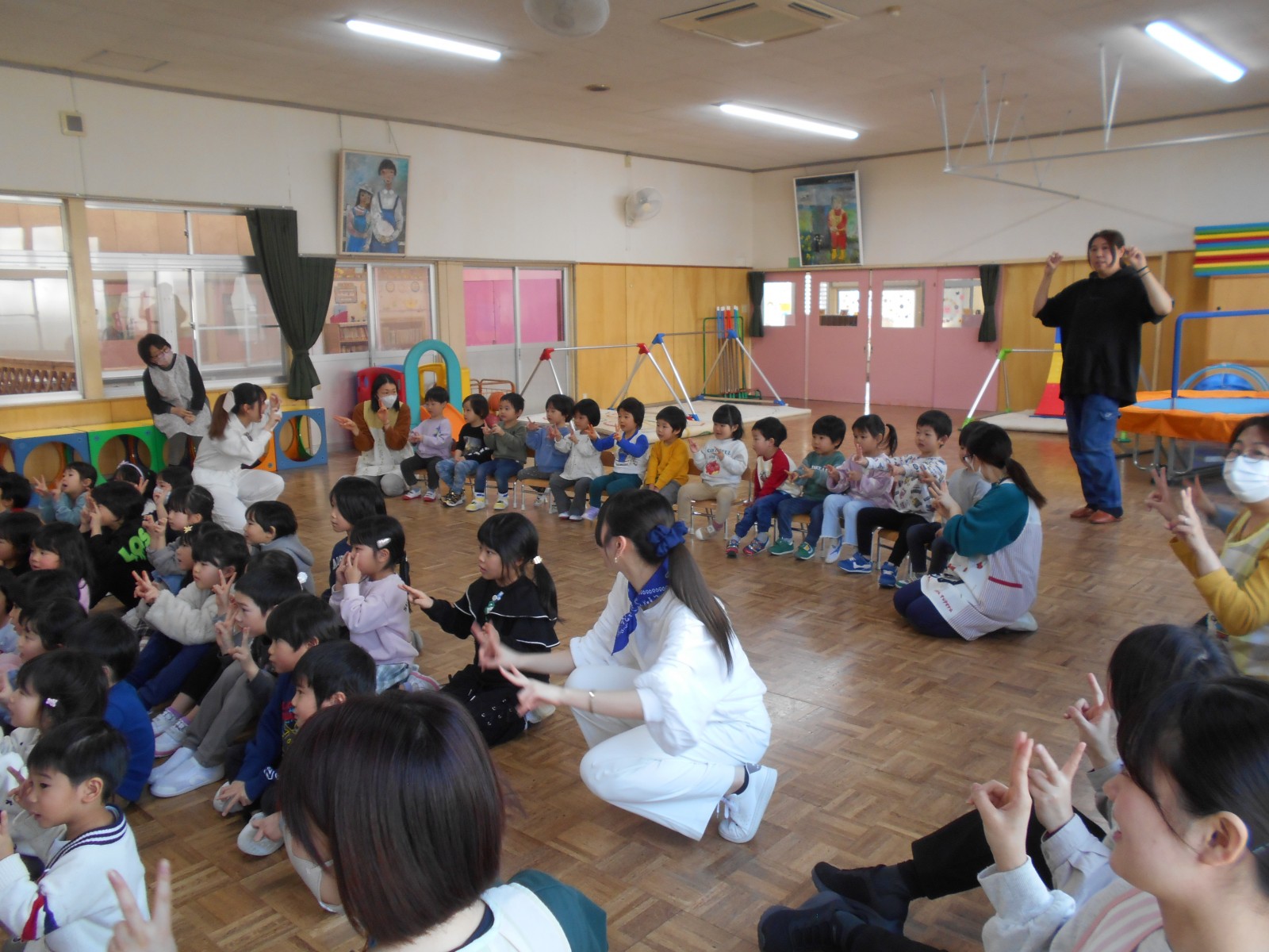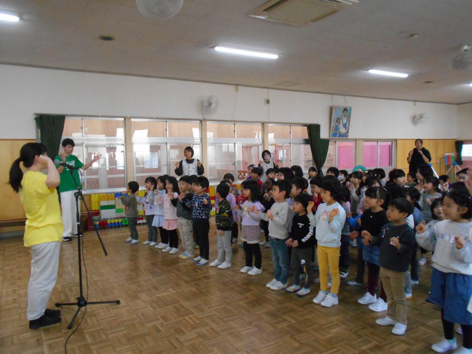 2月28日に音楽学校の学生さんたちが園に来てくれて、アニメの歌やキレキレのダンスをたくさん披露してくれました。