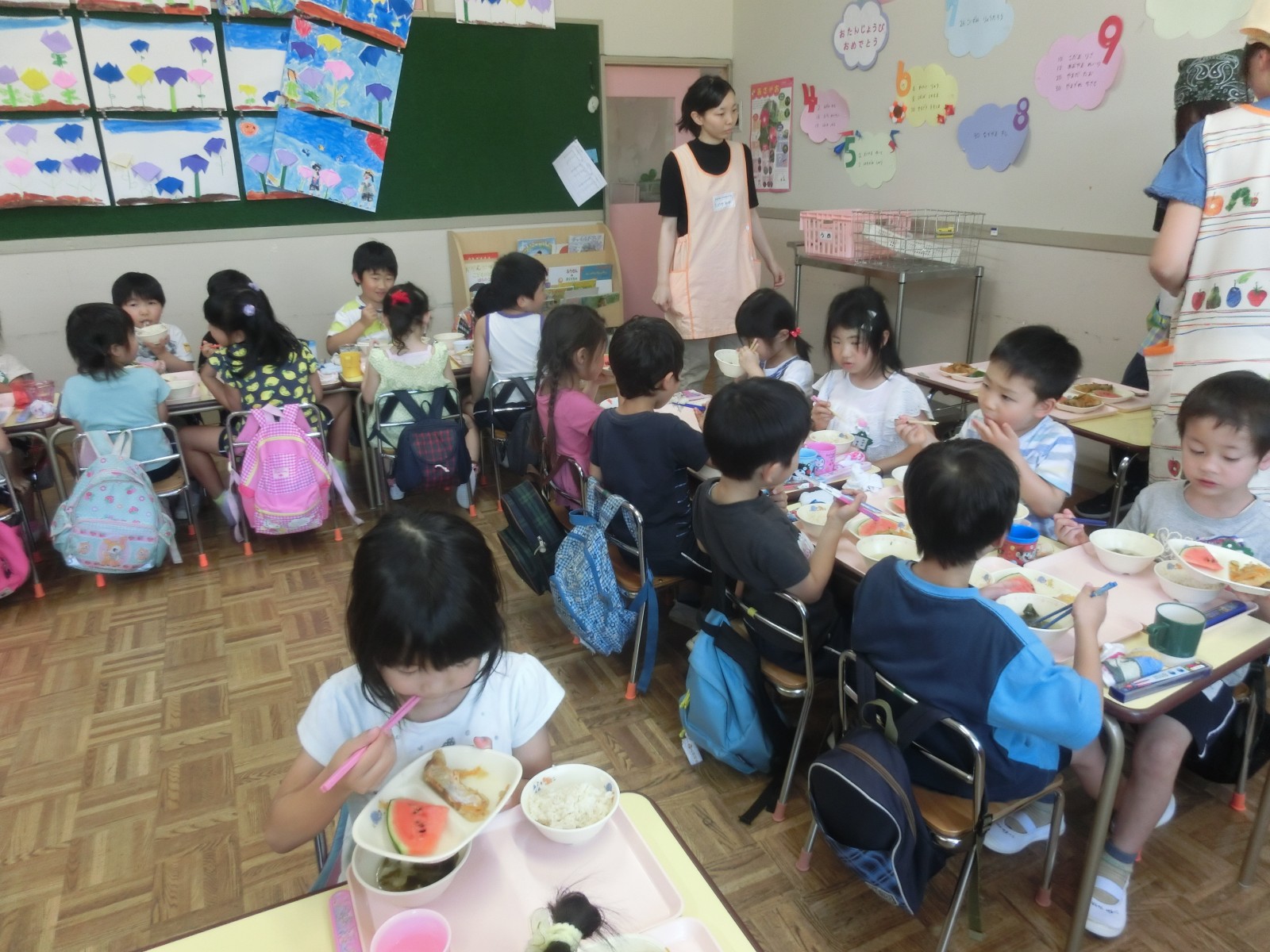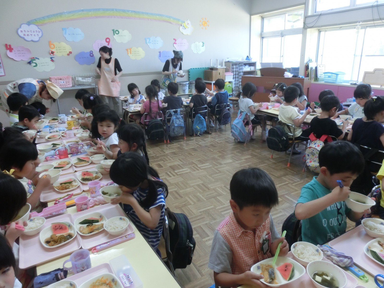 その後、うめ組さんは交流会の一貫として、第1園第2園のうめ組さんで、給食を一緒にいただきました。これから、1年間続きます。よろしくね!