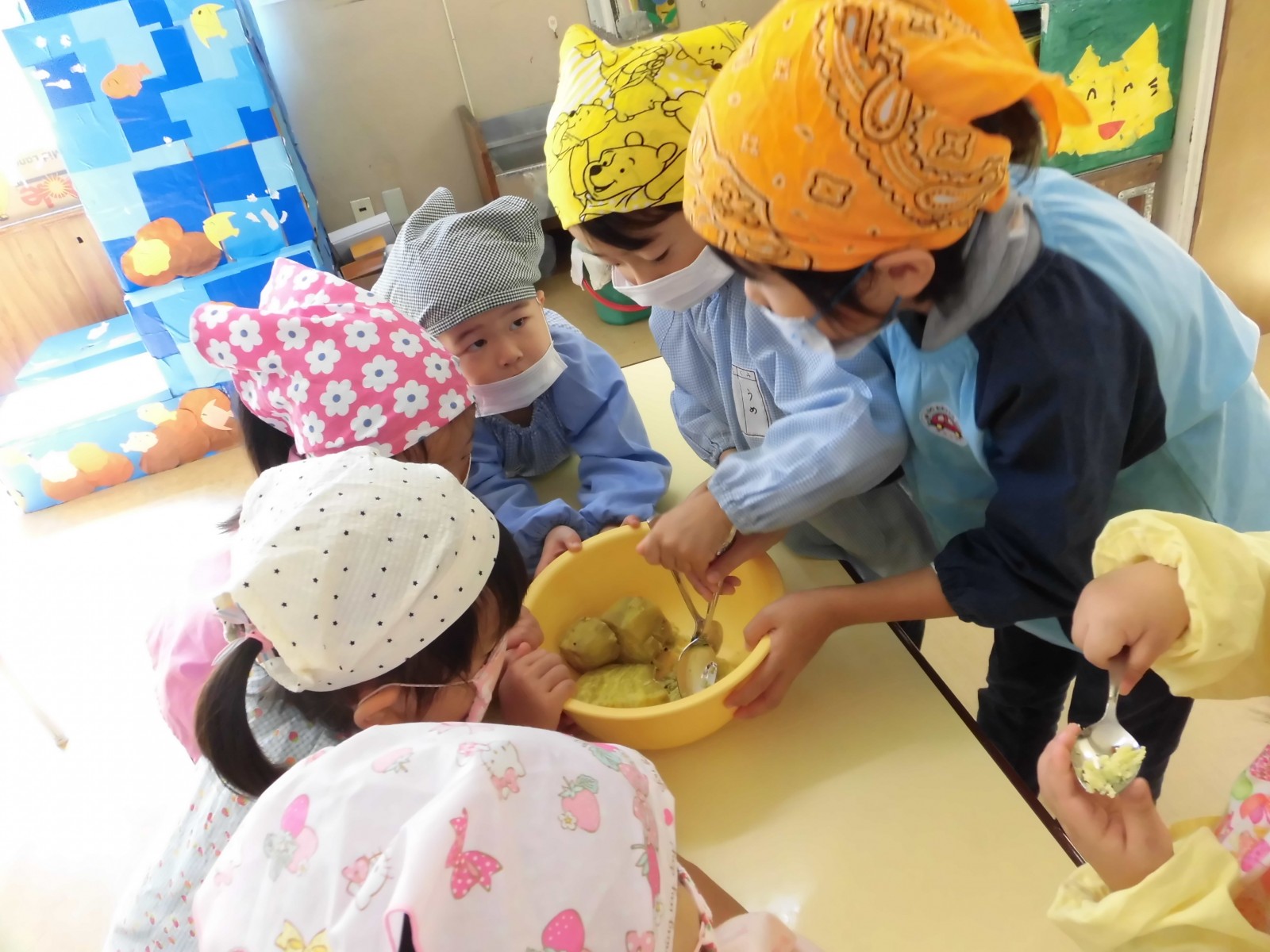 第1園「スイートポテト」クッキングのようす