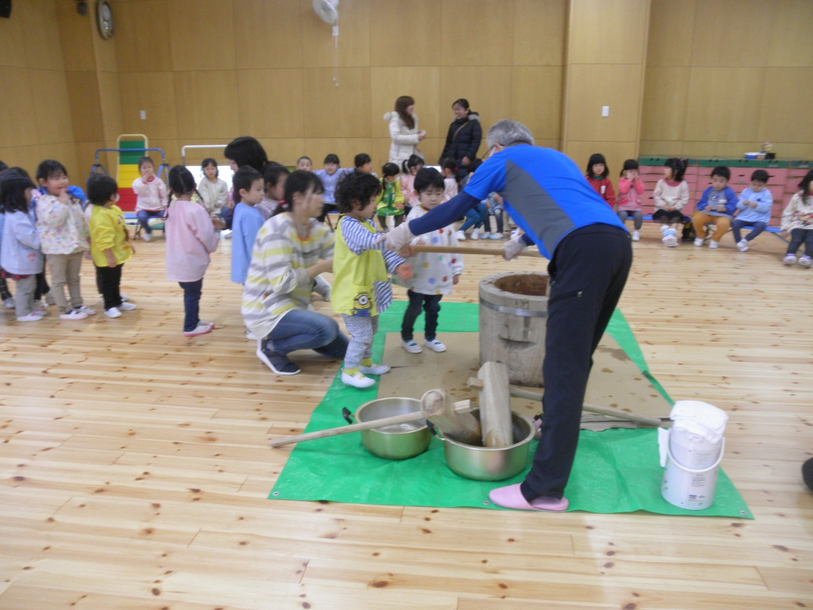 第1幼稚園でも恒例のお餅つき会が開かれました