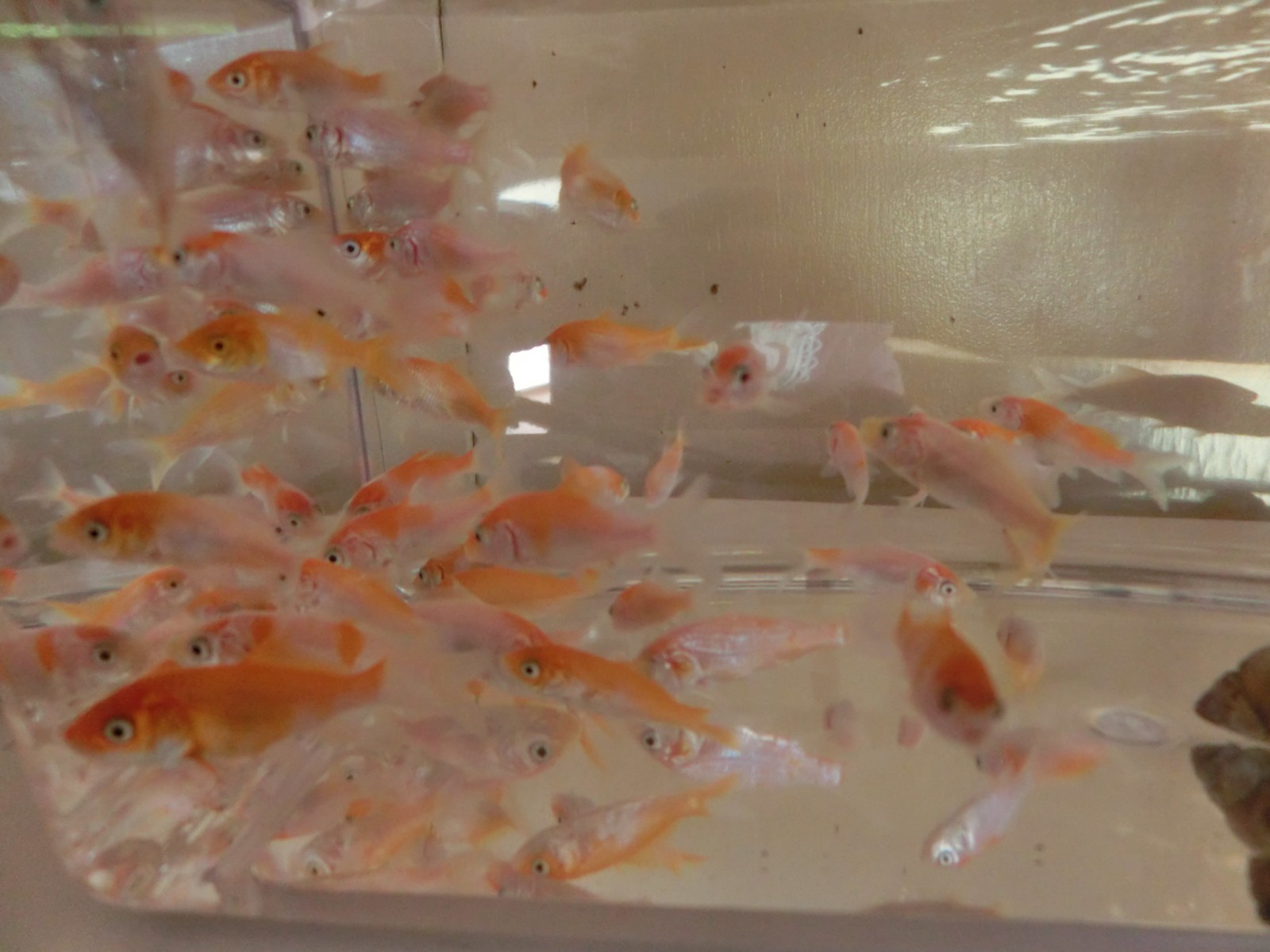 やまこし村でボランテイアをしている先生が選別もれ?の錦鯉をもらってきてくれました。「紅白」という種類だそうで、なかなかかわいいものです。