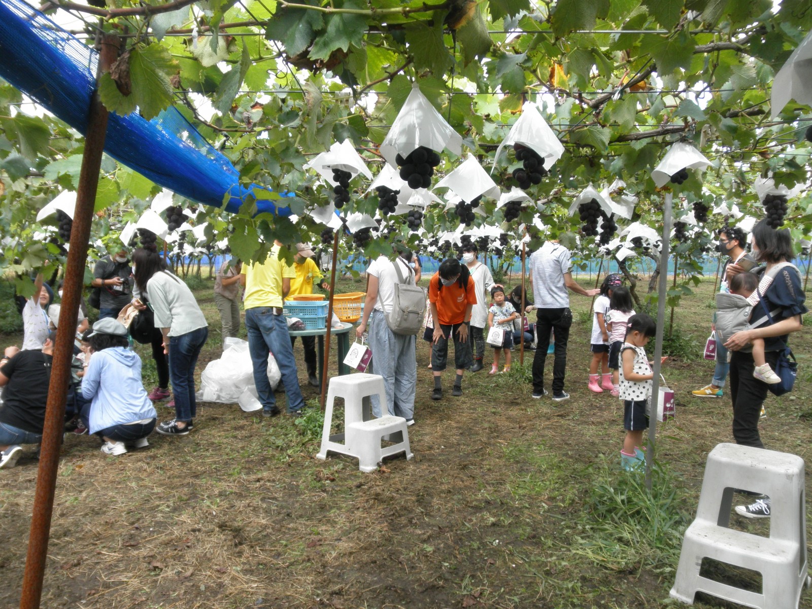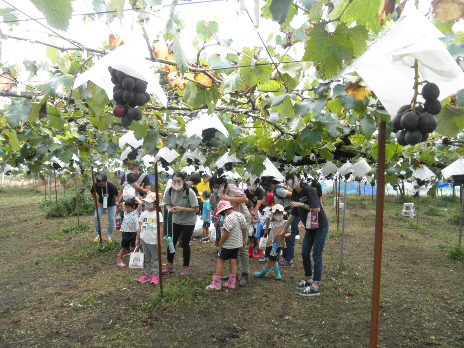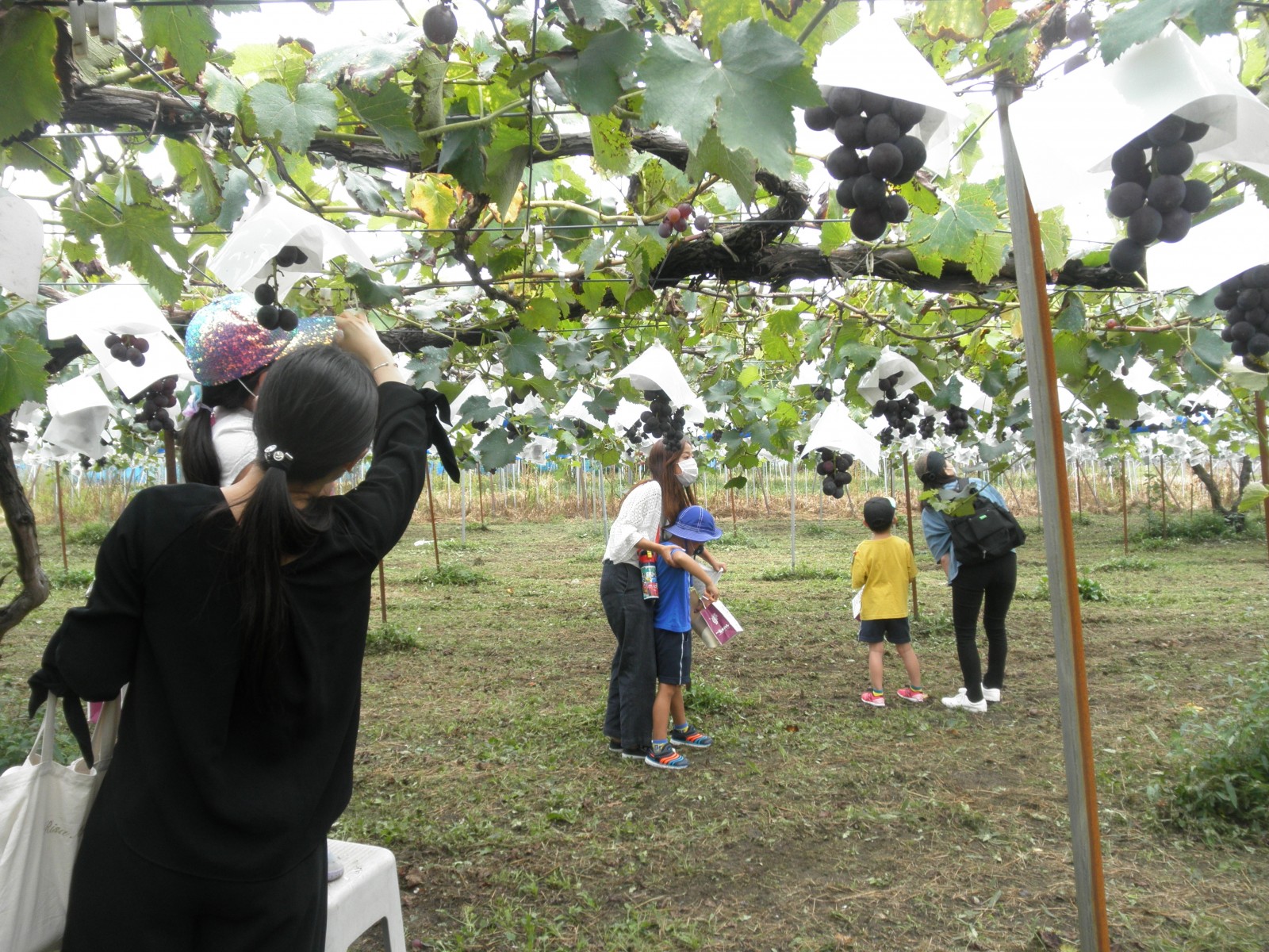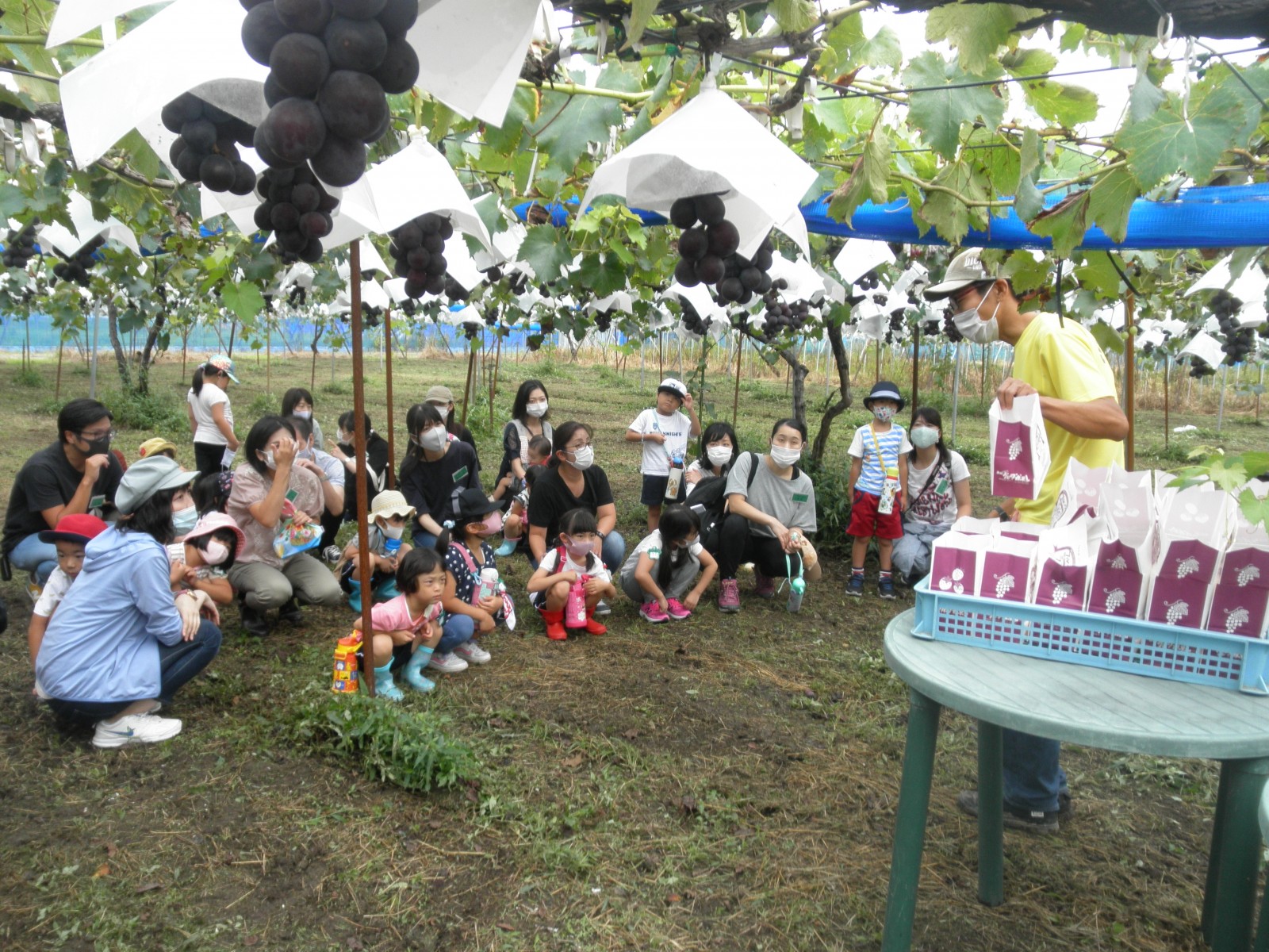 雨が心配されていましたが、無事お天気に恵まれ、白根のグレープガーデンに年長さんの親子で遠足にいってきました。行事が1学期に出来ずに実りの収穫の時期に合わせての再計画したものです。天候のせいでブドウの房が例年より小さく残念でしたがお店の方が少し増やして袋にいれてくださったので助かりました。ご配慮ありがとうござい。