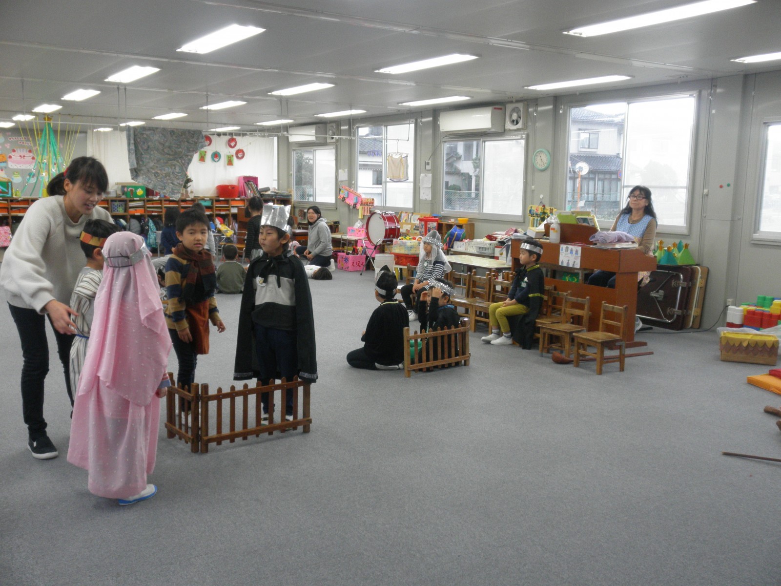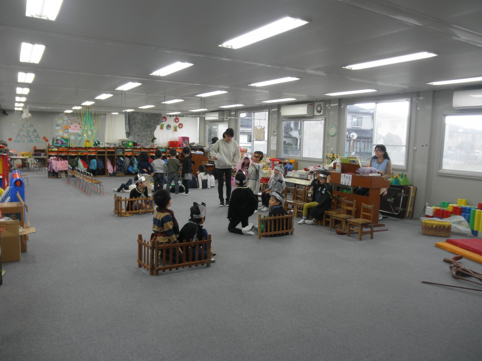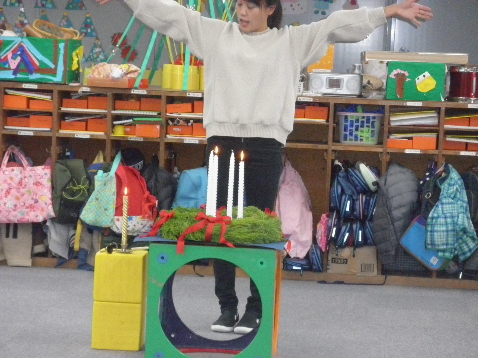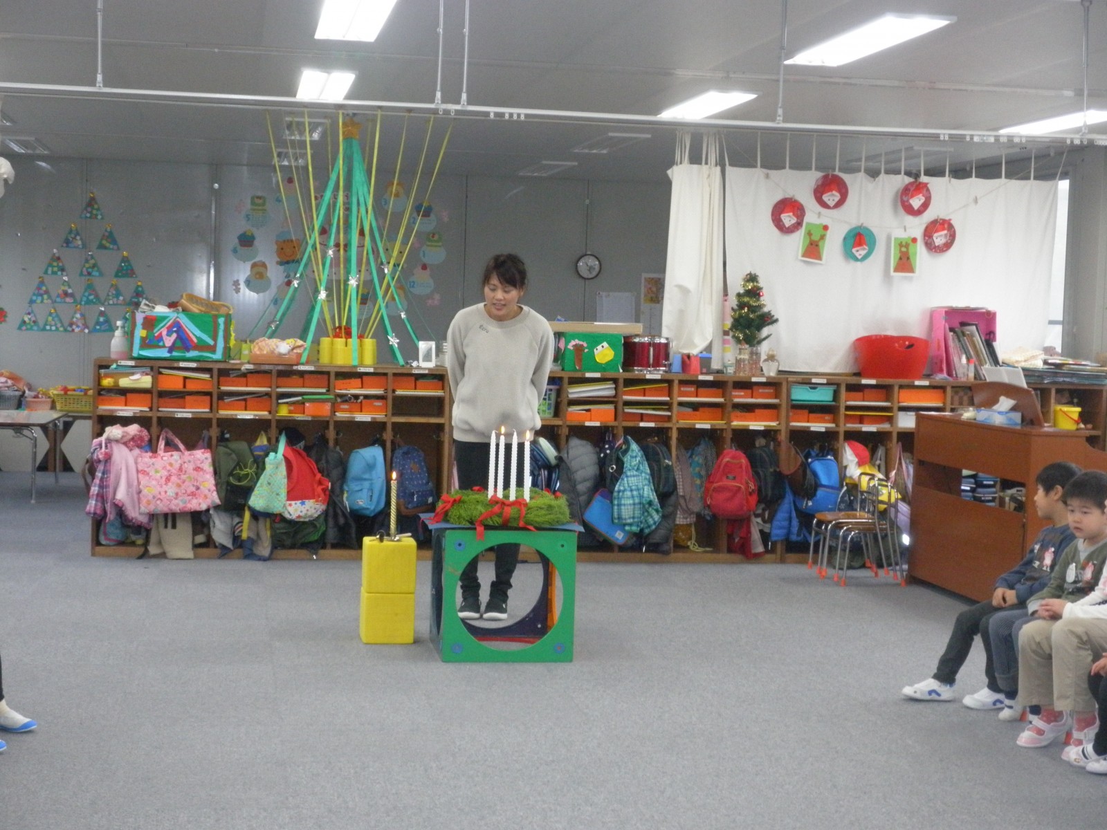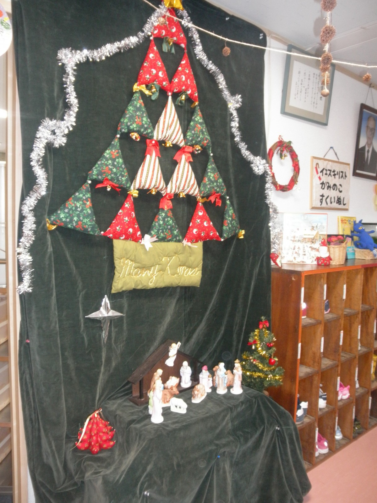 第1園の仮園舎でのクリスマスを迎える準備