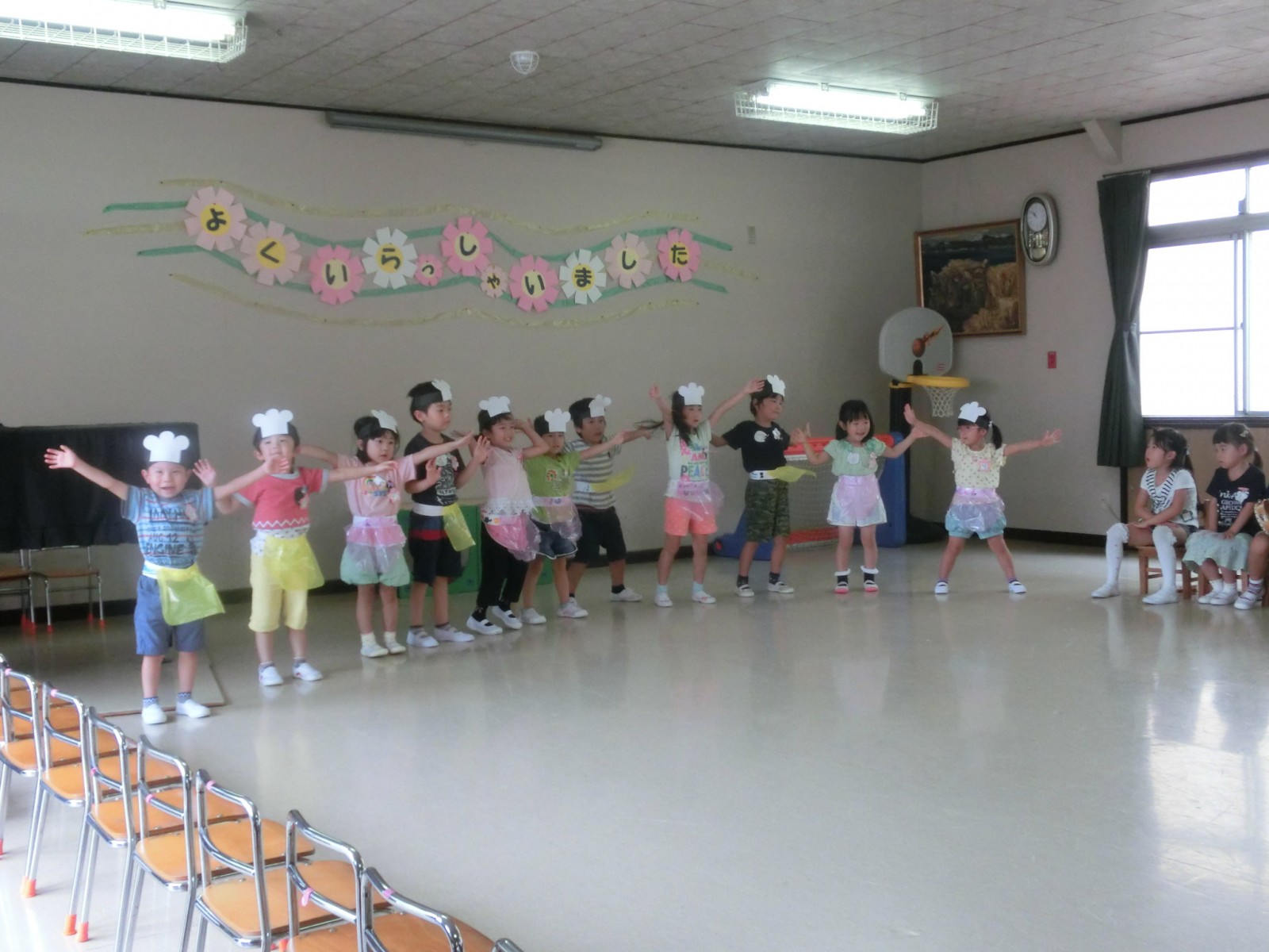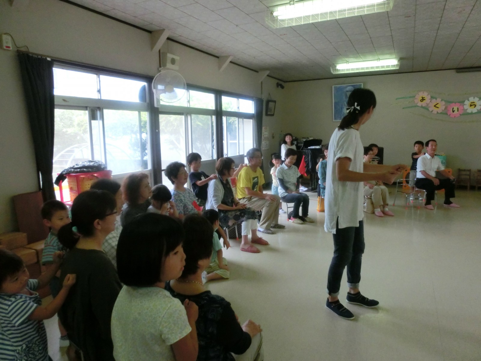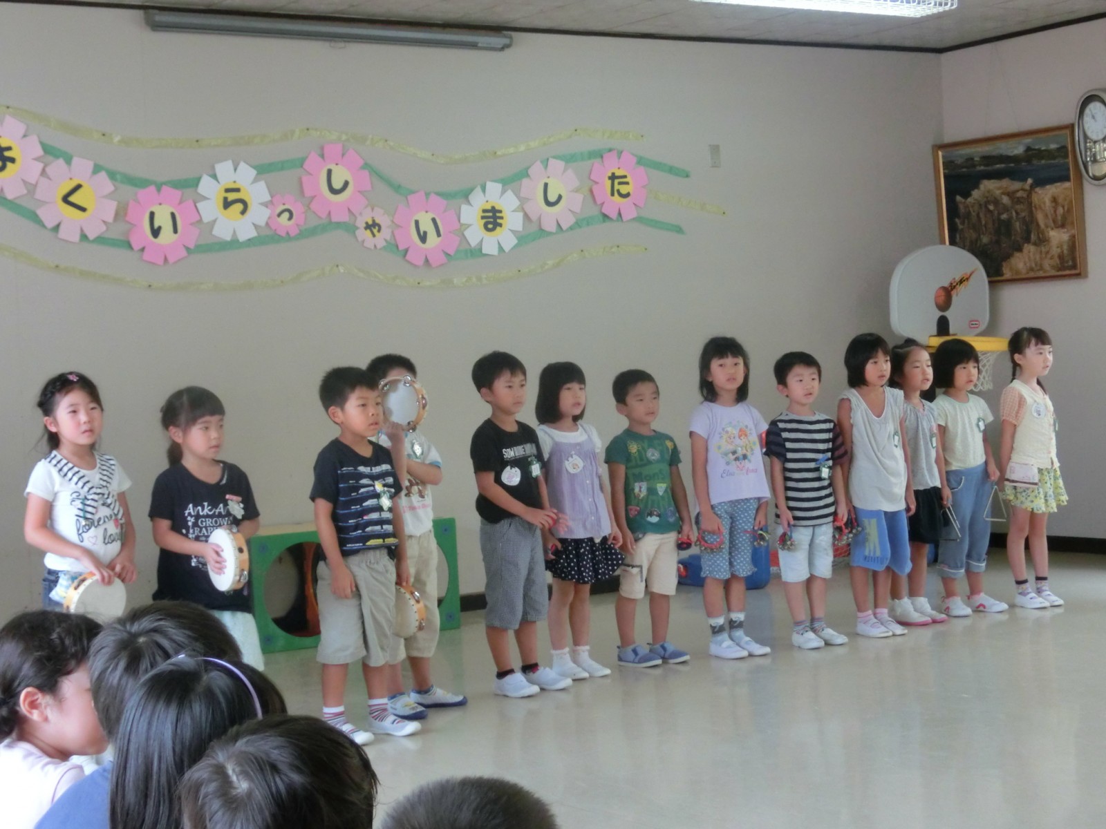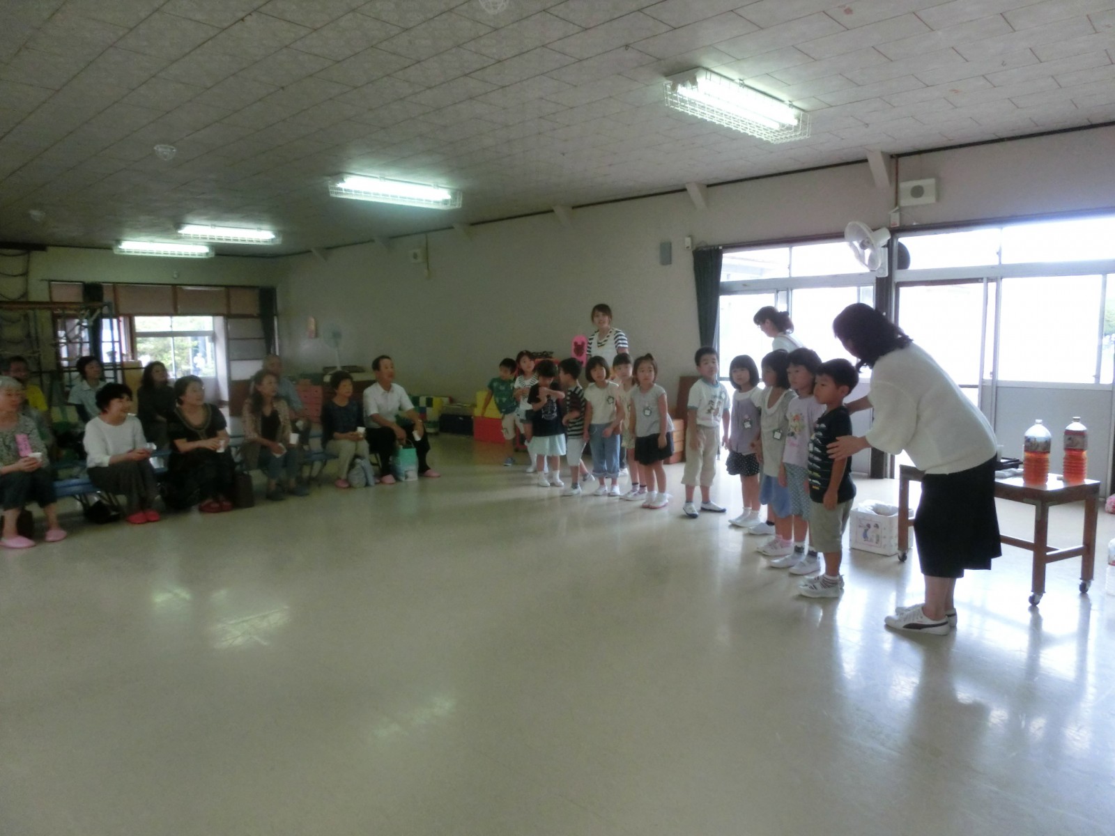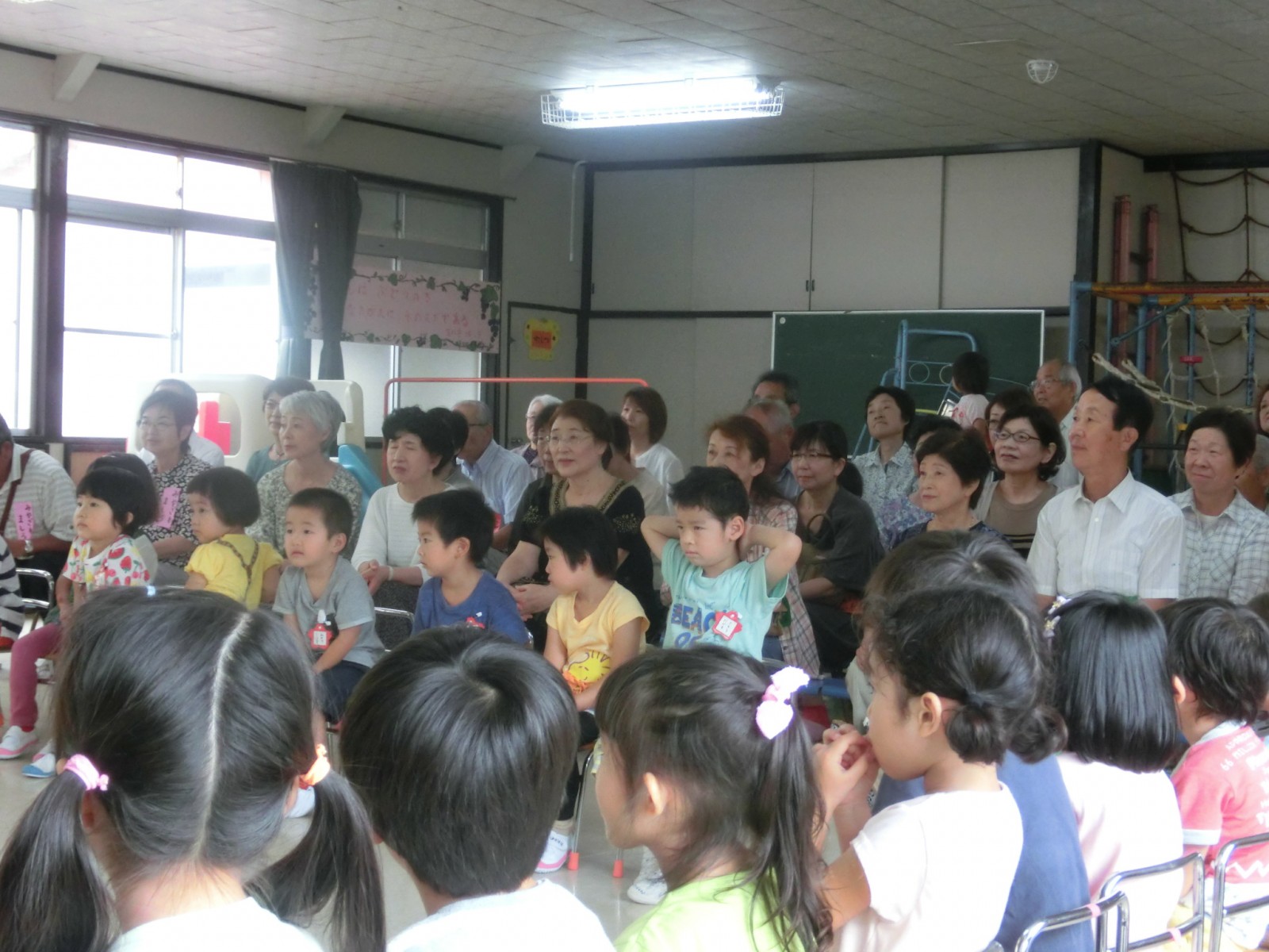 9月13日にみんなのおじいいちゃんおばあちゃん方をお招きして、みんなの合奏や歌、ダンスをおみせしました。