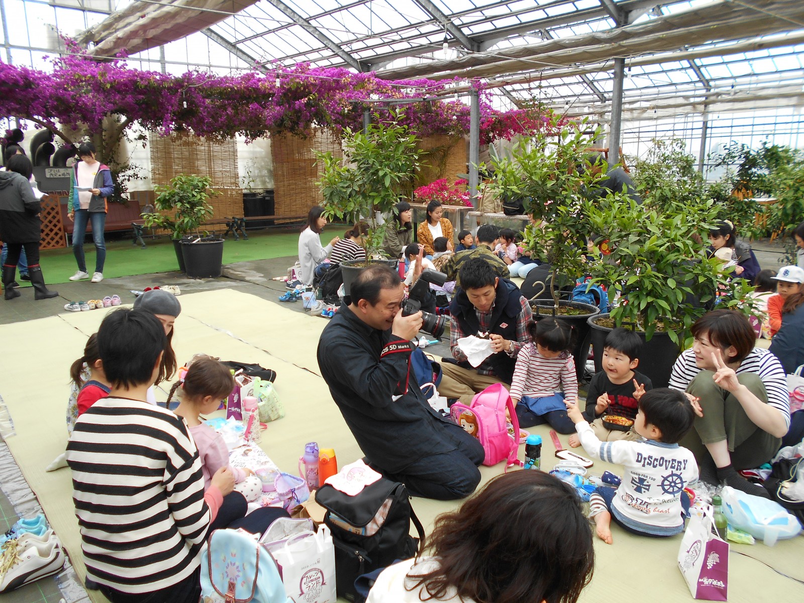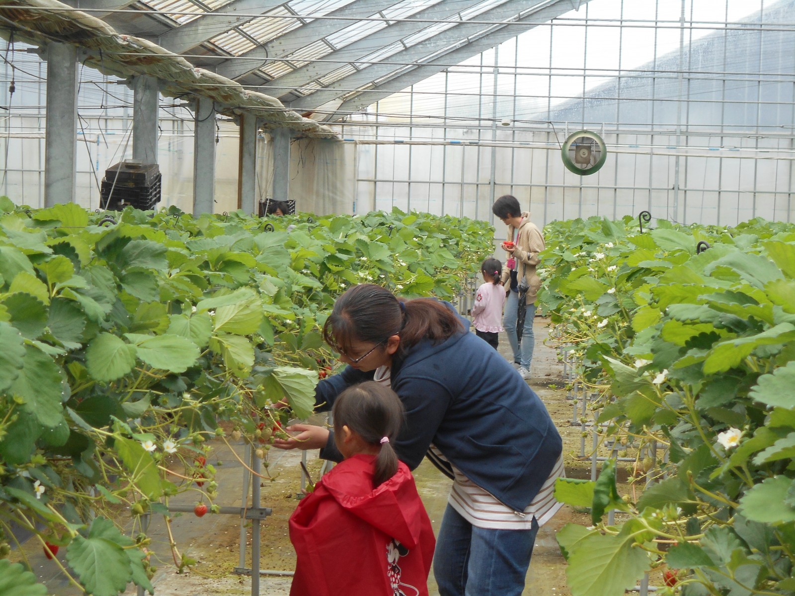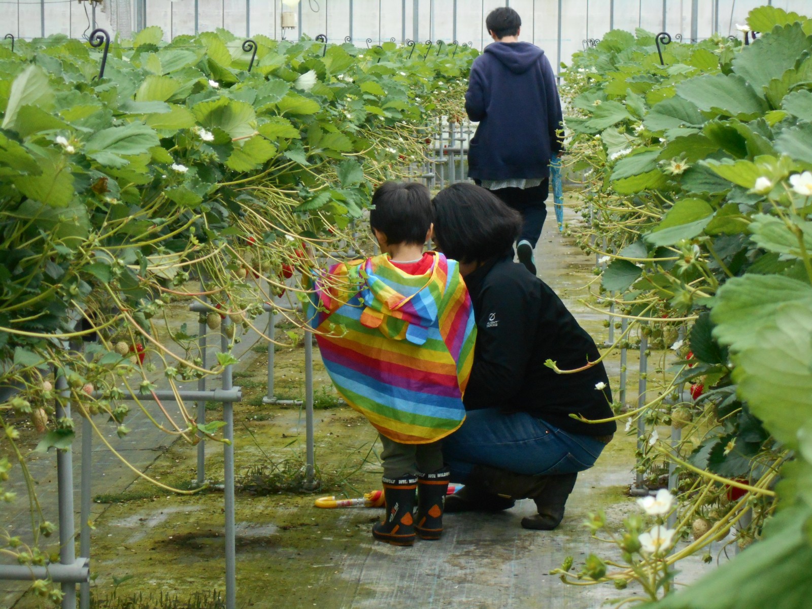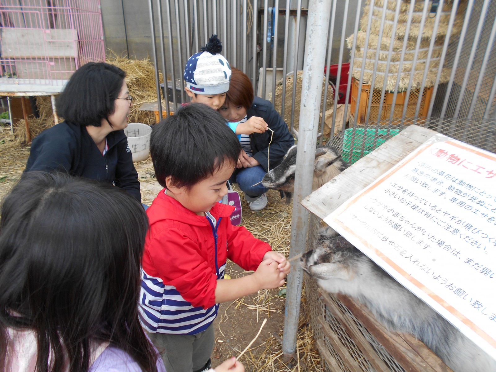 雨の降る肌寒い一日となりましたが、貸切状態の中たっぷりイチゴ畑でいちご摘みをし、その後、動物たちと遊んだり、小さい築山をのぼったり降りたり、息の荒いやぎさんに餌をやったりとそれぞれがいろんな遊びを楽しみました。