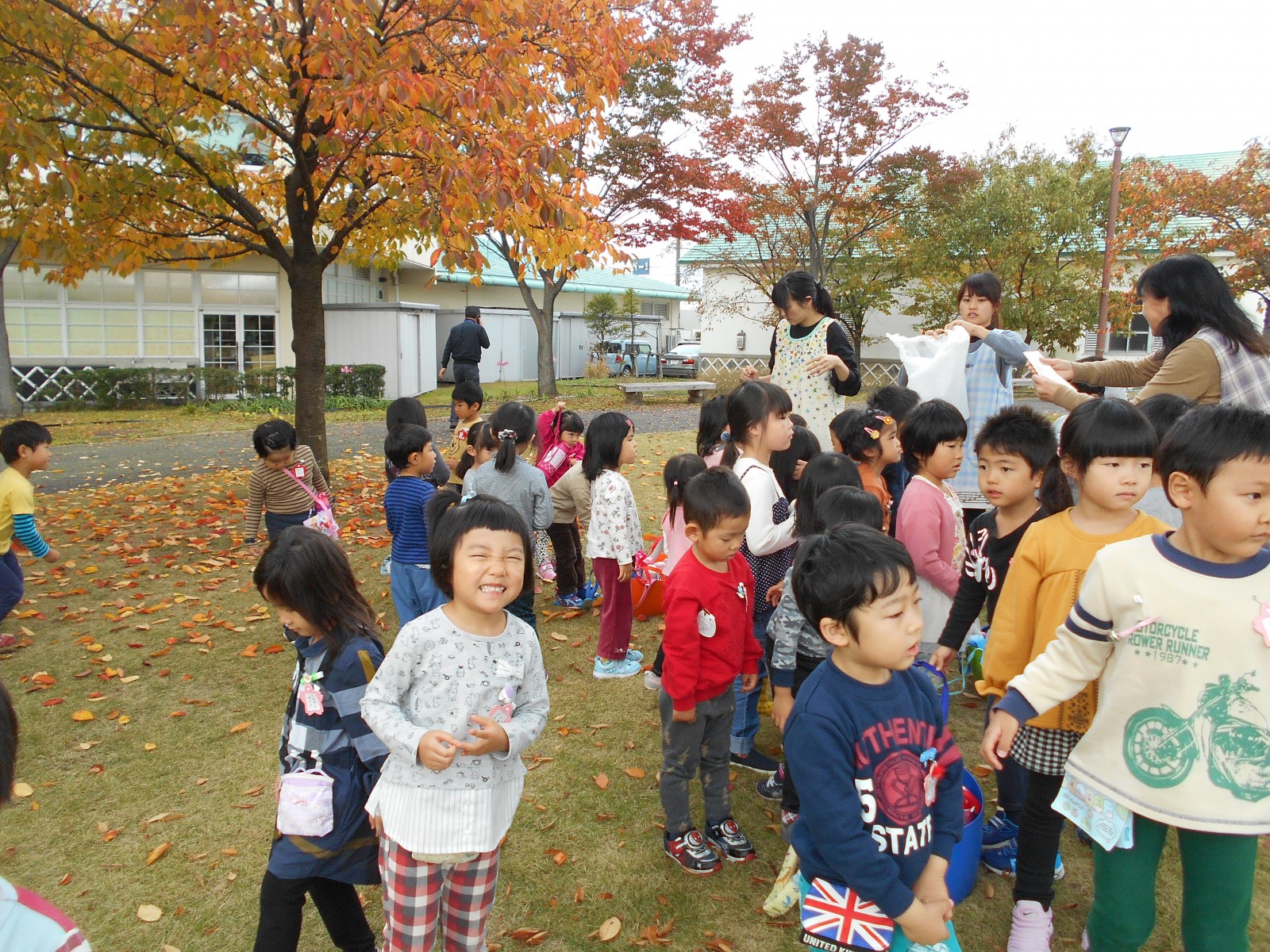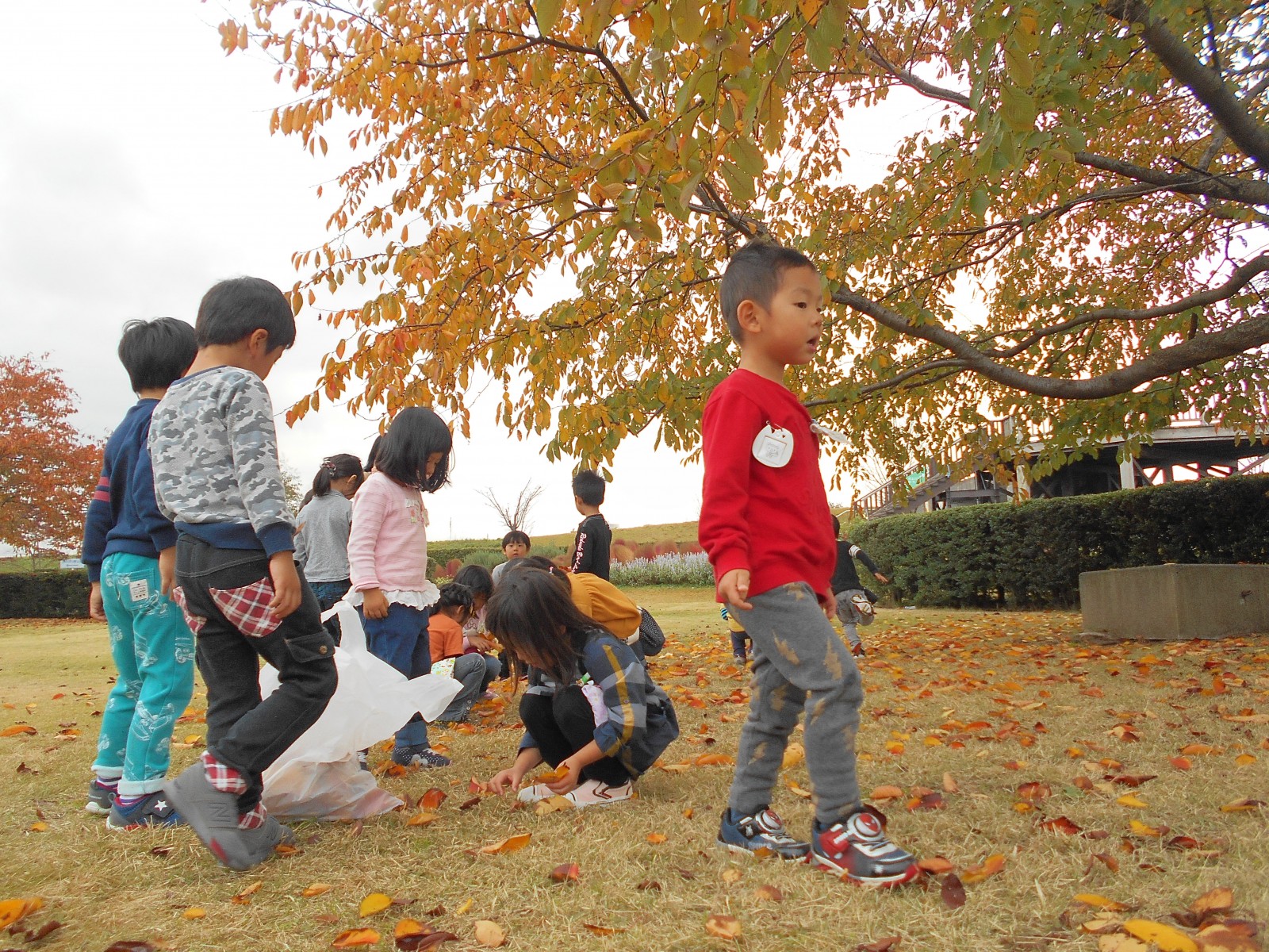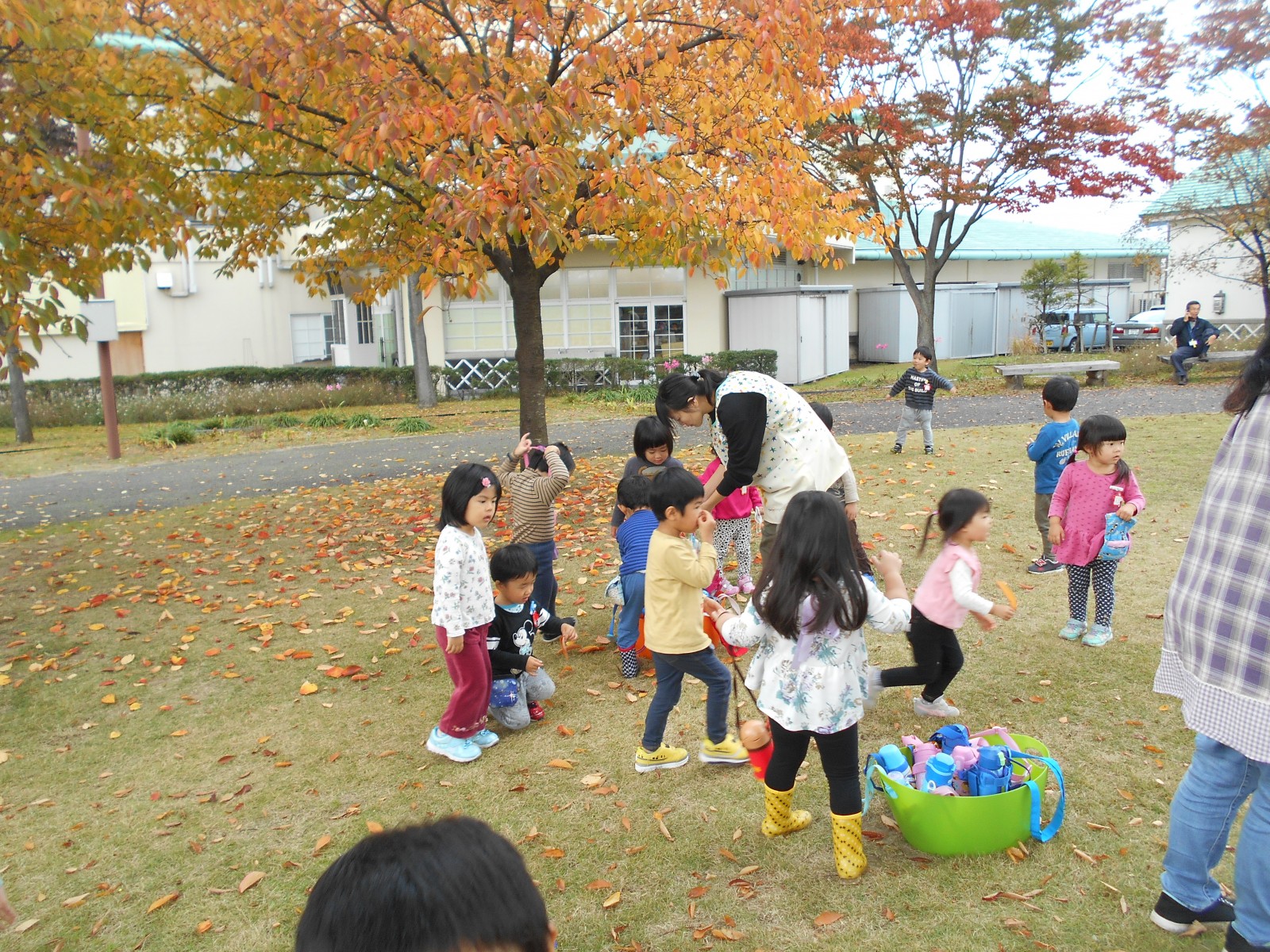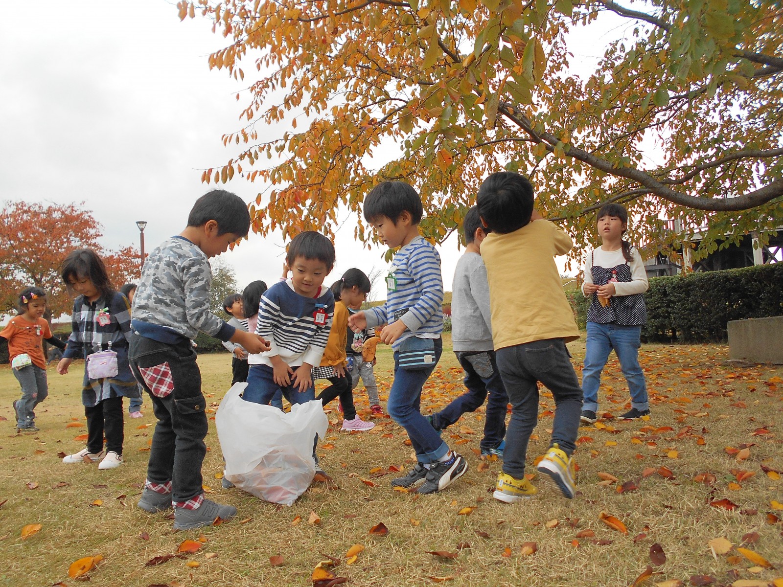 やきいも会の前にふるさと村に落ち葉拾いを兼ねて遊びに行きました。いいお天気で葉っぱやいろんな自然物とたくさん遊んできました。