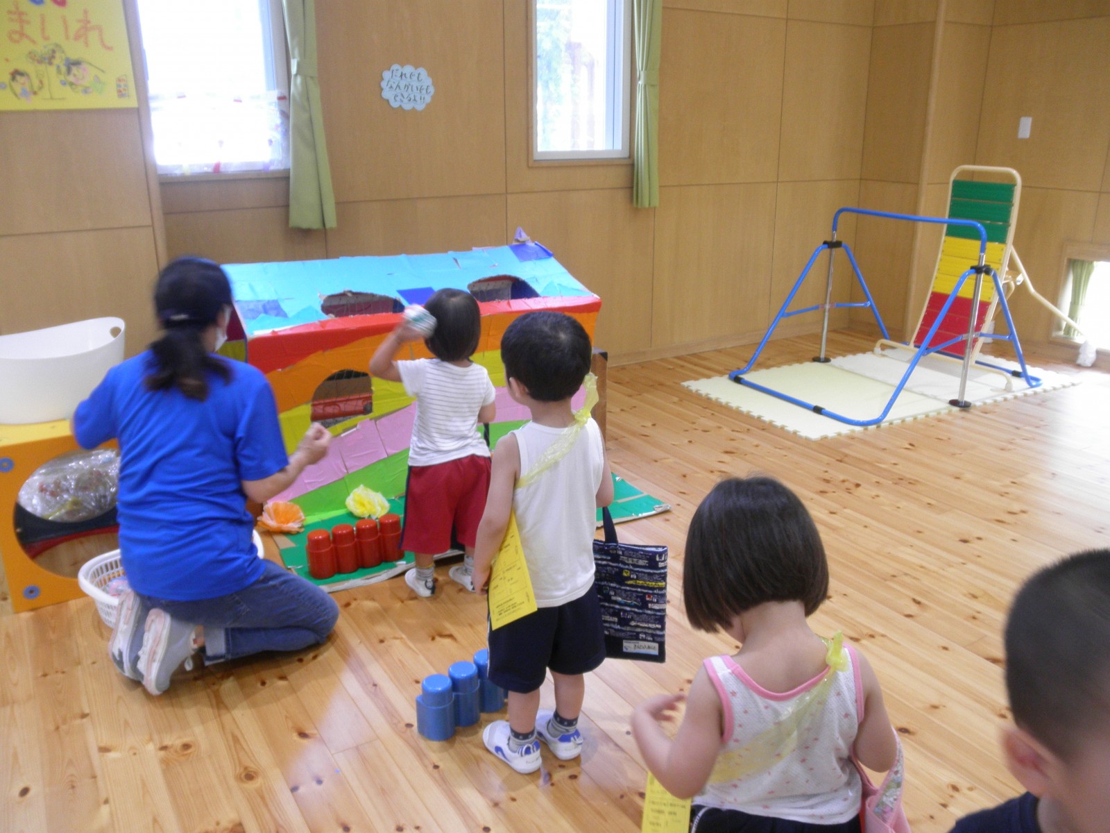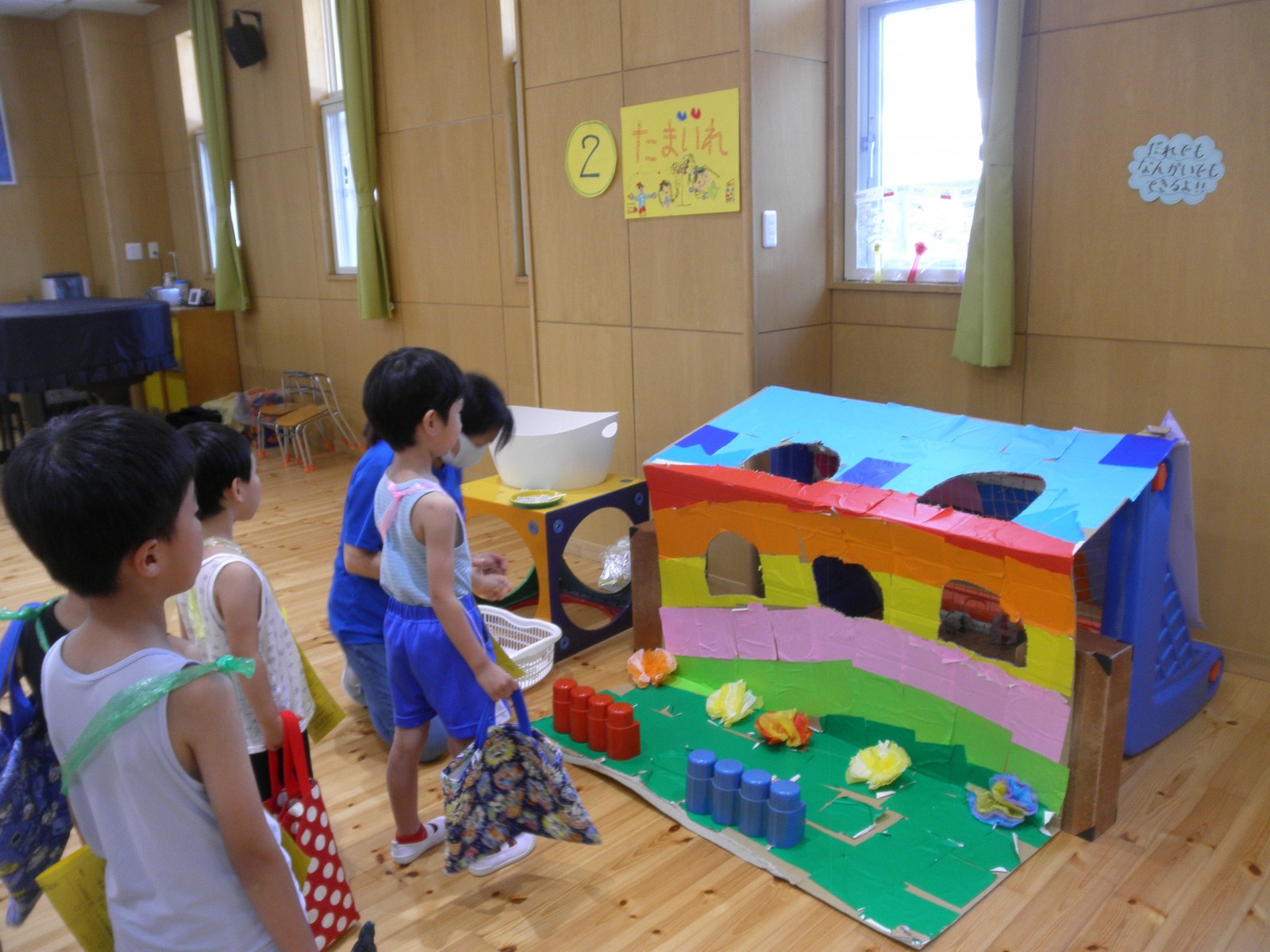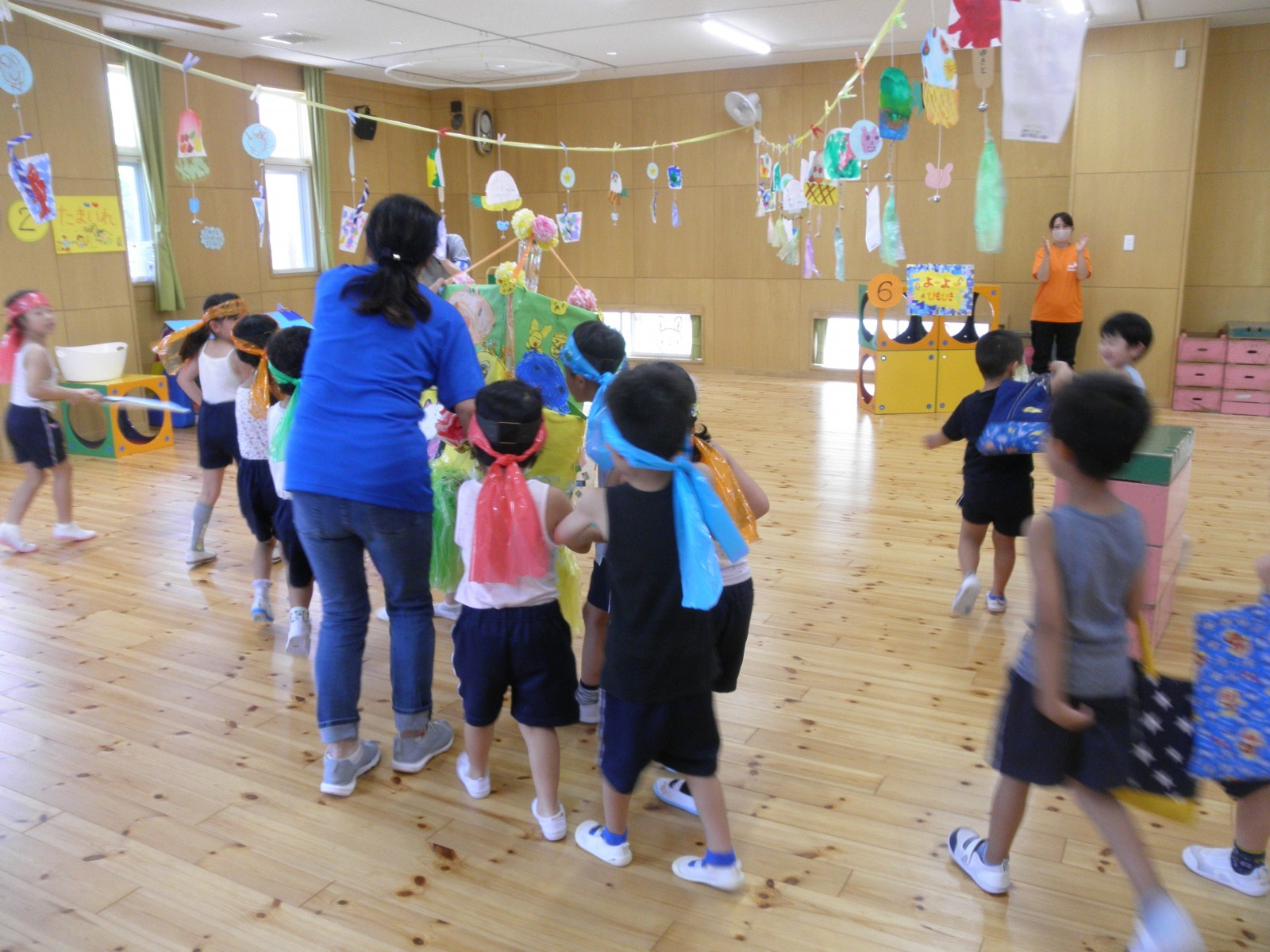 最後にはうめ組さんが手作りはちまきを着けて、自分達で作ったおみこしをわっしょいわっしょいと担いで登場!