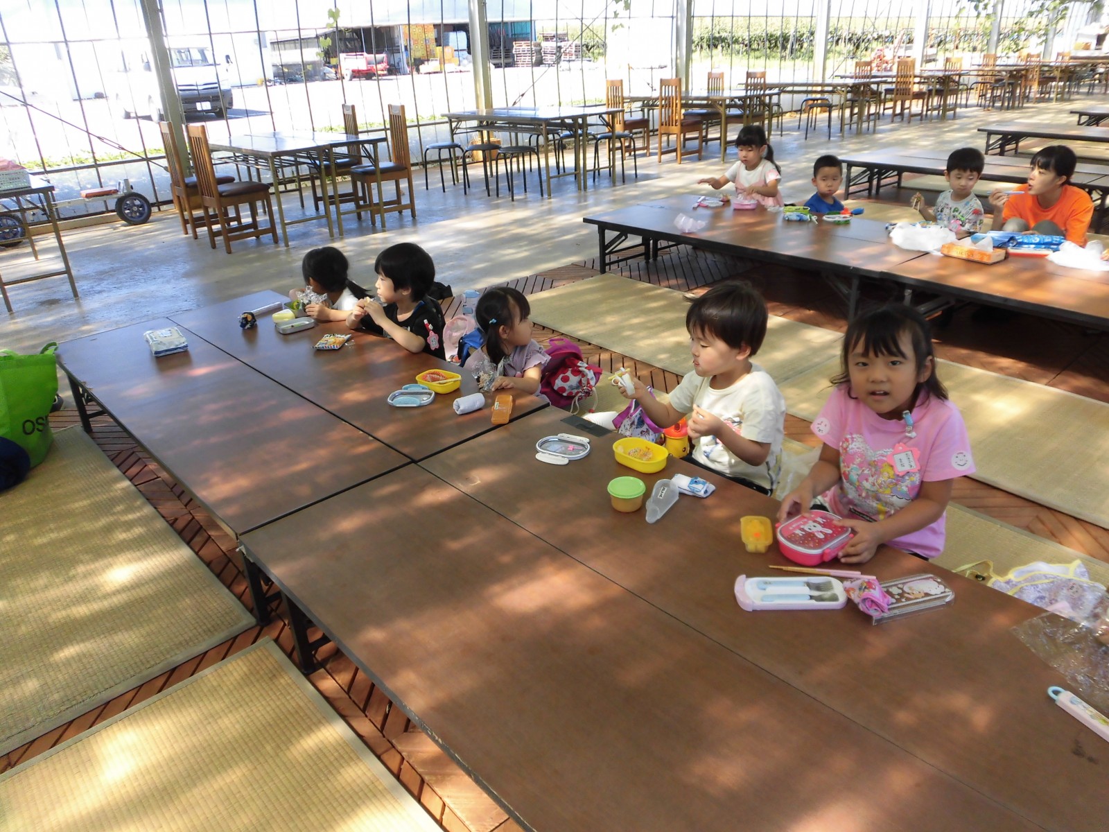 その後、ばら組さんは梨畑を見ながらお弁当を食べて帰ってきました。おやつタイムも楽しみましたよ。