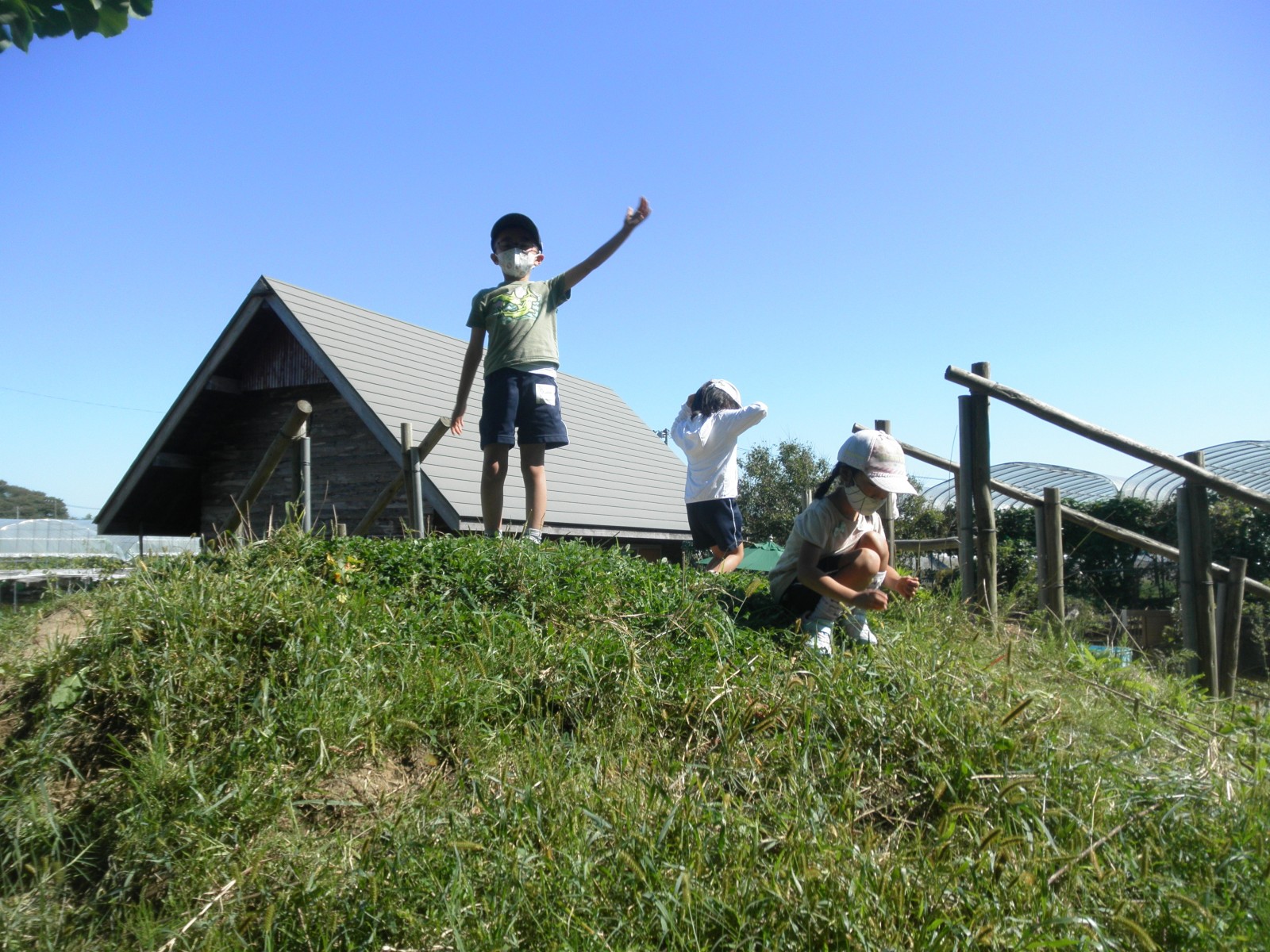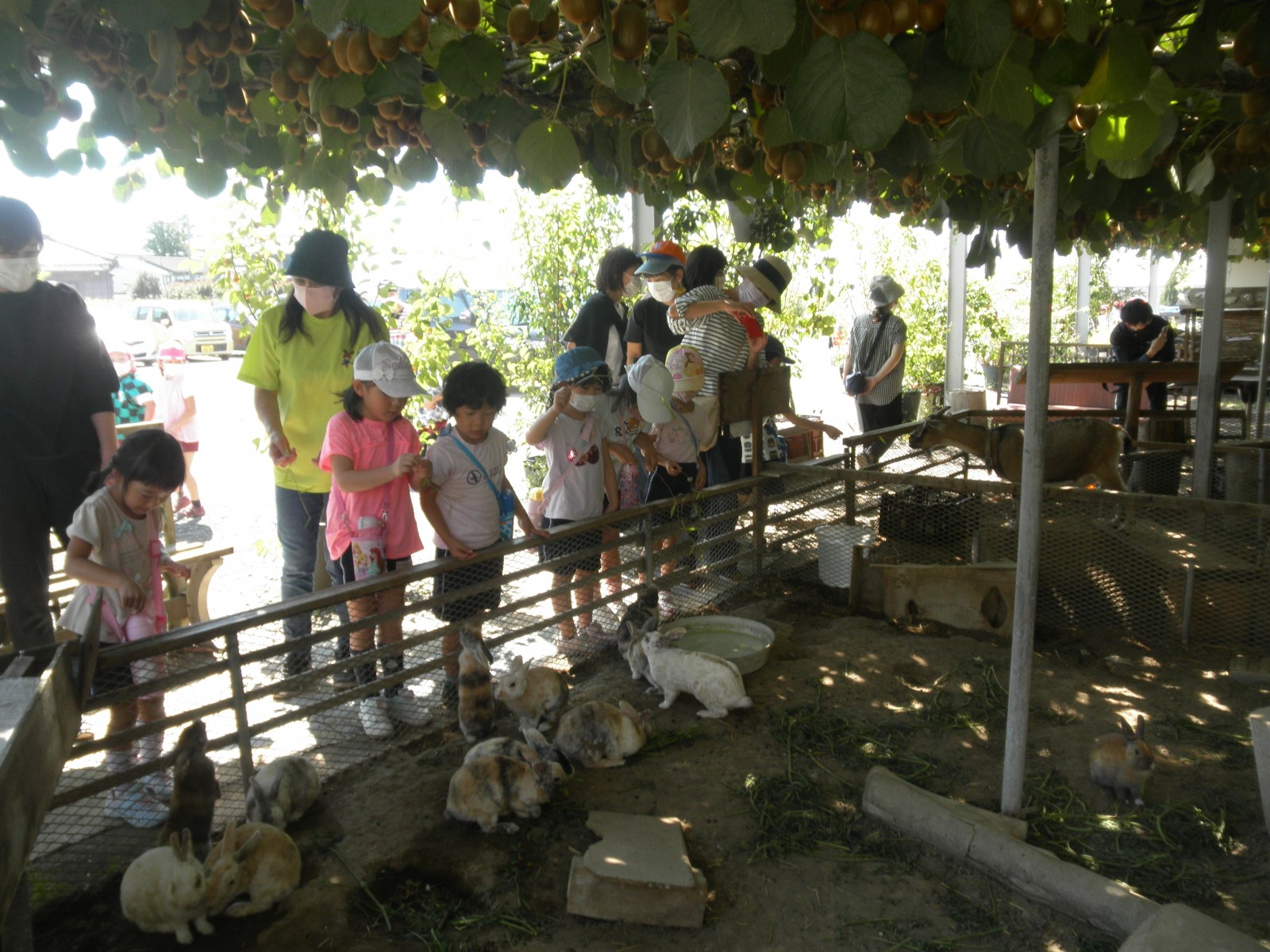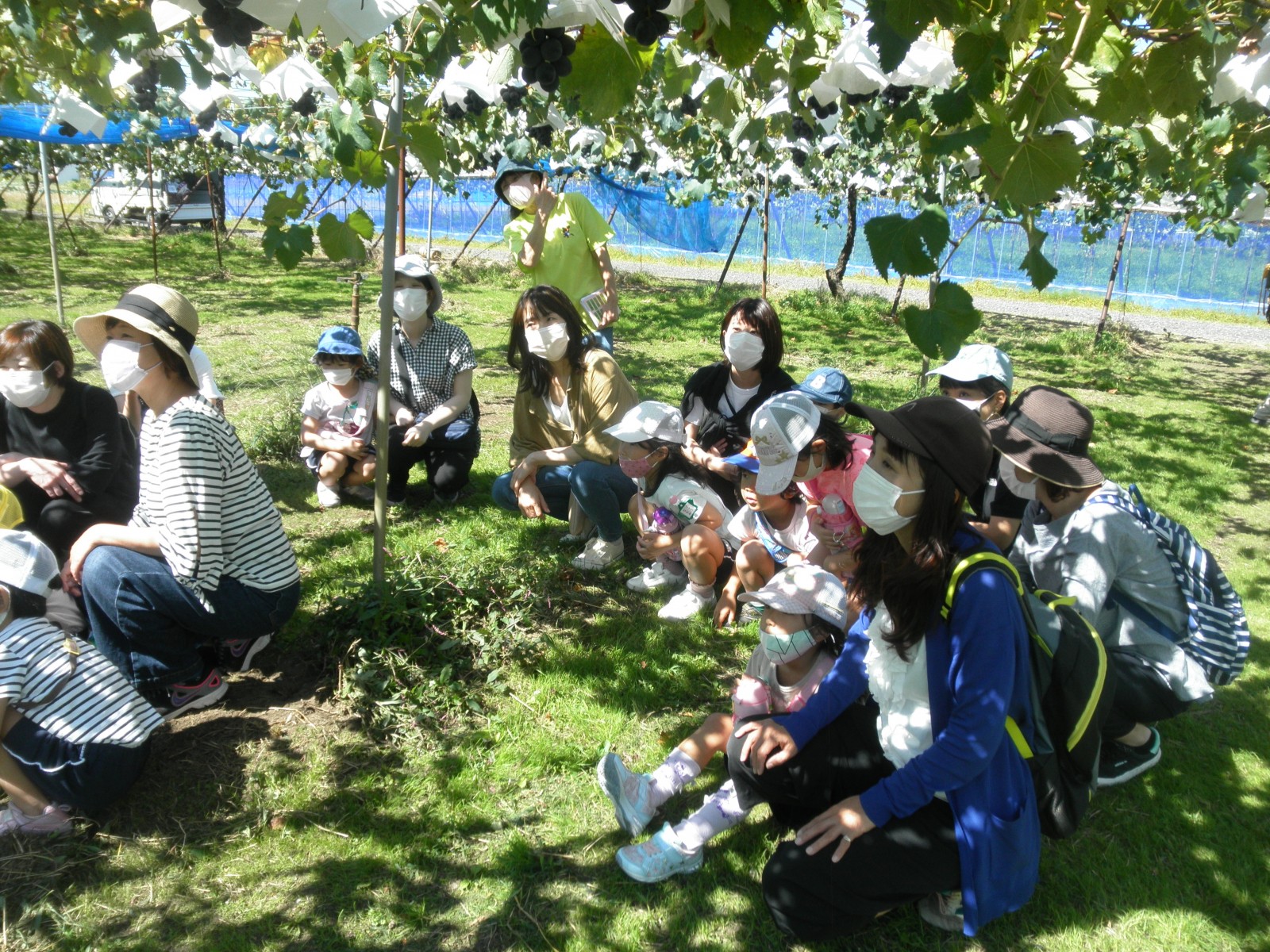 うめ組さんはぶどう狩りとお弁当の後、敷地内のうさぎさんと触れ合ったり、自然の中でのびのび遊ぶことができました。