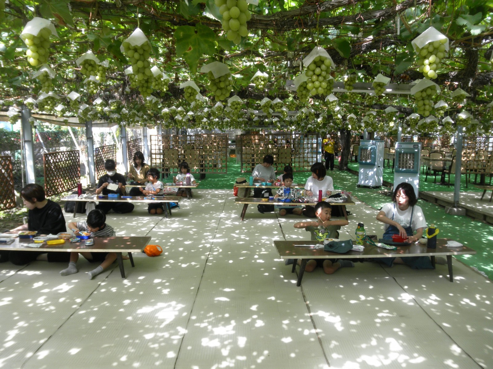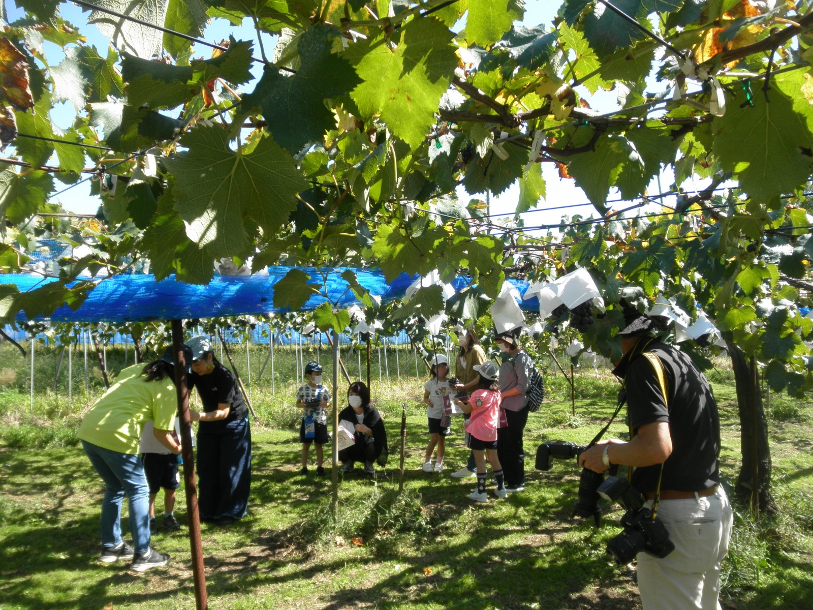 うめ組さんは親子でぶどう狩りへ、ひよこ・すみれ・ばら組さんは子ども達だけで梨狩りへ行きました。
