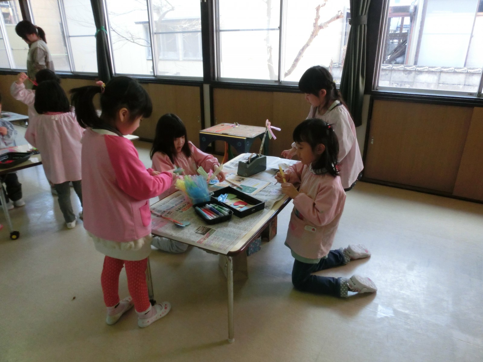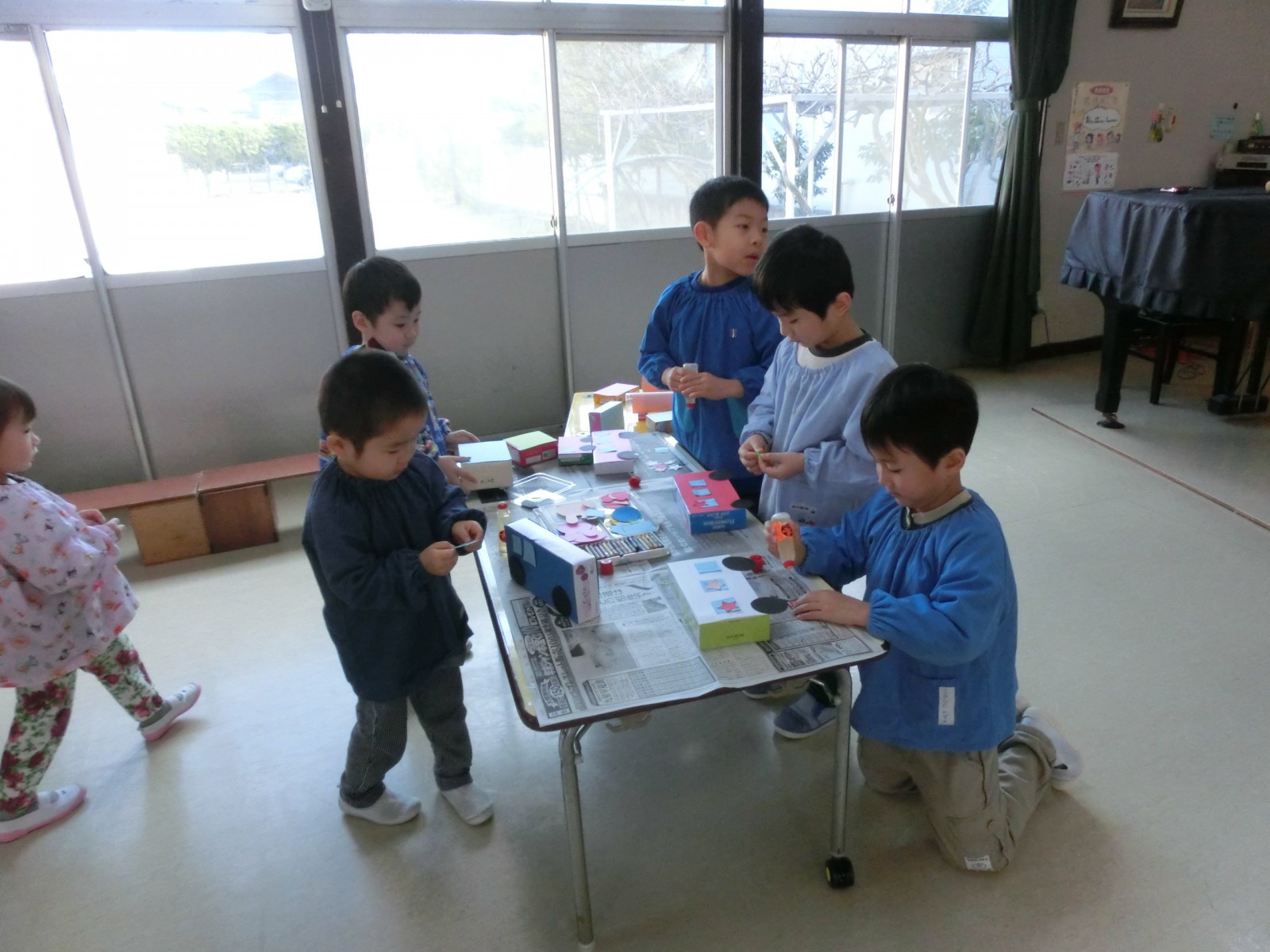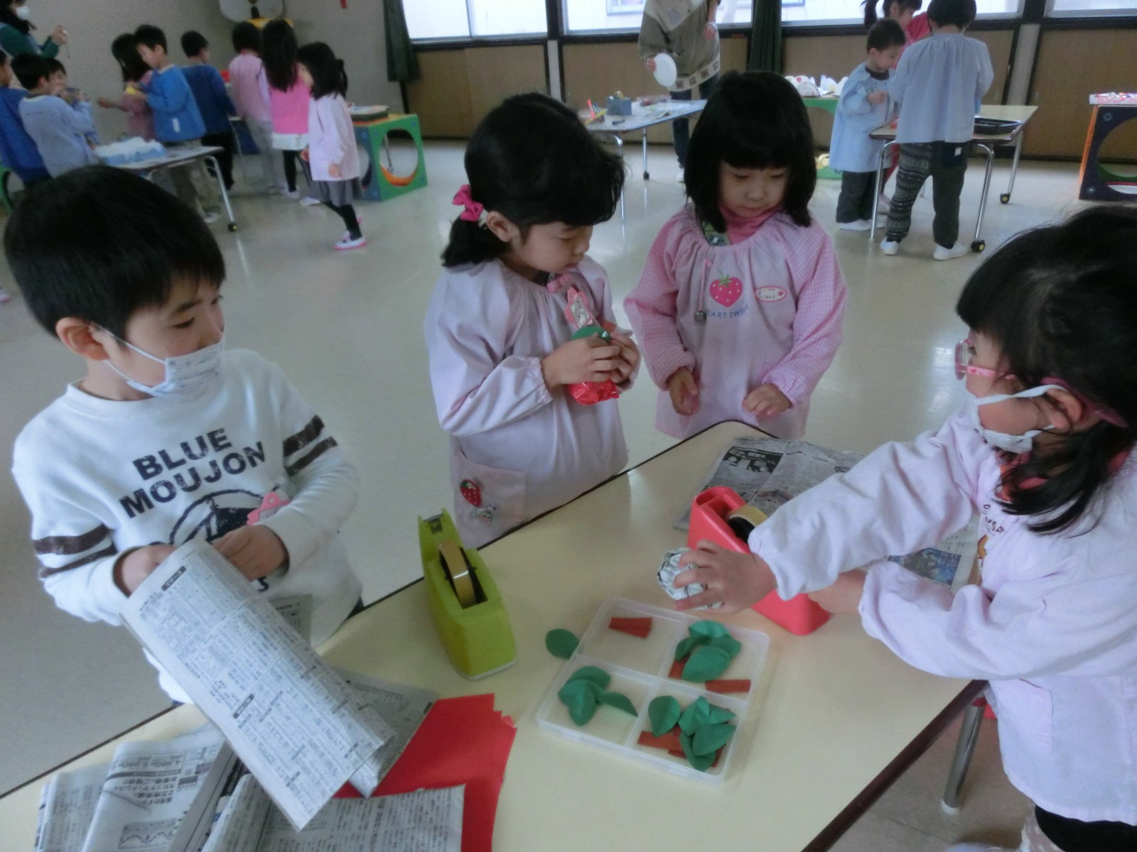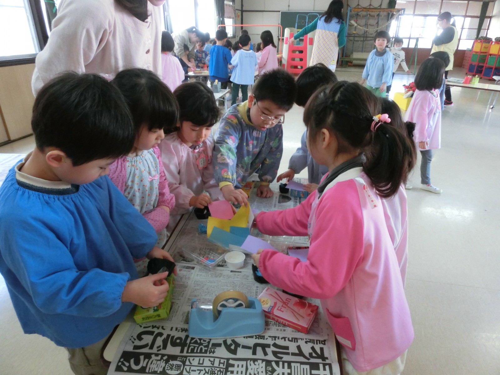 2月10日におみせやさんごっこの為の「みんな工場」が開かれました。車、飴、綿あめ、お団子、おもち、カメラ、お魚、