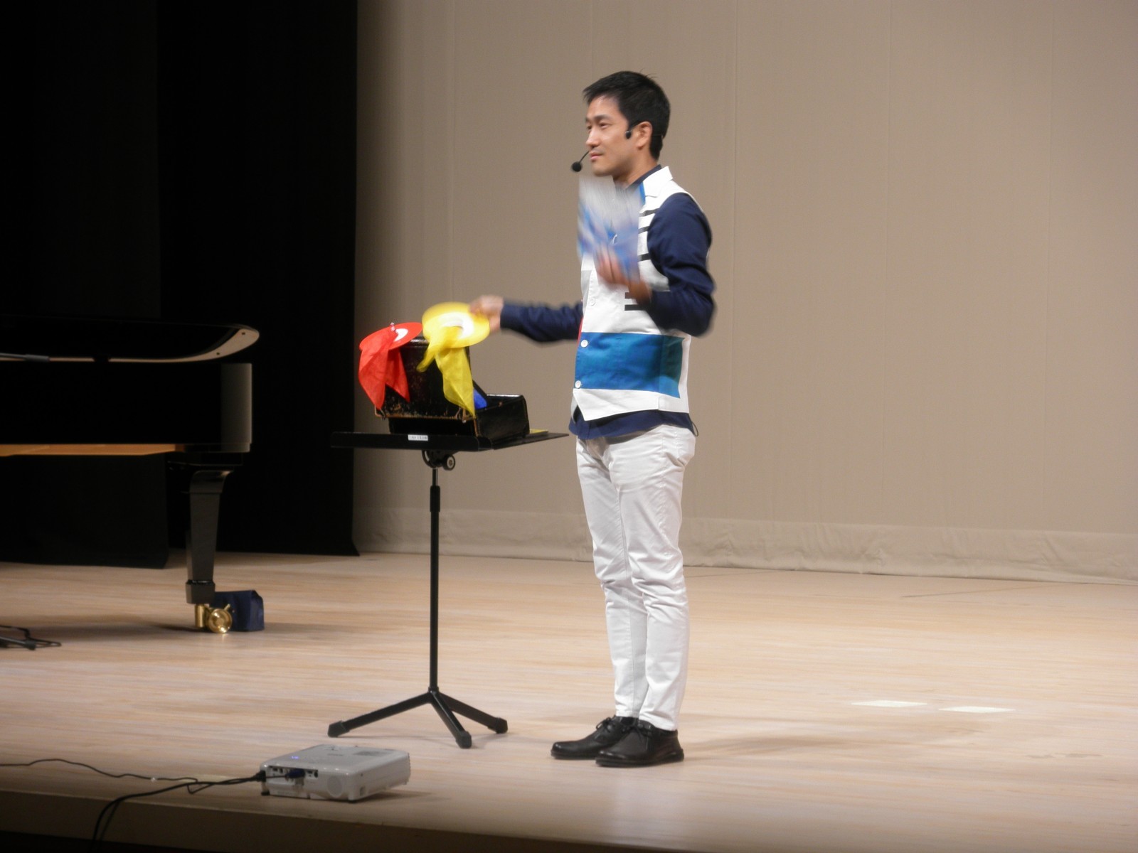 9月10日に江南区文化会館で「ねこのピート」の訳者である大友剛先生をお迎えして、マジックあり、ピアノ演奏あり、手遊びありのものすごく面白い演奏会を開催しました。みんな盛り上がり、先生もびっくり!お手伝いしてくださったお母さま方、また保護者会の方々からのお花もすばらしいもので、会場がとっても明るくなりました、ありがとうございました。