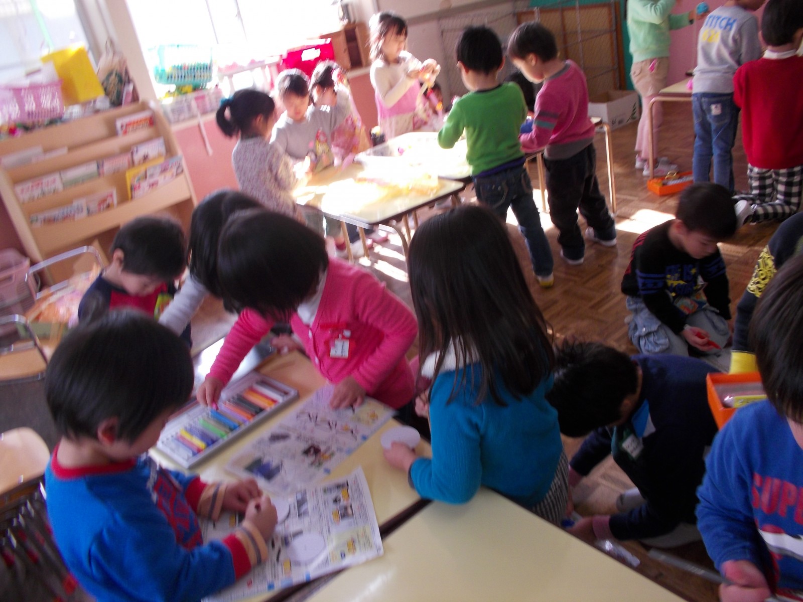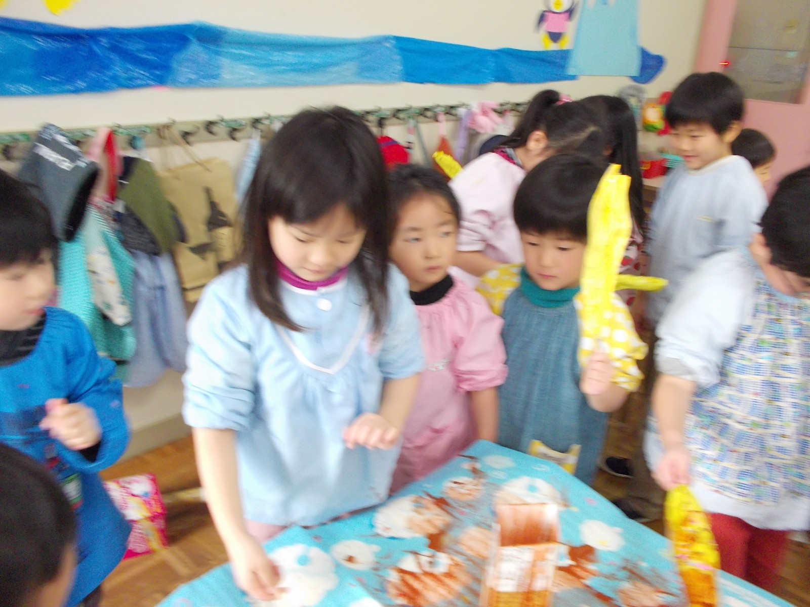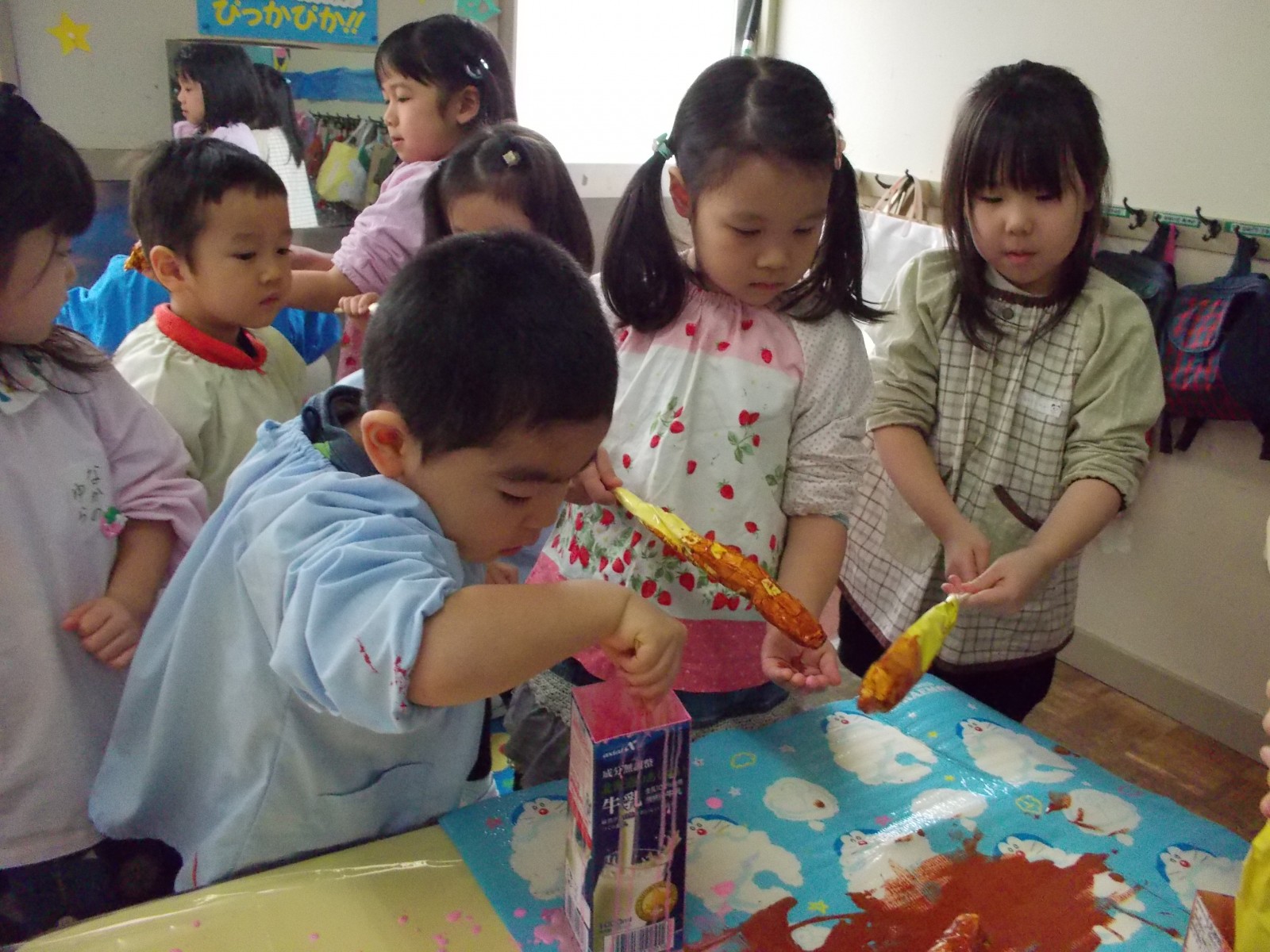 縦わりでいろんなお店に行って、年少、年中、年長のお友達がまじりあって