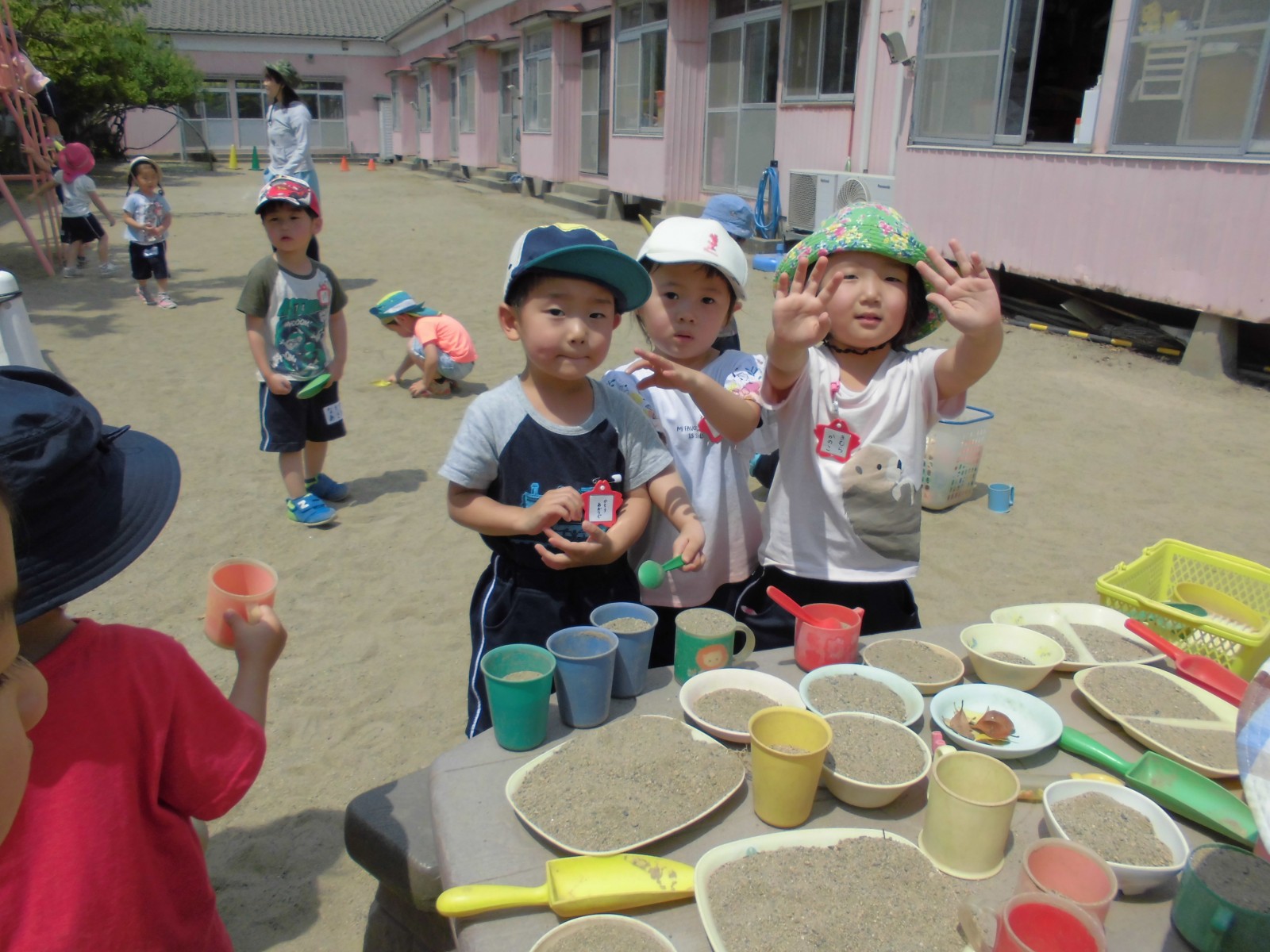 第2園のすみれ組の子ども達が、第1園がもうすぐ解体になるので、最後の園庭で遊ばせてもらうことにしました。
