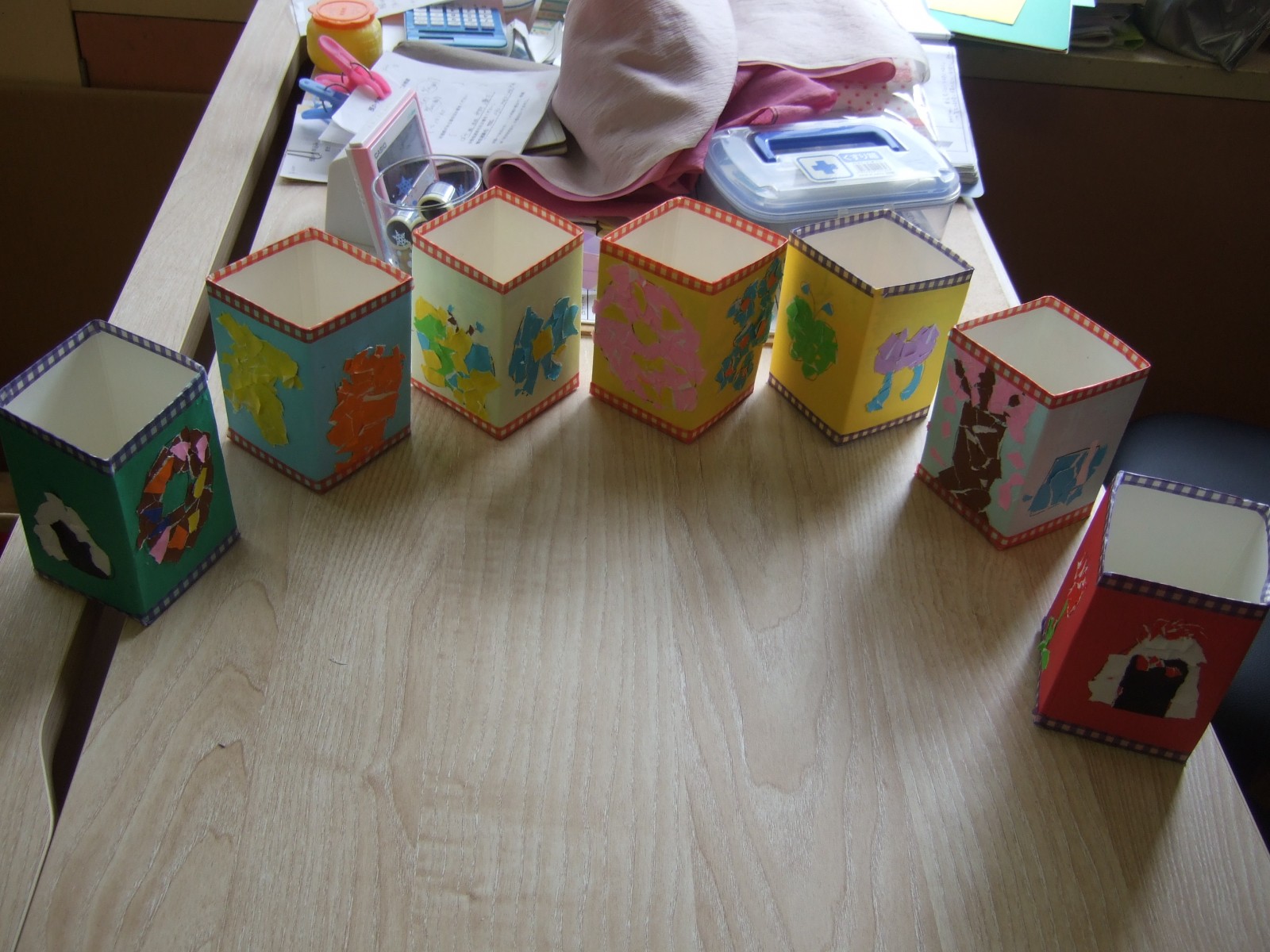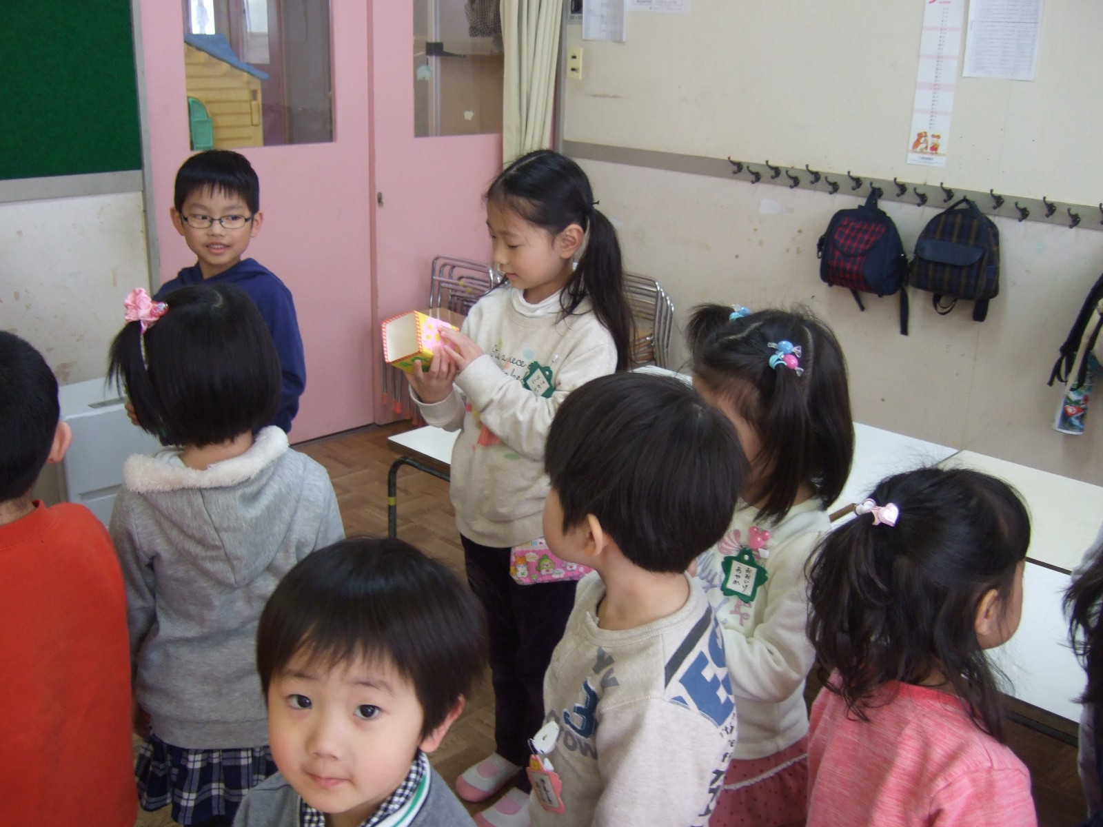 3月25日につくしクラブでもうめ組さんにさようならの会をしました。みんなで作った記念のえんぴつ立てをプレゼントしました。お元気でね。