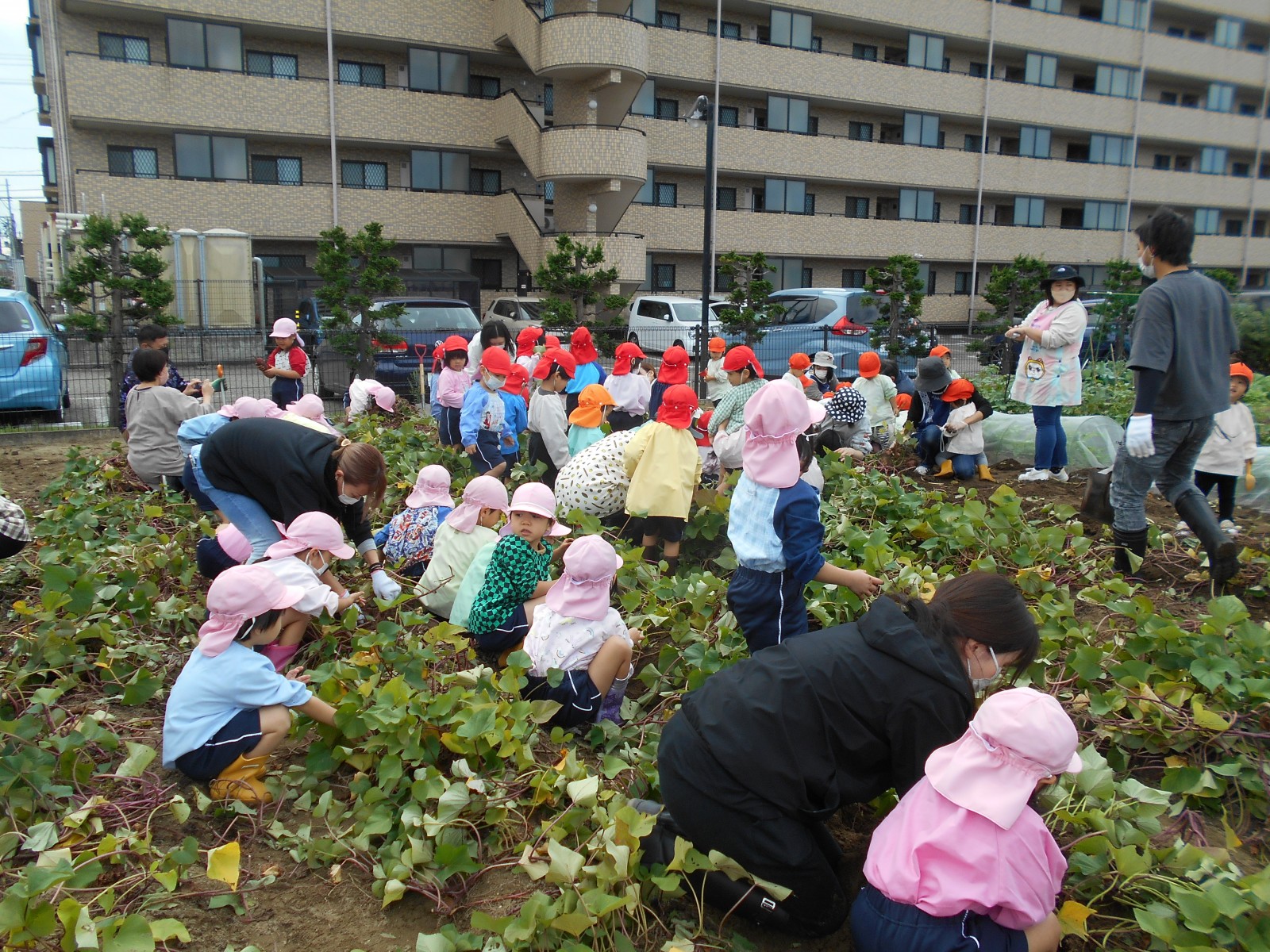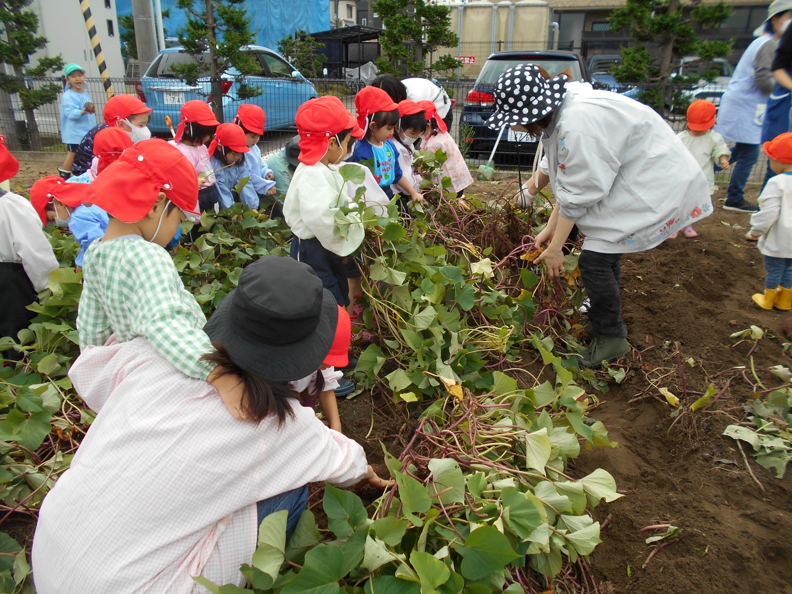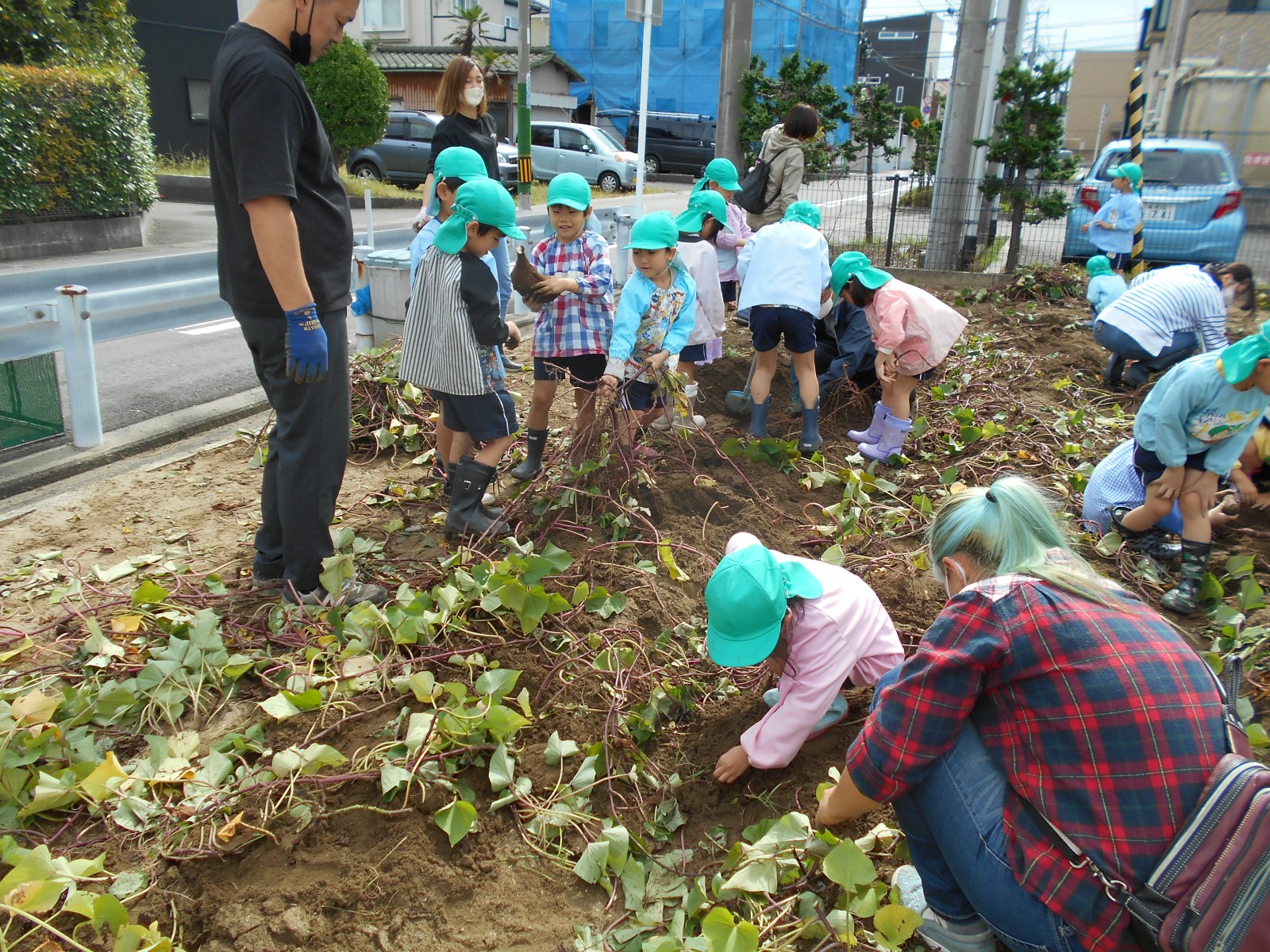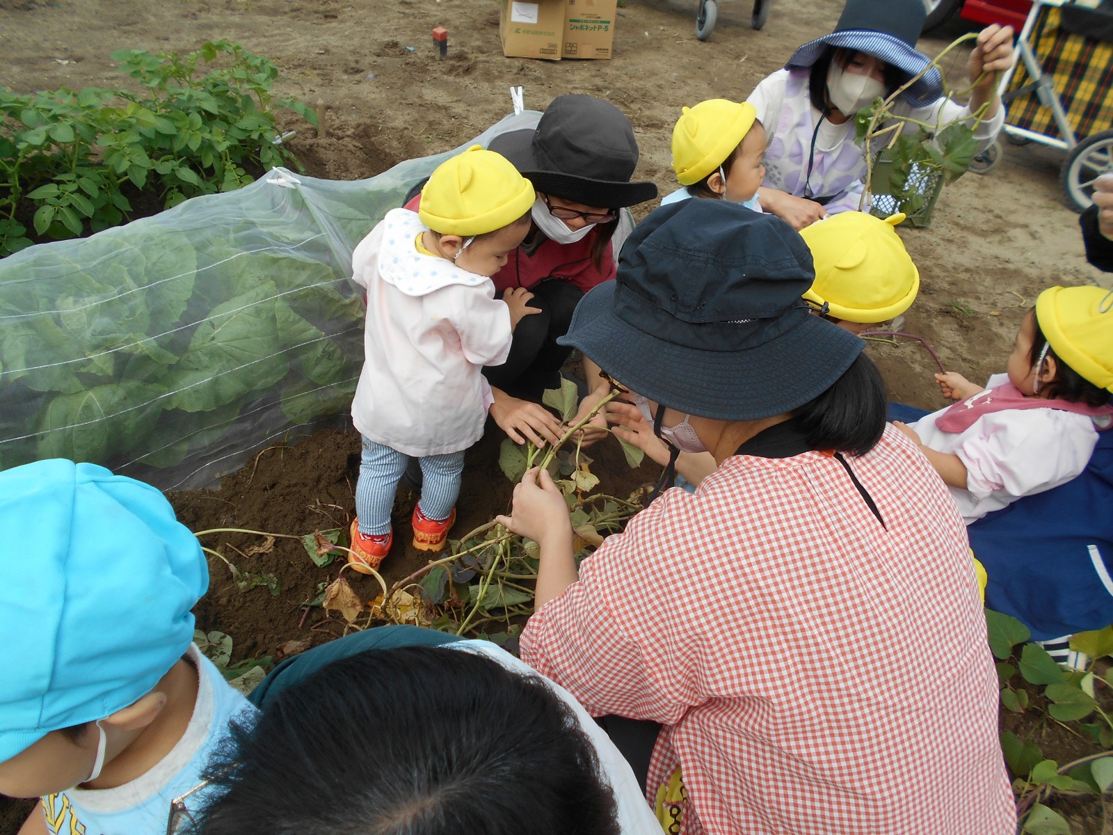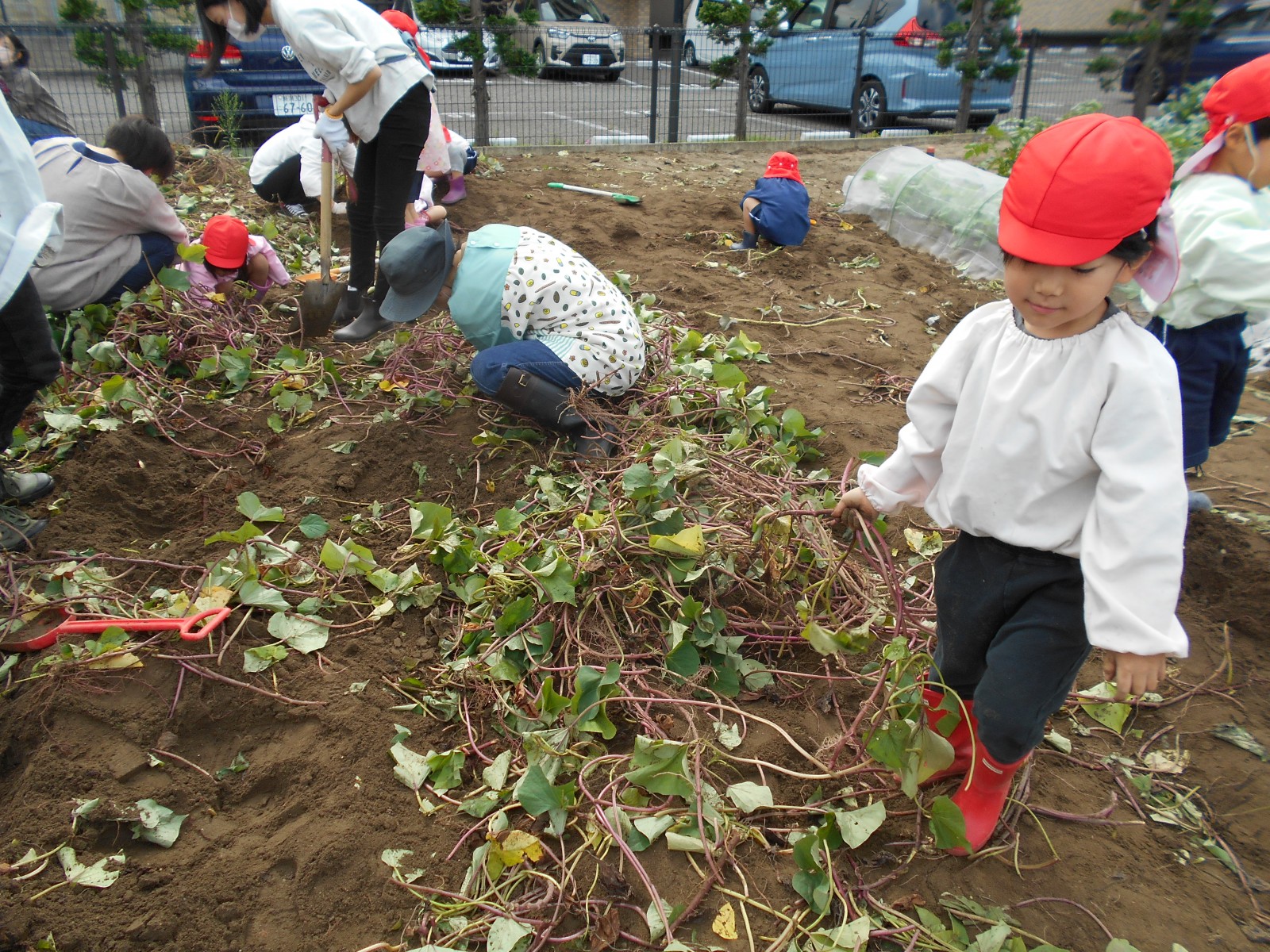 お芋ほりがありました。土の中からお芋をみつけると、みんな夢中で掘り出しました。
