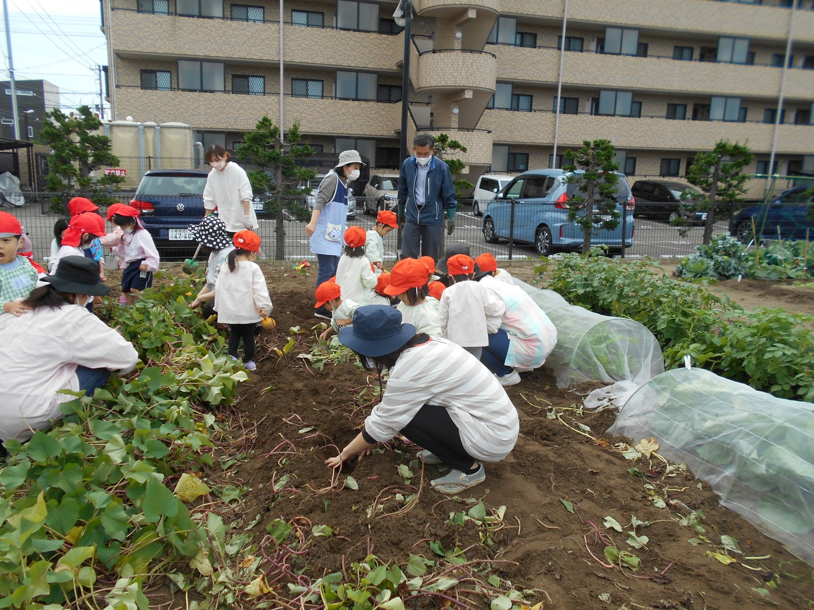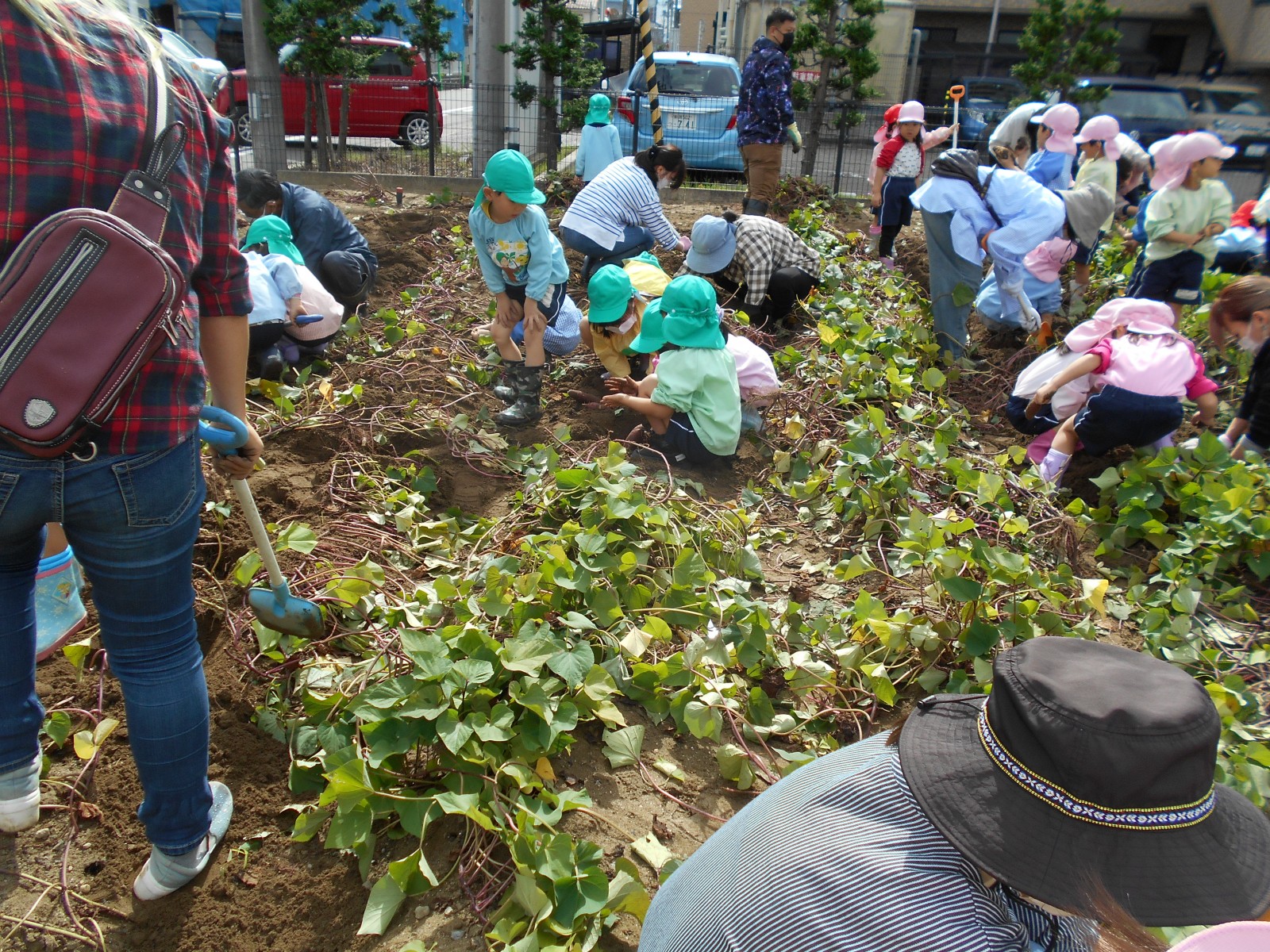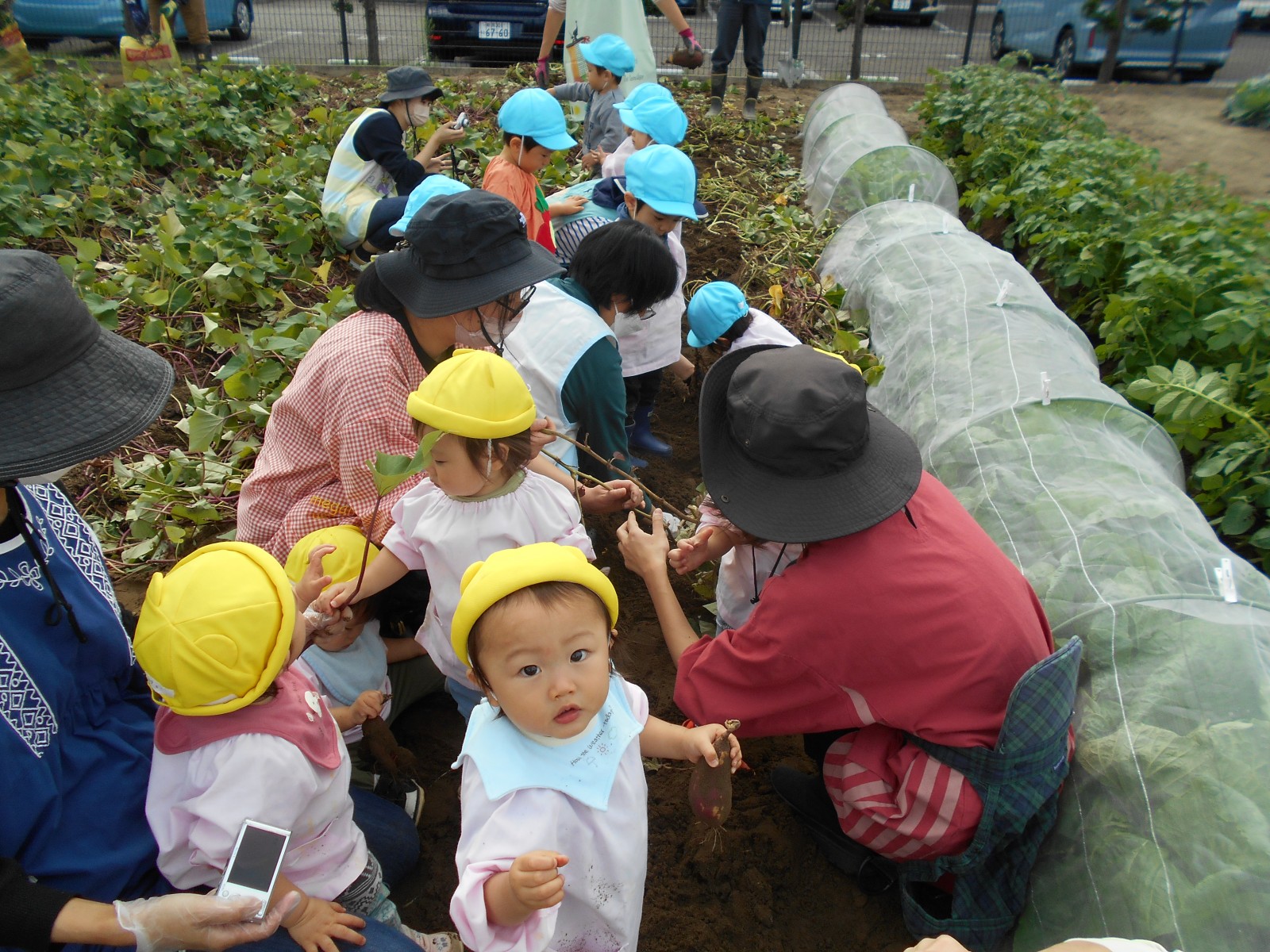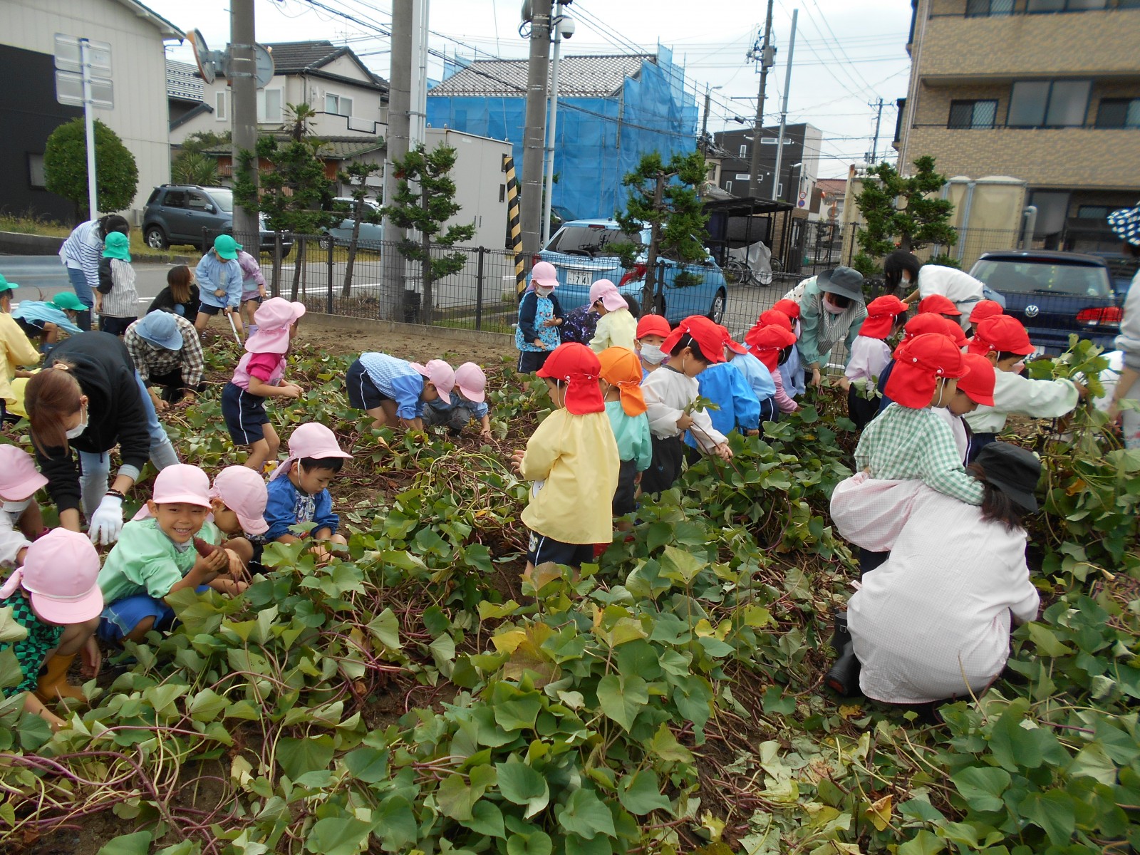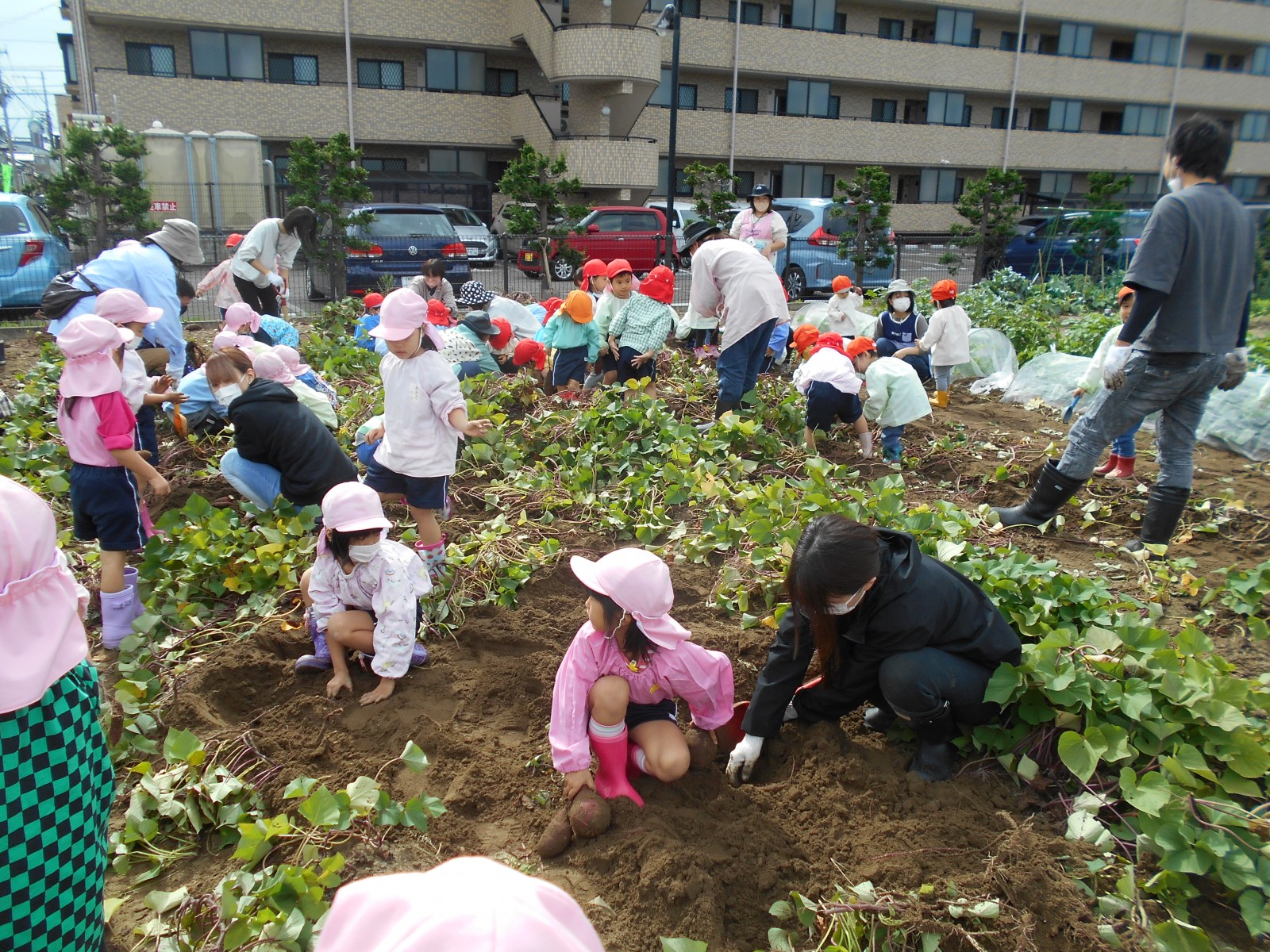 お芋ほりがありました。土の中からお芋をみつけると、みんな夢中で掘り出しました。