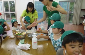 今年も第2園の玄関のところにこうすけ君の「いのちのあさがお」の種を播き、こんなにきれいな花が咲きました。朝登園してくるたびに、「わー!こんなに咲いたね。奇麗だね!」と見ながら歩いてきます。残念ながら、そして当たり前なのですが、午後にはしぼんでいるのでちょっと悲しくなります。こうすけ君は白血病で亡くなったお友達です。なくなる年まで育てていたあさがおの花の種をドナーを増やす運動をなさっているボランテイアの方から買わせていただき長年ずっと育て続けています。一人でも多くのドナーが増えますように!