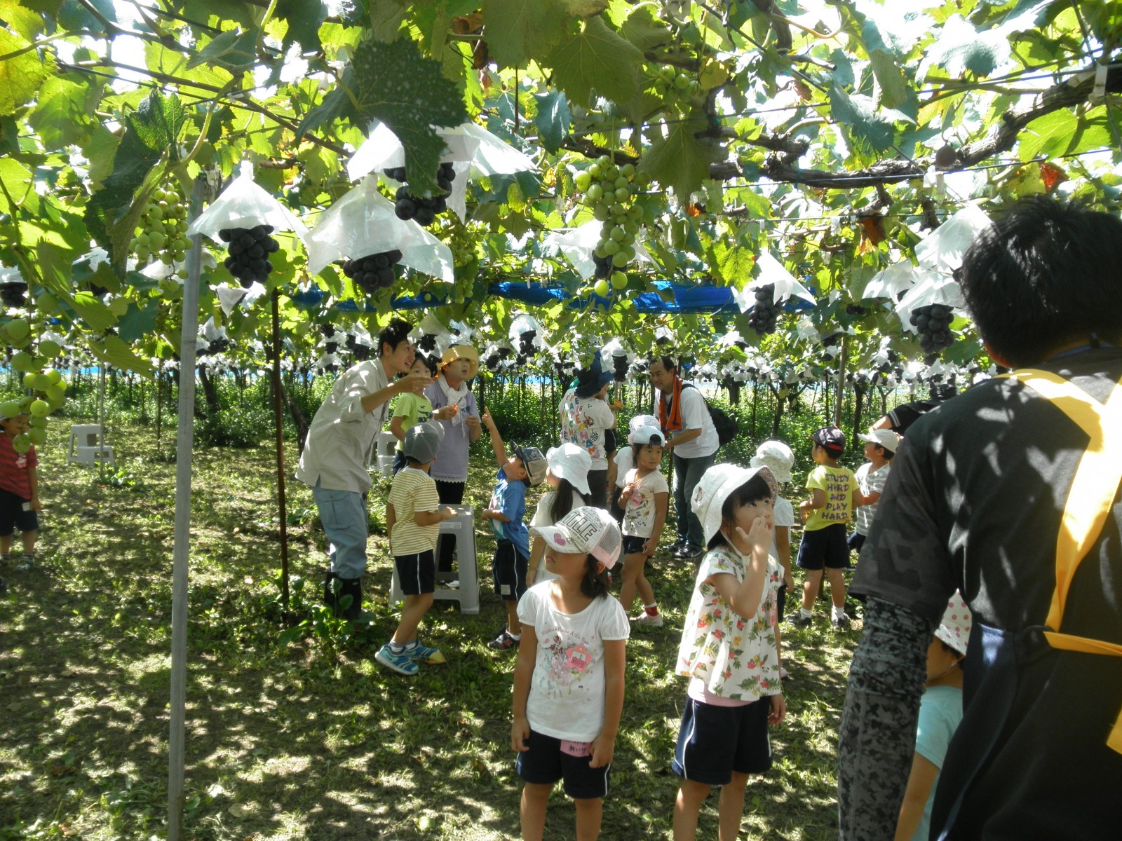 みんなそれぞれ、お気に入りのぶどうをみつけ、はさみで切ったり、先生に切ってもらったりしておいしいぶどうをお土産にしました。