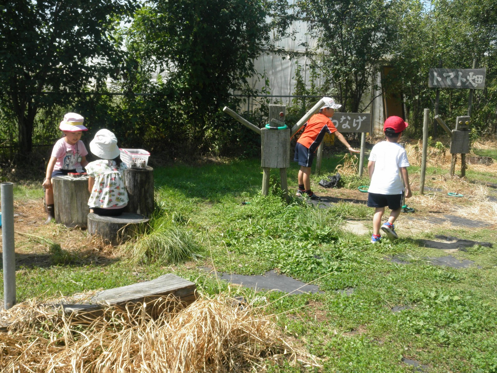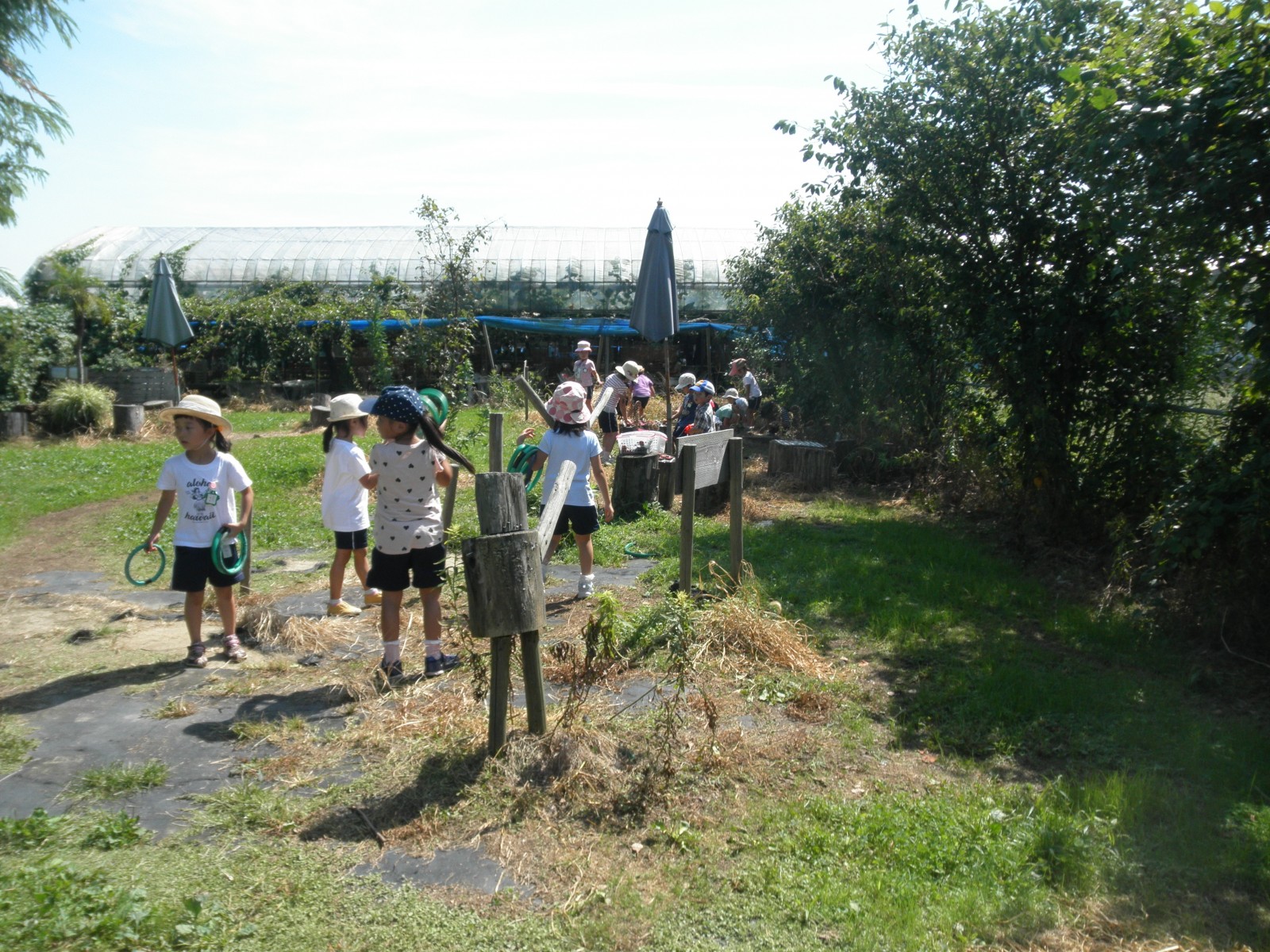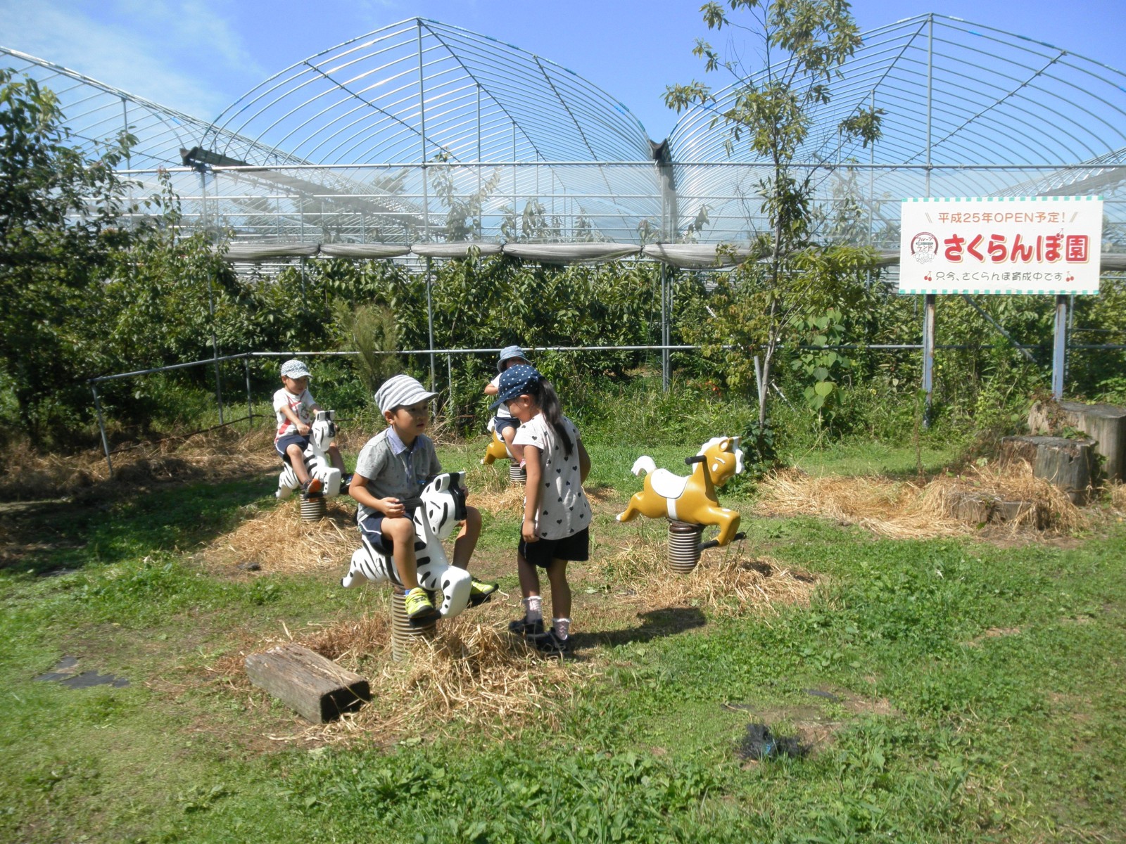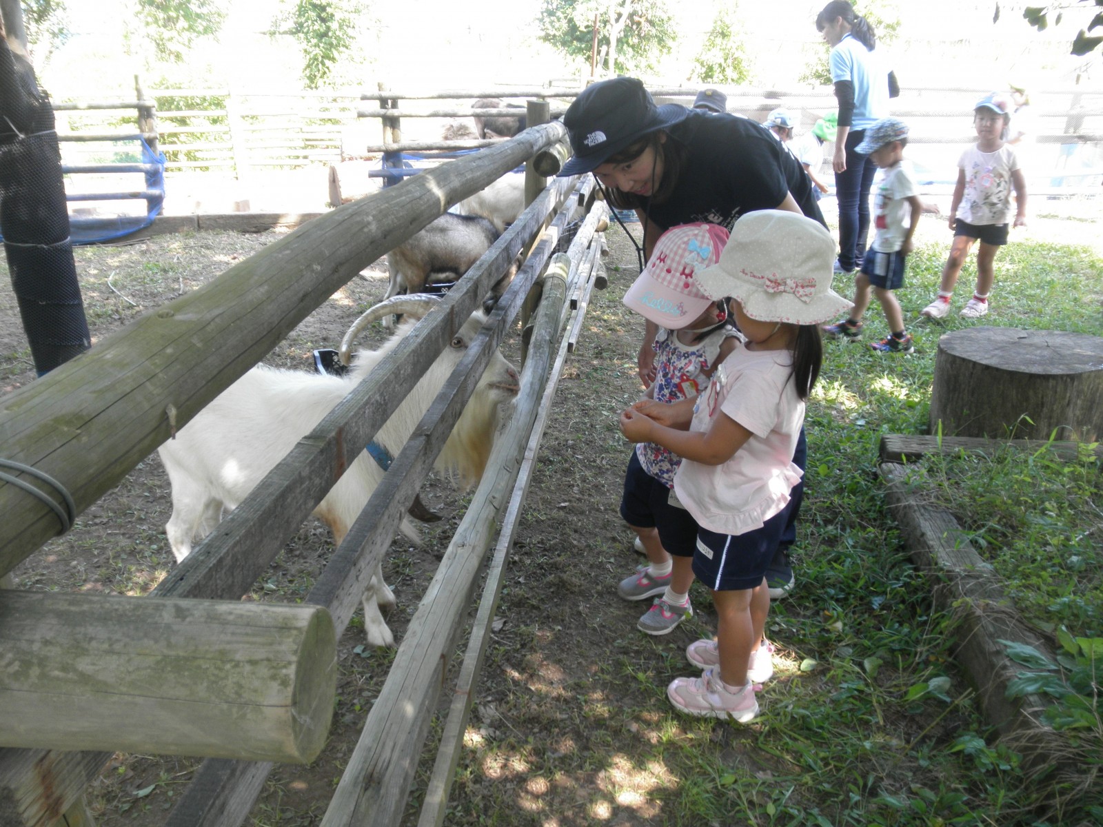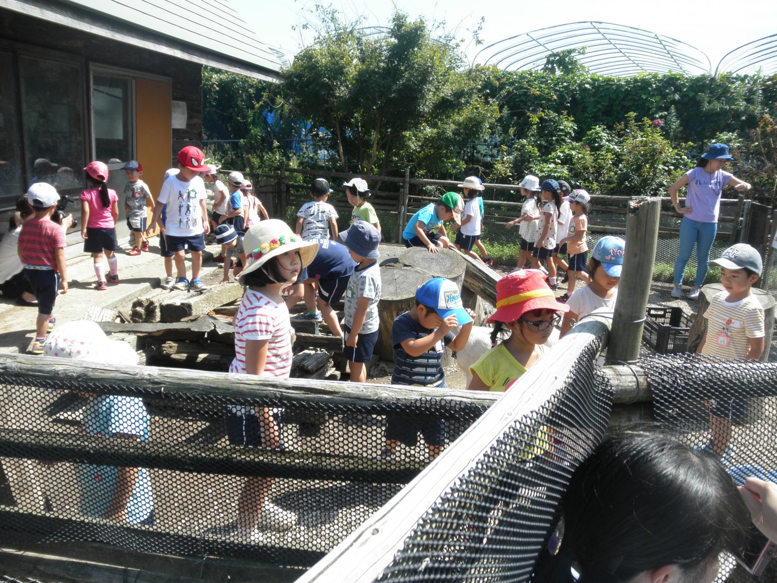 お昼はお母さんの愛情たっぷり弁当をおいしくいただき、その後デザート用にぶどうをいただきました。上手にむけたりなかなか出来なかったりとさまざま!終わって裏の動物がいるところに行きやぎに餌をやったり、うさぎをだっこしようと走り回ったり(なかなか足が速くて簡単にはつかまえられないのです!)木の輪投げをしたりと広場でたくさんあそびました。お家でみんなで食べたぶどうはいかがでしたか?