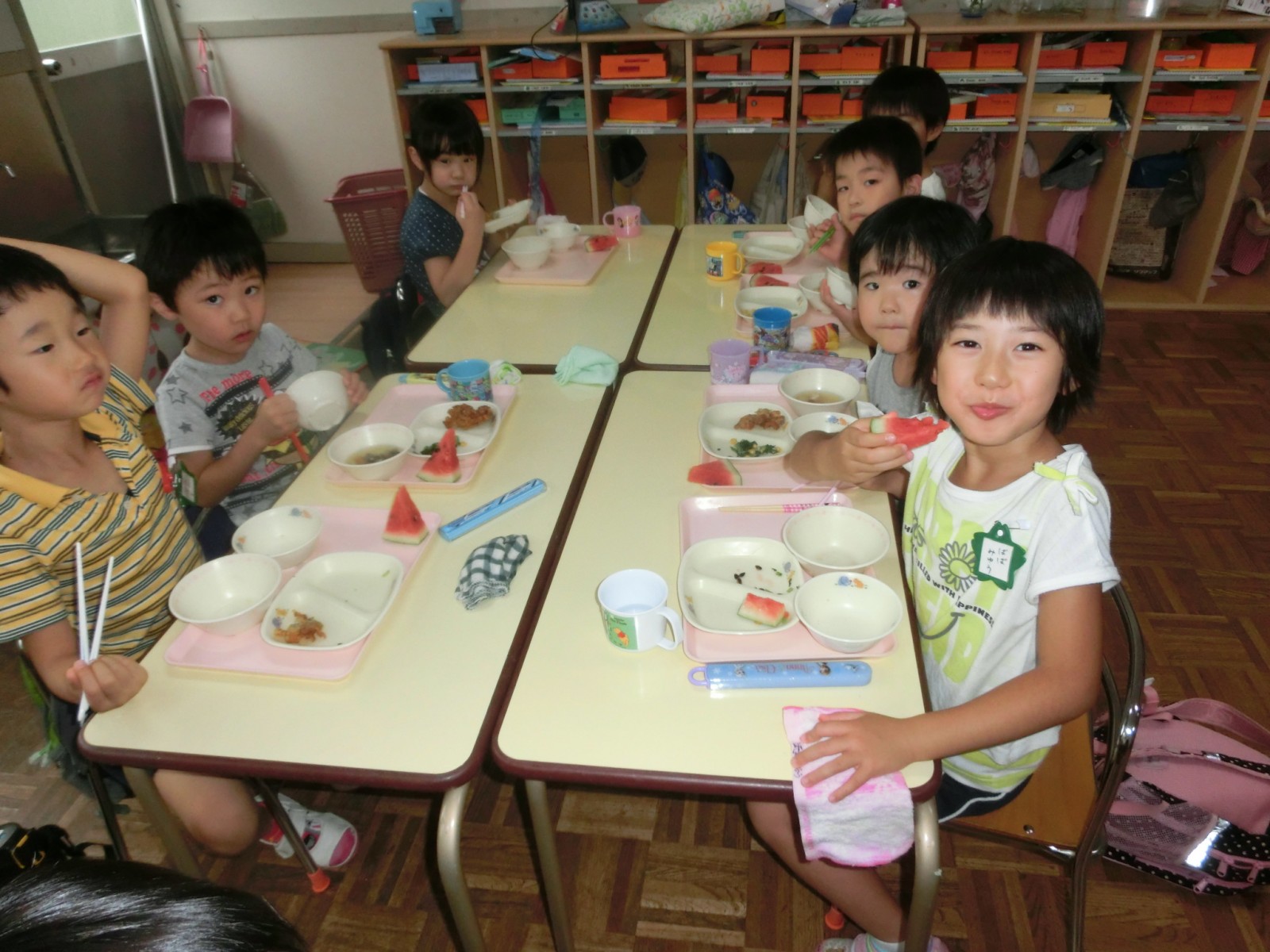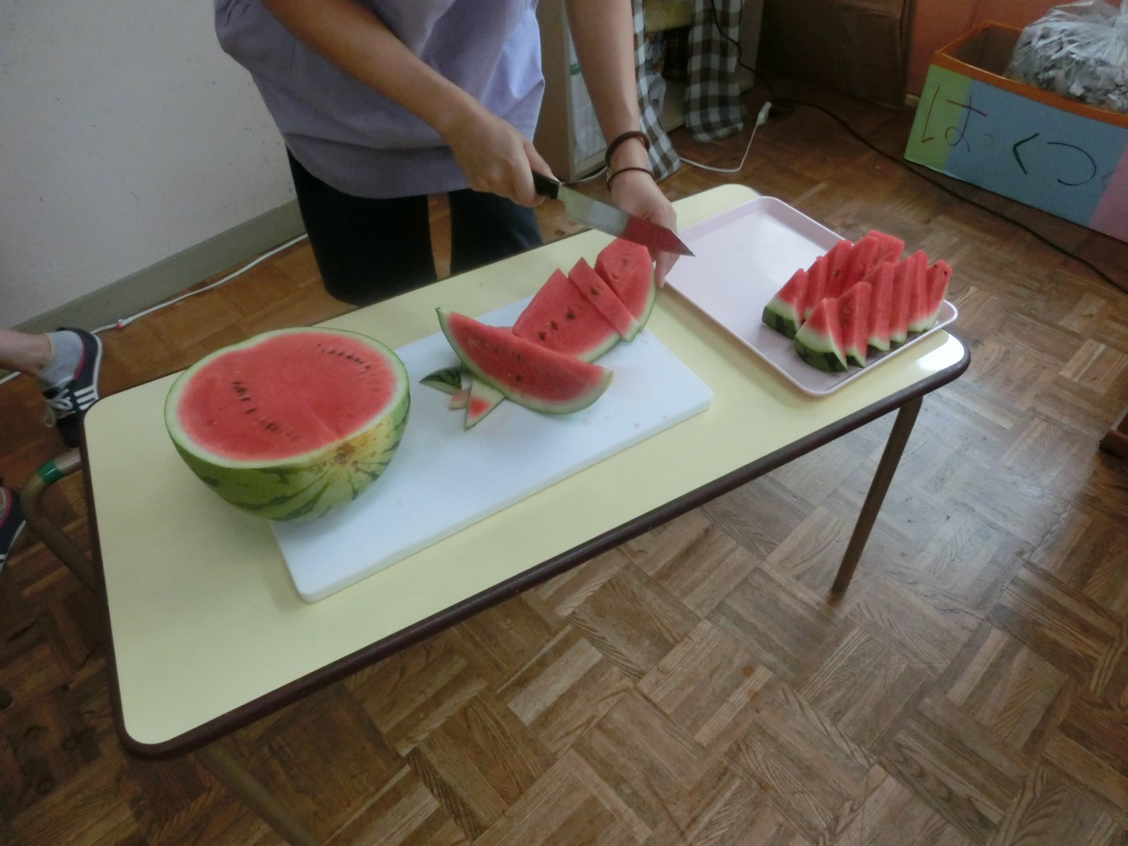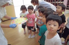 第2園のうめ組さんが裏の畑で作ったすいかの試食です